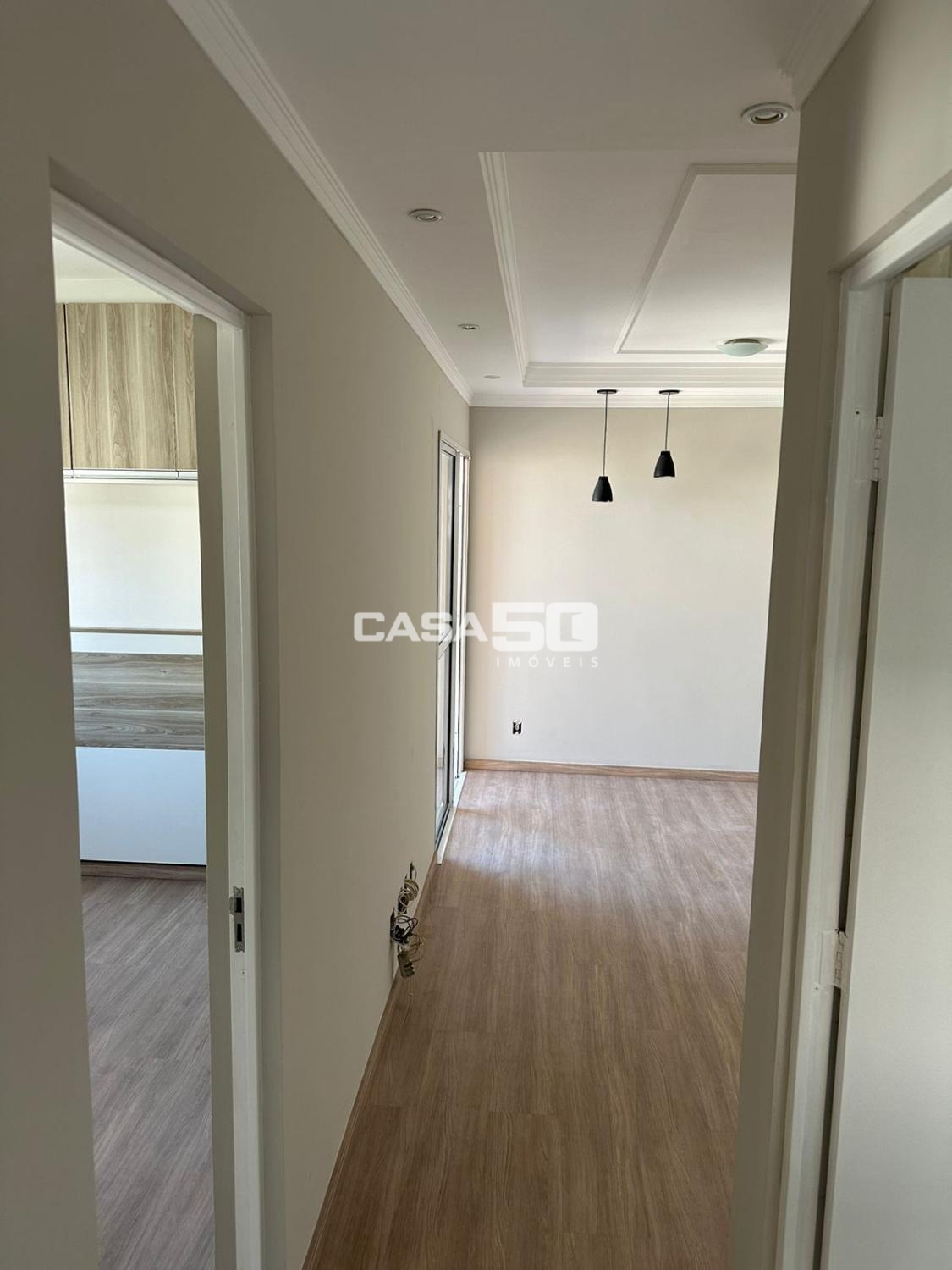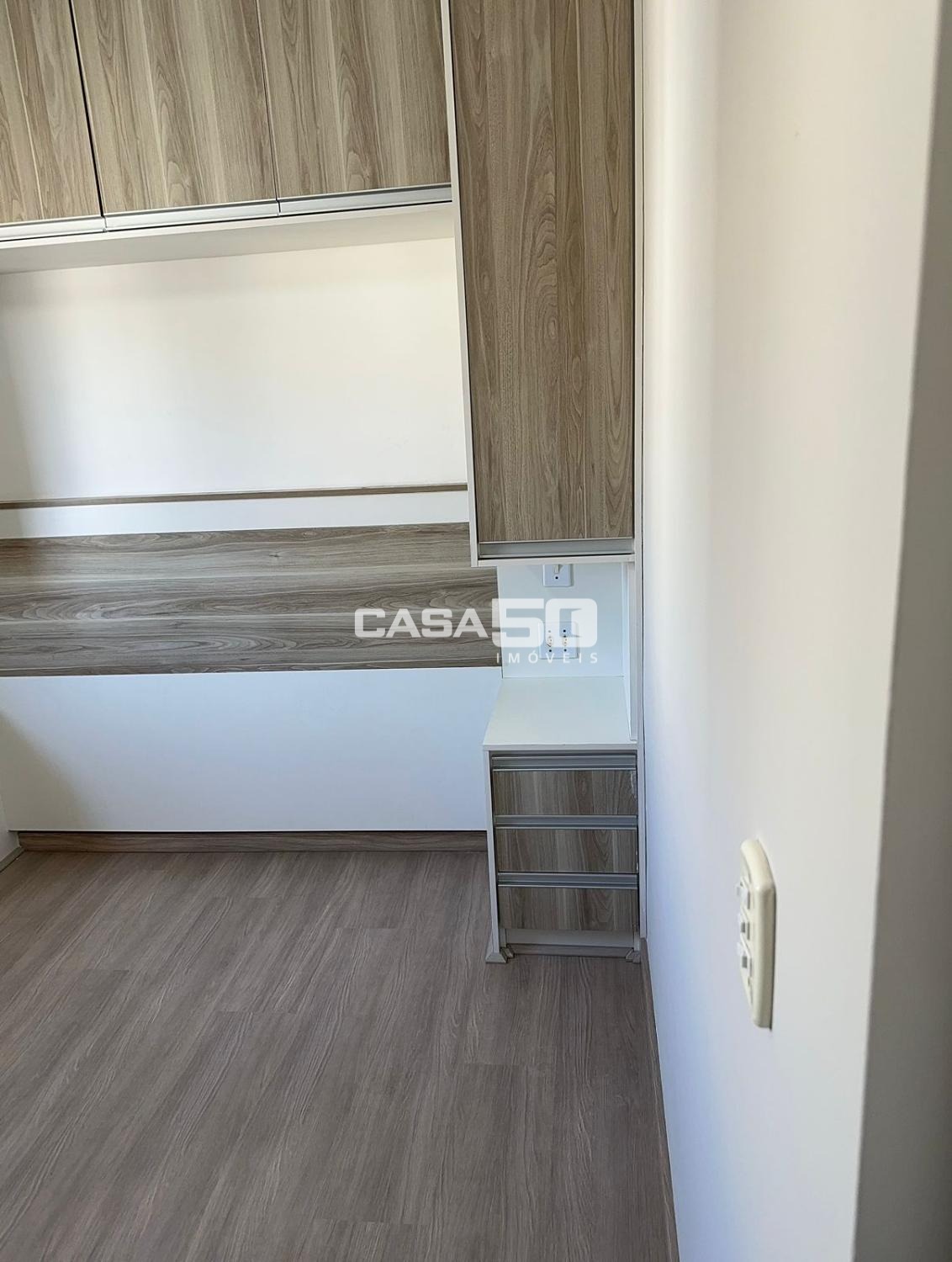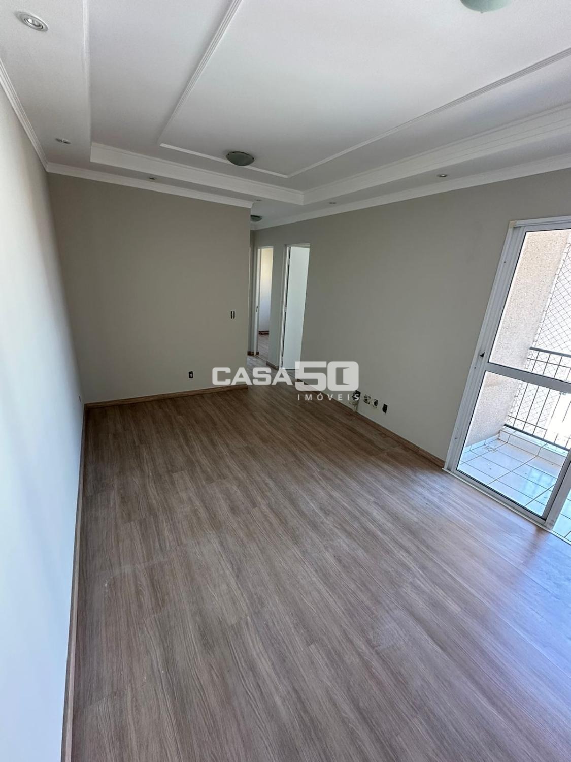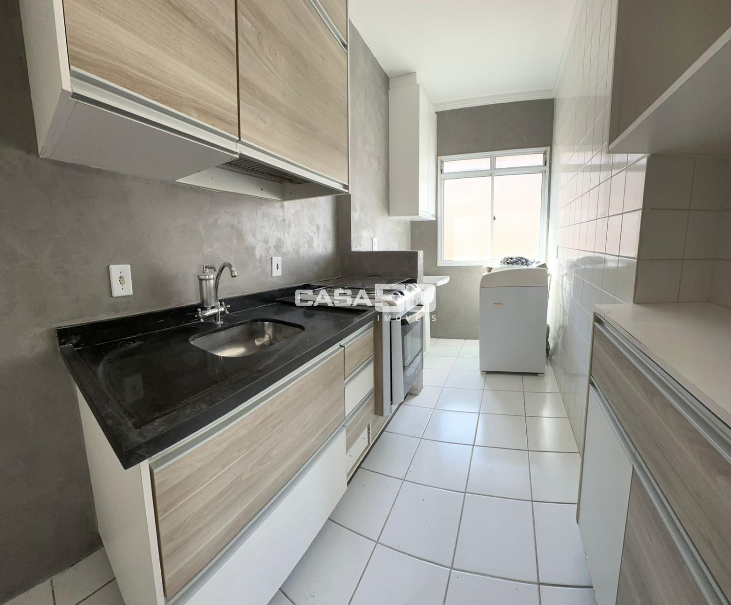 Com 49m², 2 quartos com armários, sala para 2 ambientes, sacada, banheiro social, cozinha e área de serviço.