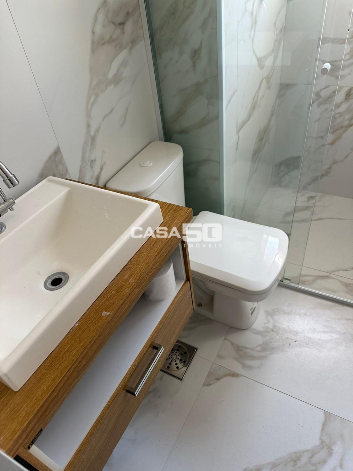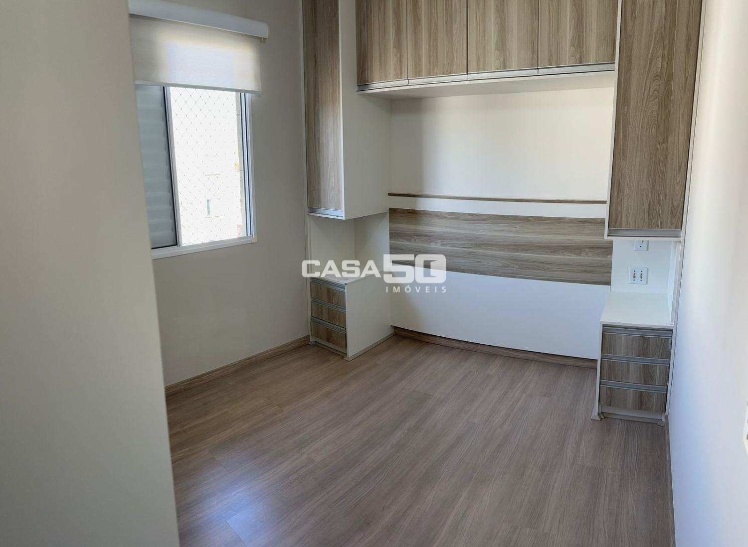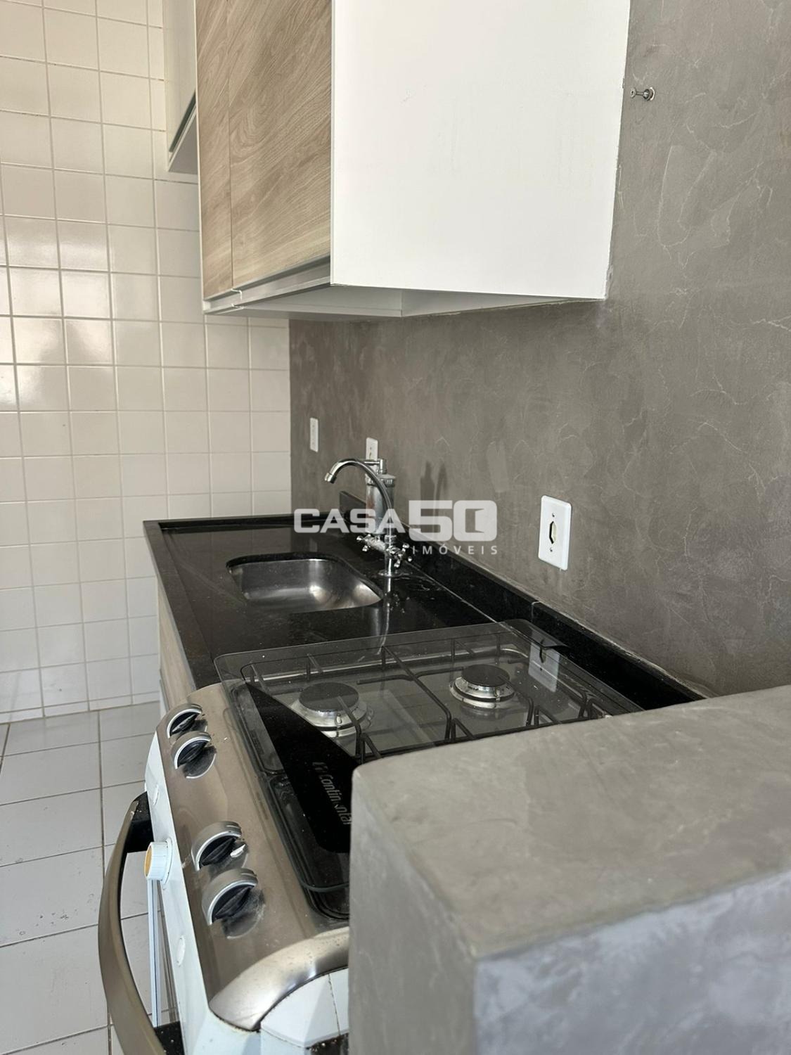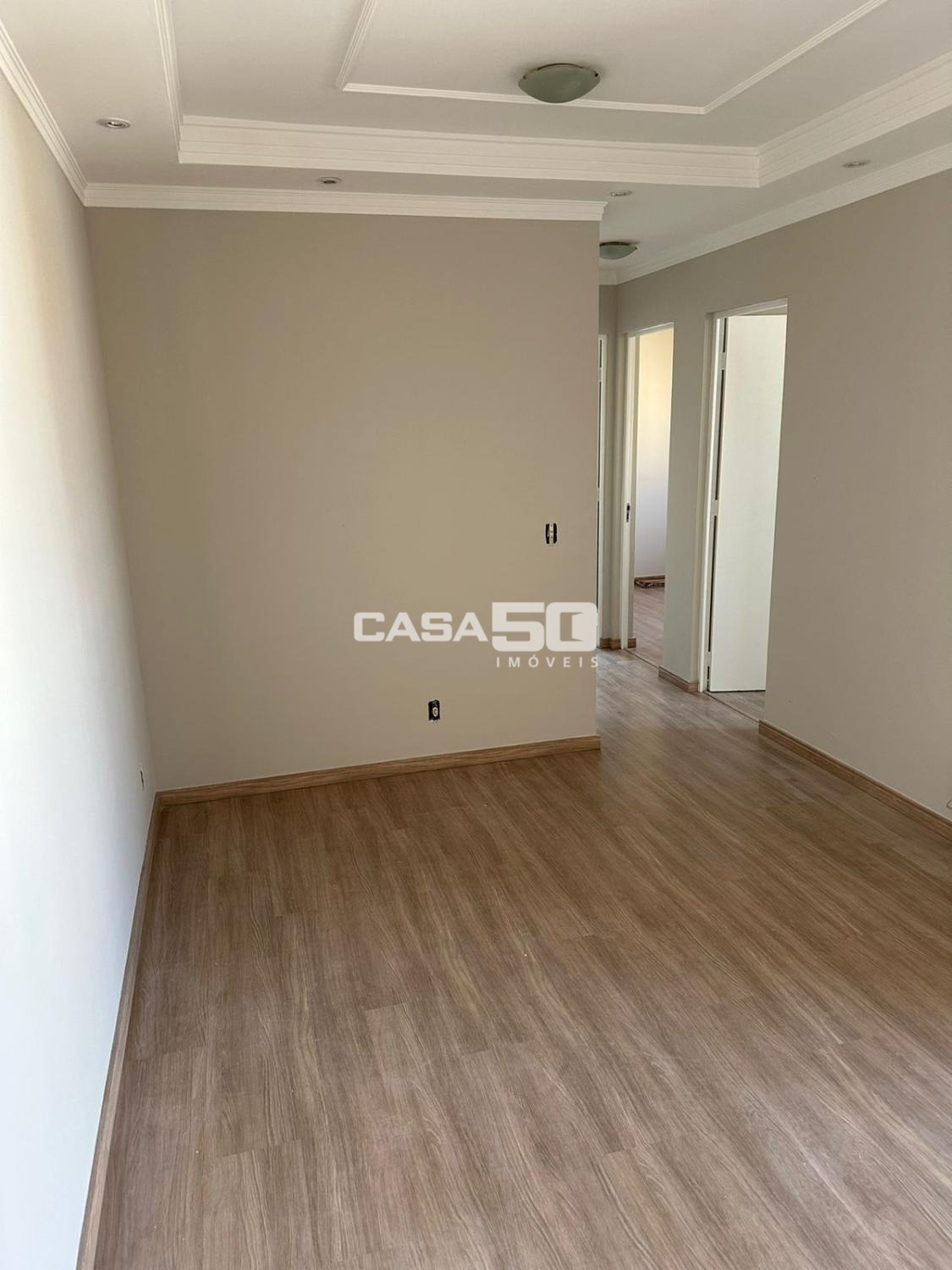 Com 49m², 2 quartos com armários, sala para 2 ambientes, sacada, banheiro social, cozinha e área de serviço.