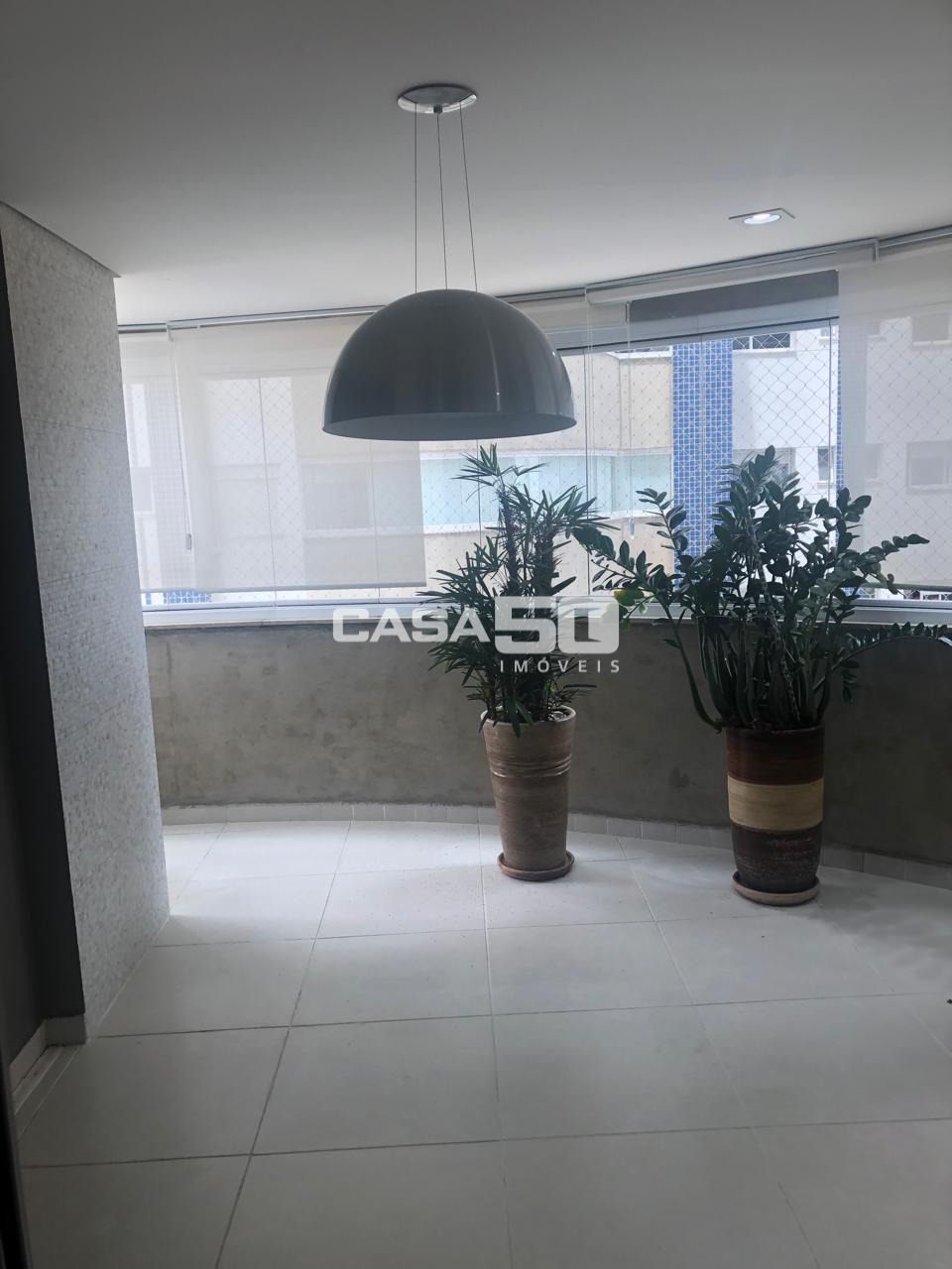 Área Gourmet com churrasqueira, fechada com vidros e persiana. A área gourmet é ampla