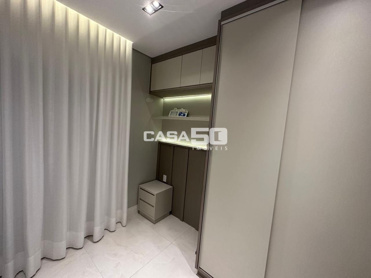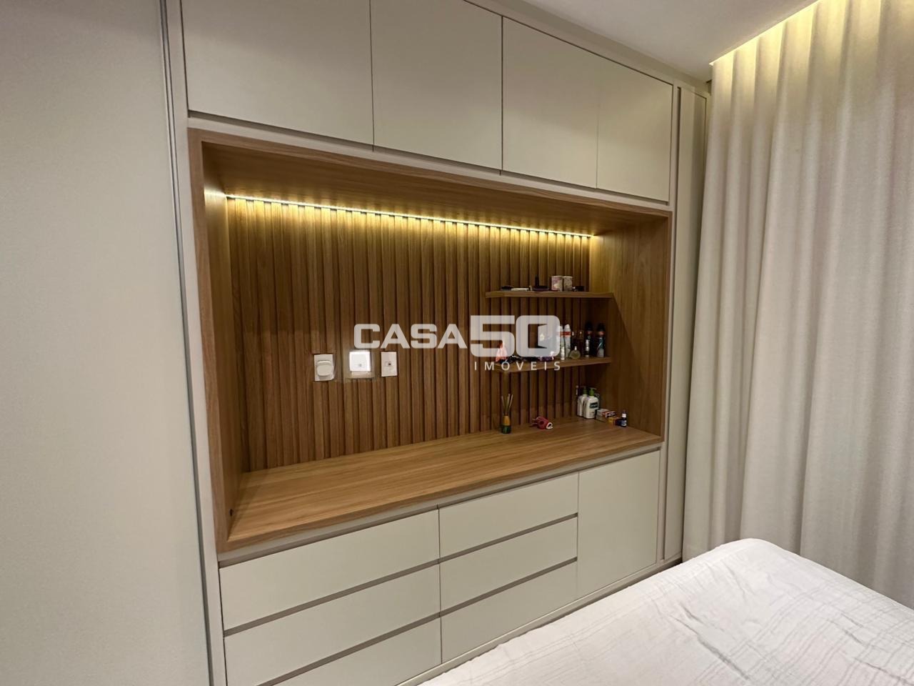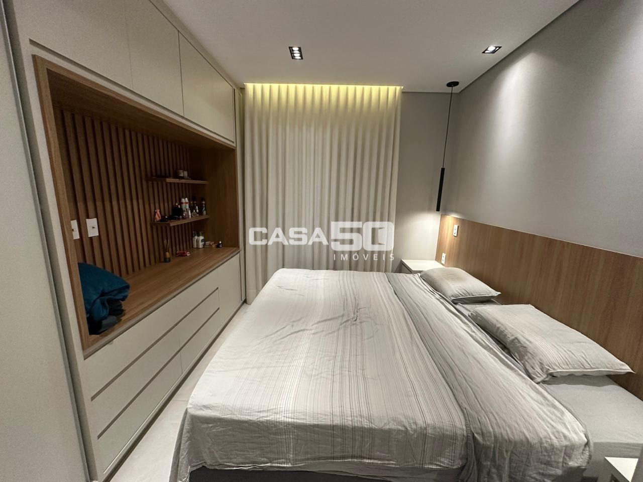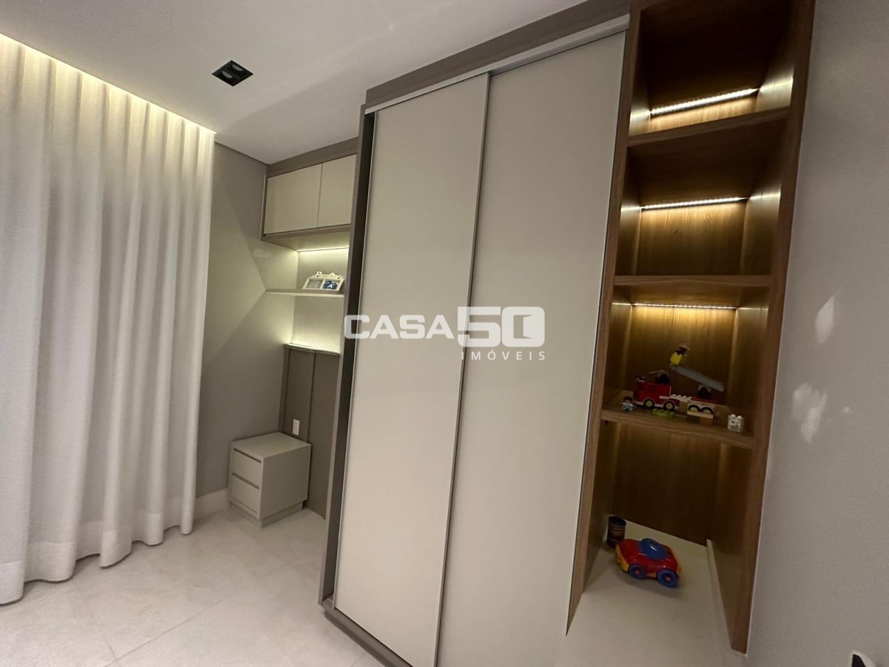 São 3 quartos, 1 suíte, torneiras das pias com misturador quente/frio, persianas automatizadas para o conforto.