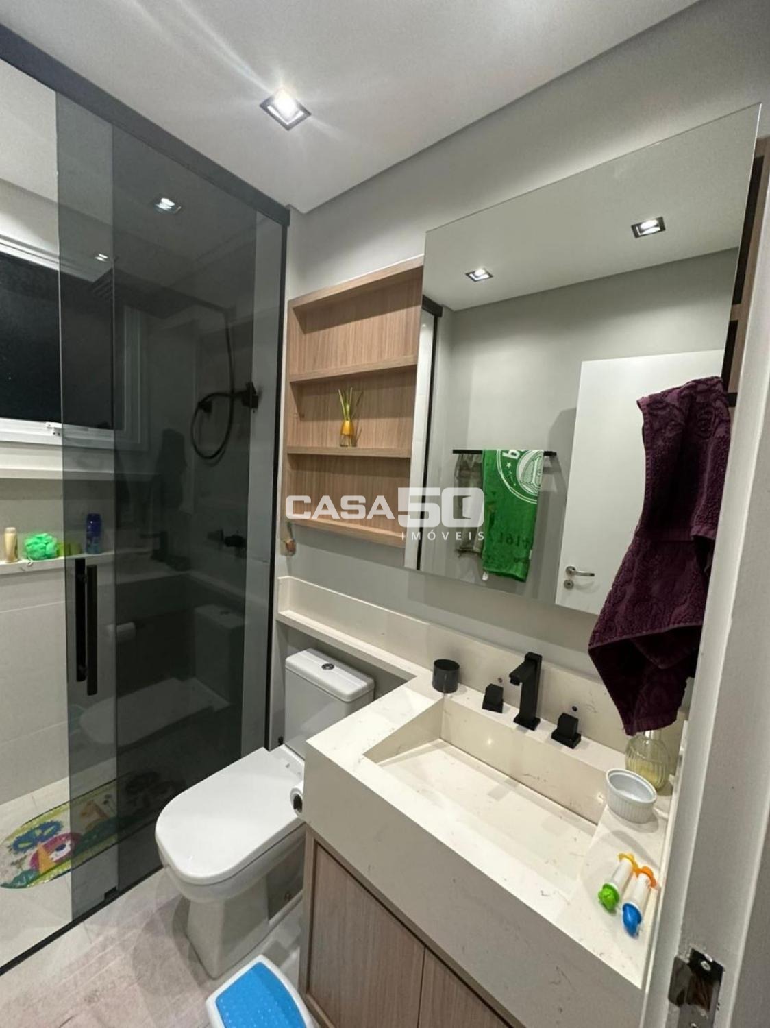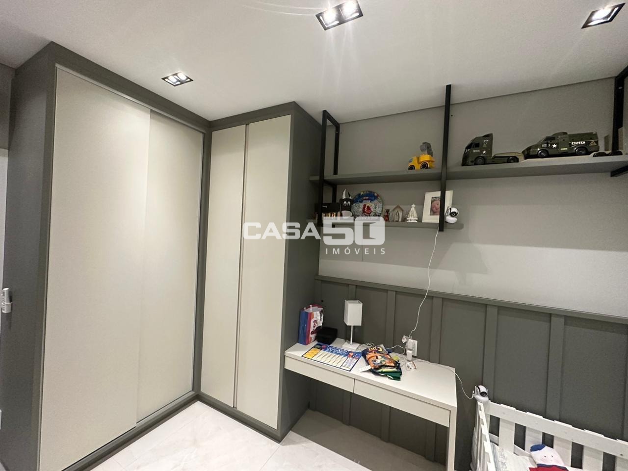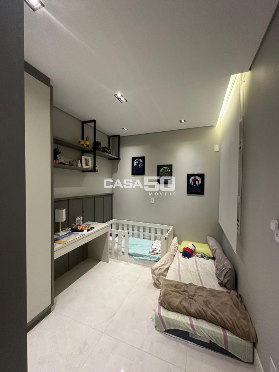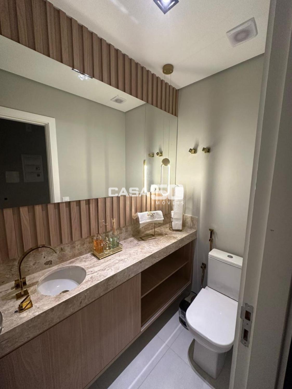 São 3 quartos, 1 suíte, torneiras das pias com misturador quente/frio, persianas automatizadas para o conforto.