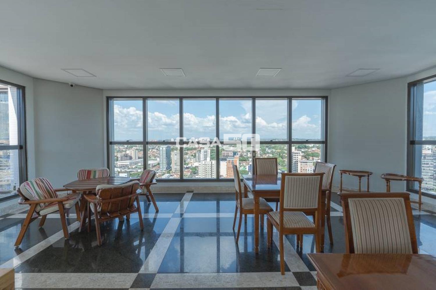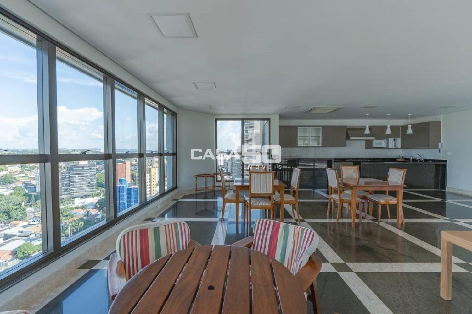 Recém repaginado, possui hall de entrada, living com sala de estar ampliada e com varanda, sala de TV (Home Theater) com varanda, sala de jantar e sala de almoço, lavabo, cozinha gourmet, despensa, área de serviço com lavanderia, 2 quartos de serviço e banheiro de serviço.