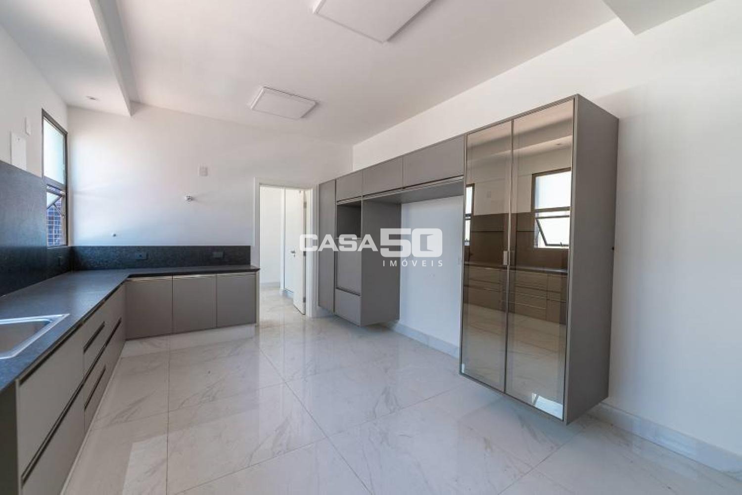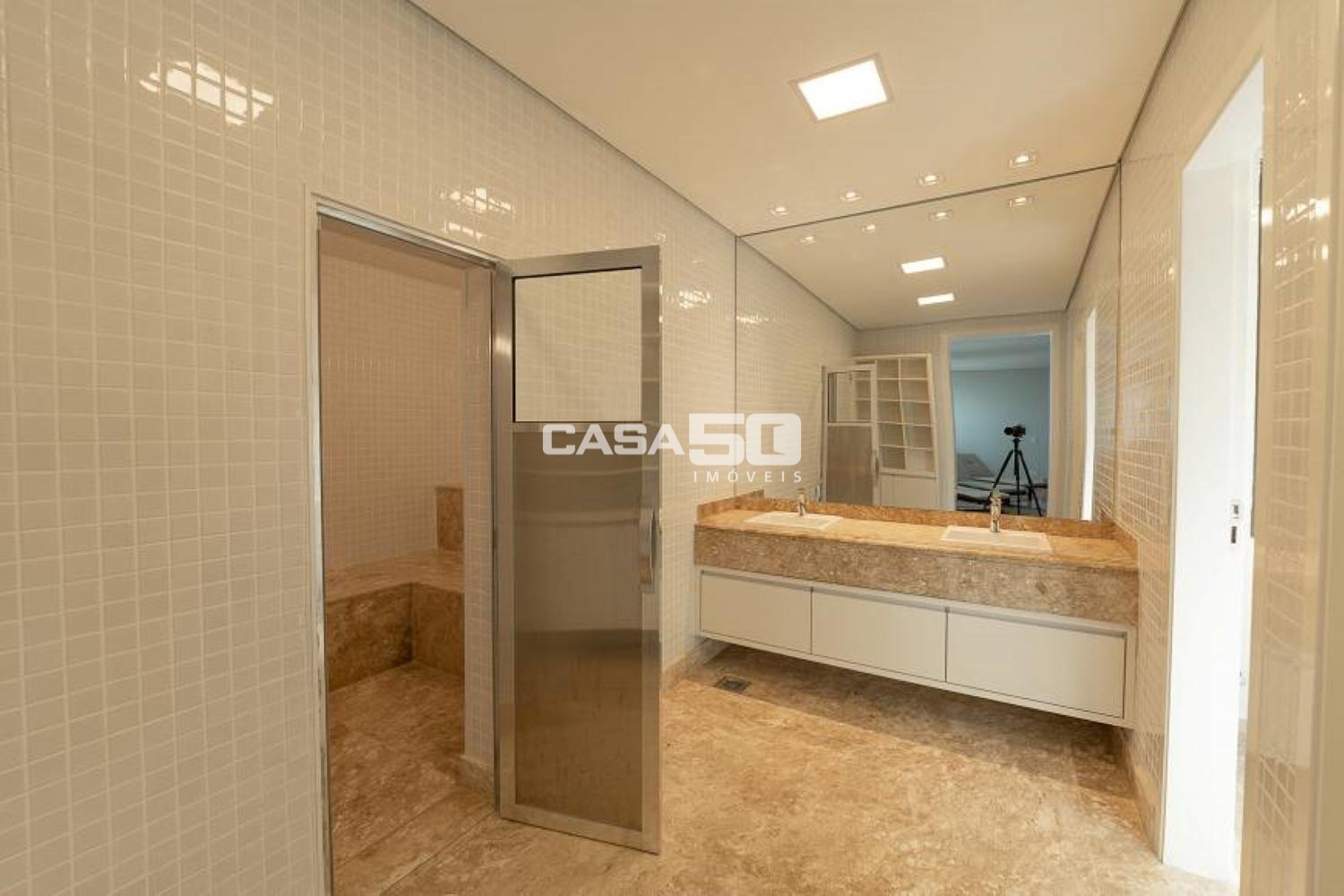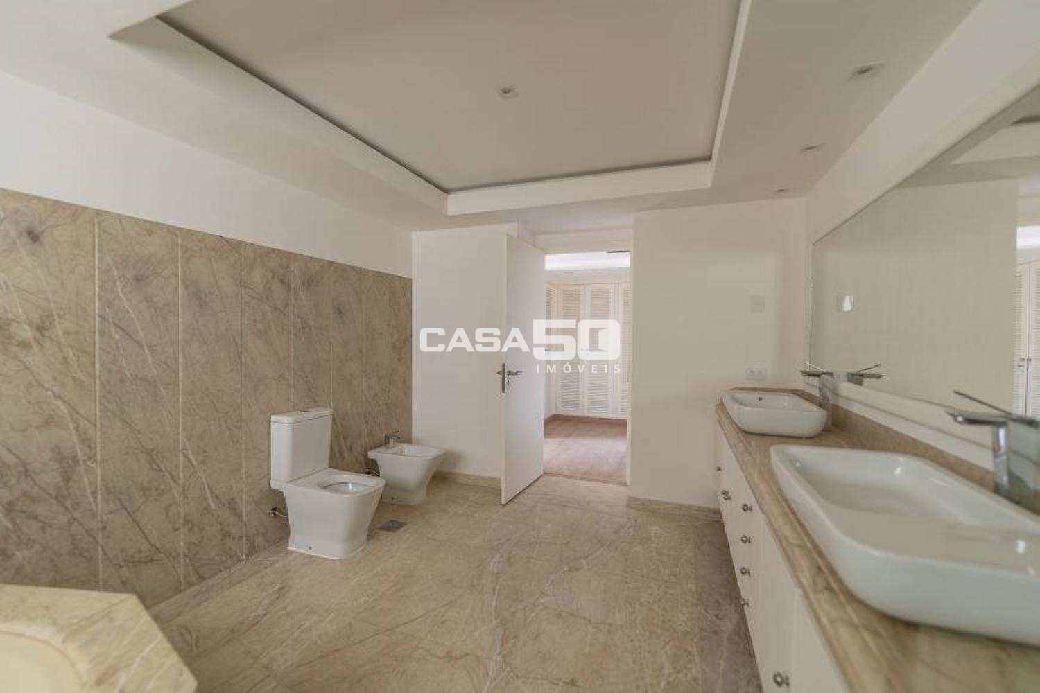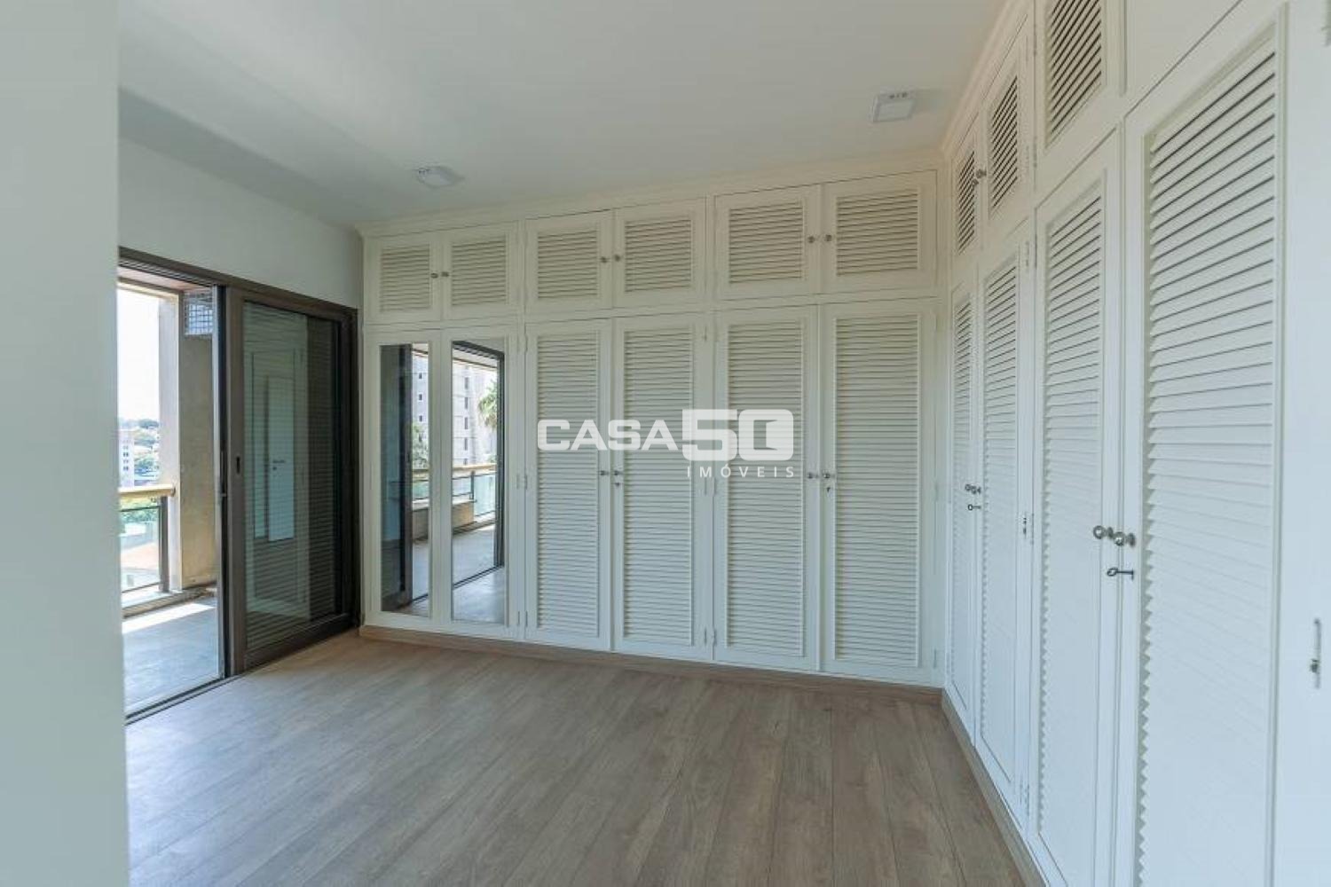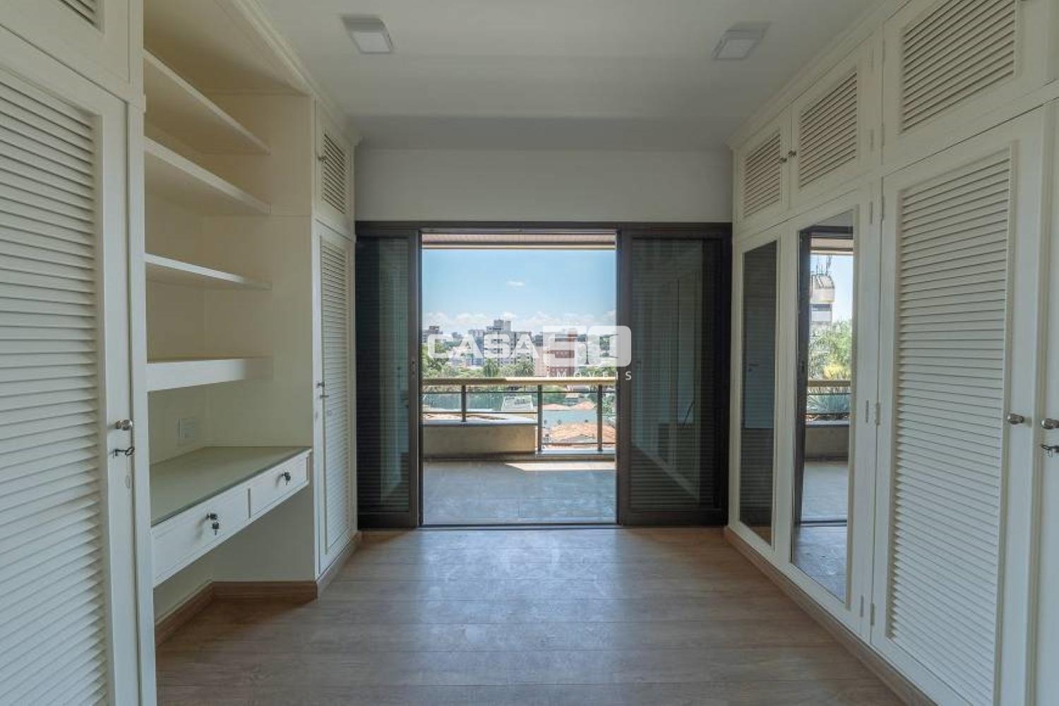 Possui 4 suítes com varanda e todas com armários embutidos, sendo a máster com closet feminino e closet masculino, além de um amplo banheiro com cuba dupla, banheira de hidromassagem, todo em mármore italiano.