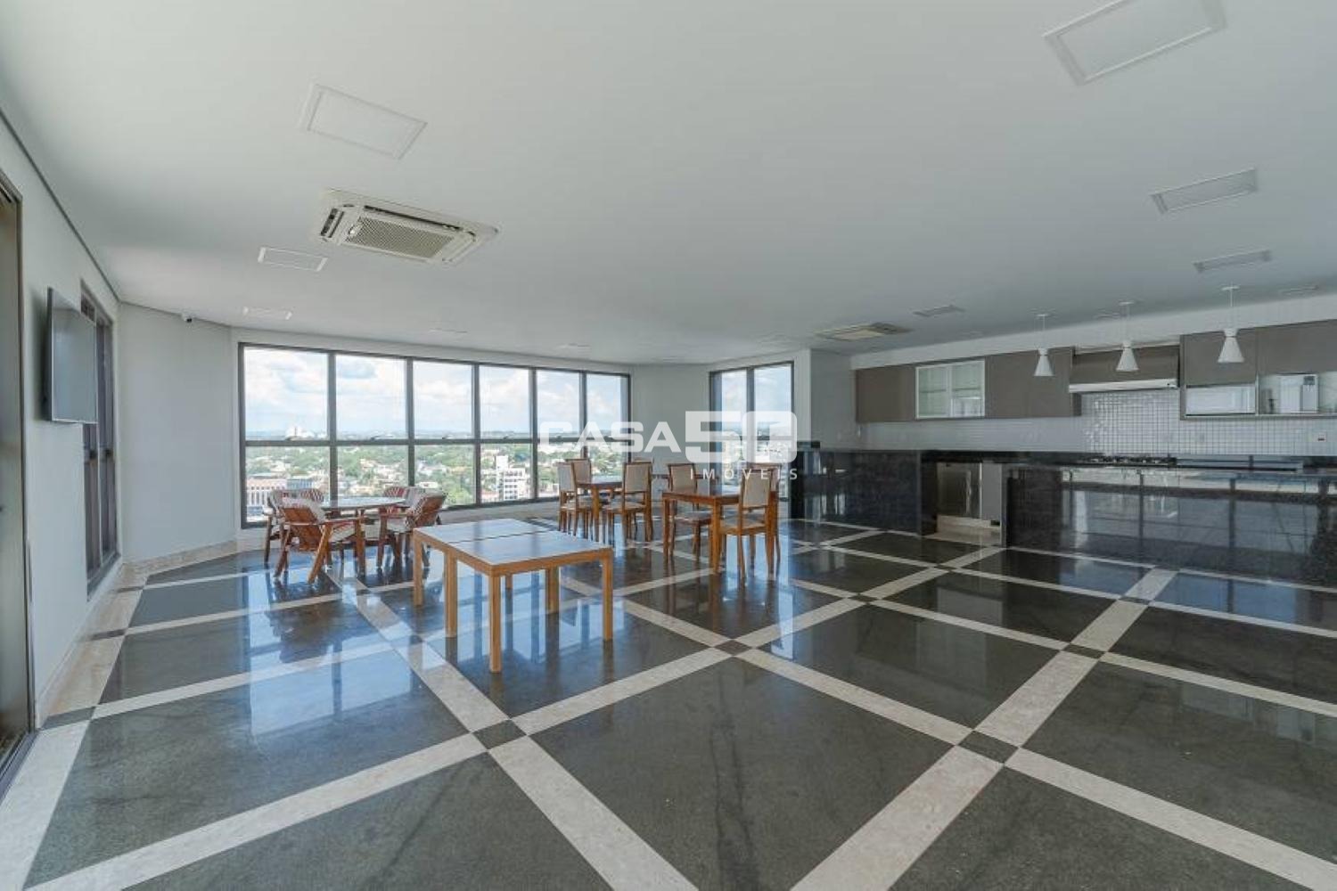 Possui também, área técnica de ar condicionado com infraestrutura já instalada para todas as suítes, salas de estar, jantar e TV (9 pontos ao todo).