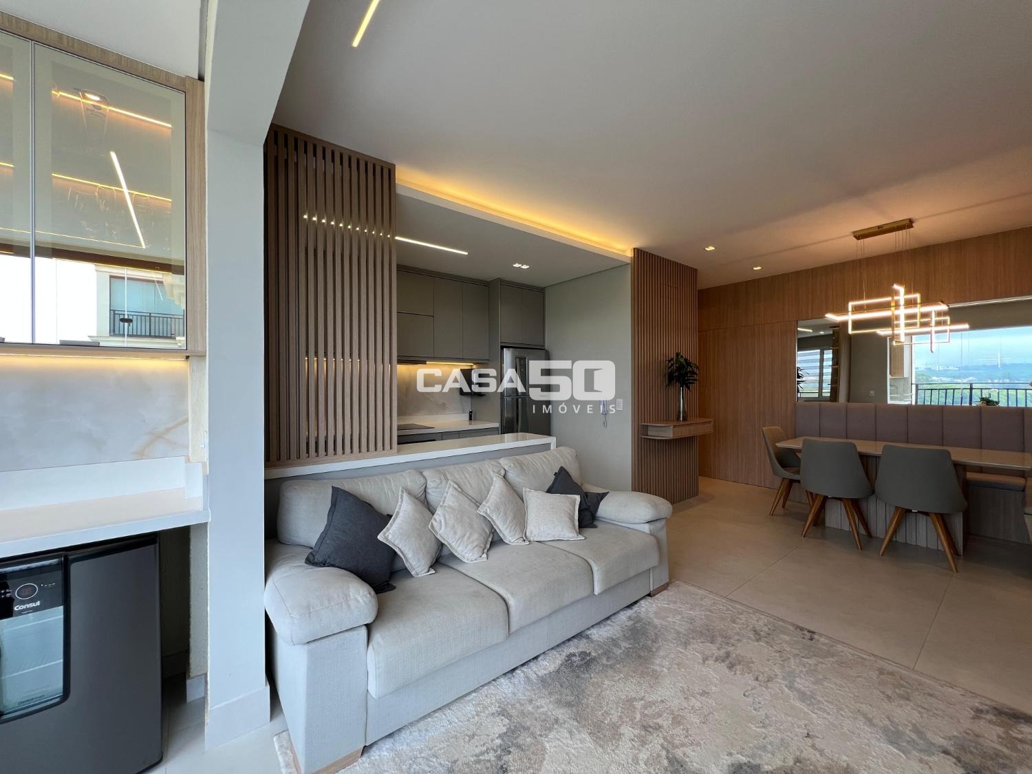 Seu living é amplo com 2 ambientes e integrado com a varanda gourmet e cozinha no estilo americano. Além disso, ainda dispõe de 3 ótimos quartos sendo 1 suíte, lavabo e área de serviço, completo em marcenaria. Na garagem, são 2 vagas cobertas, próximas ao elevador.