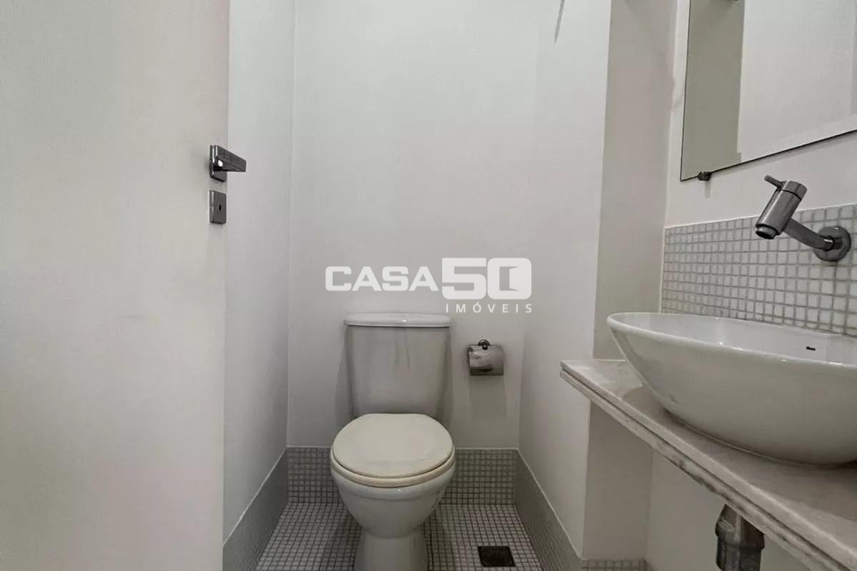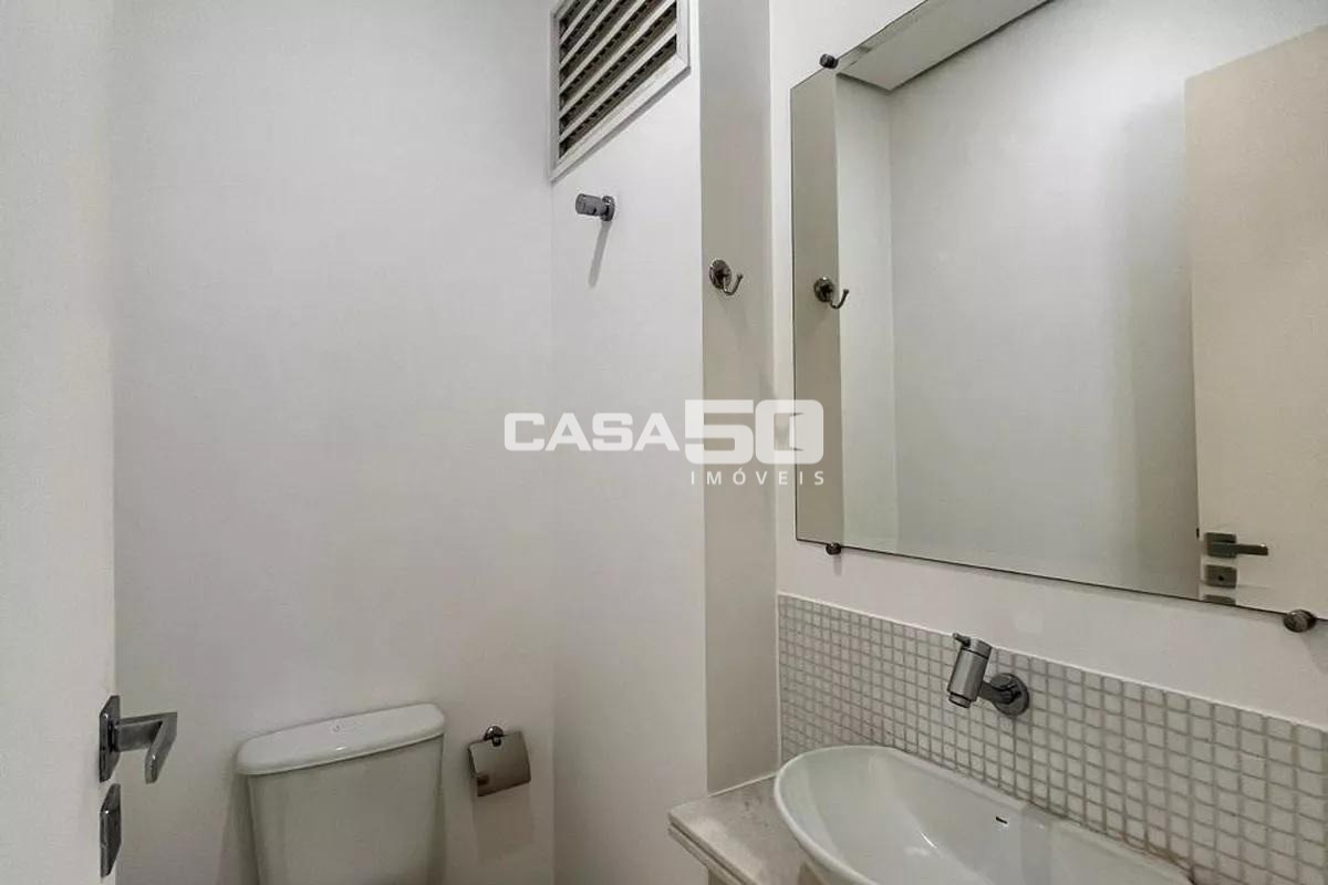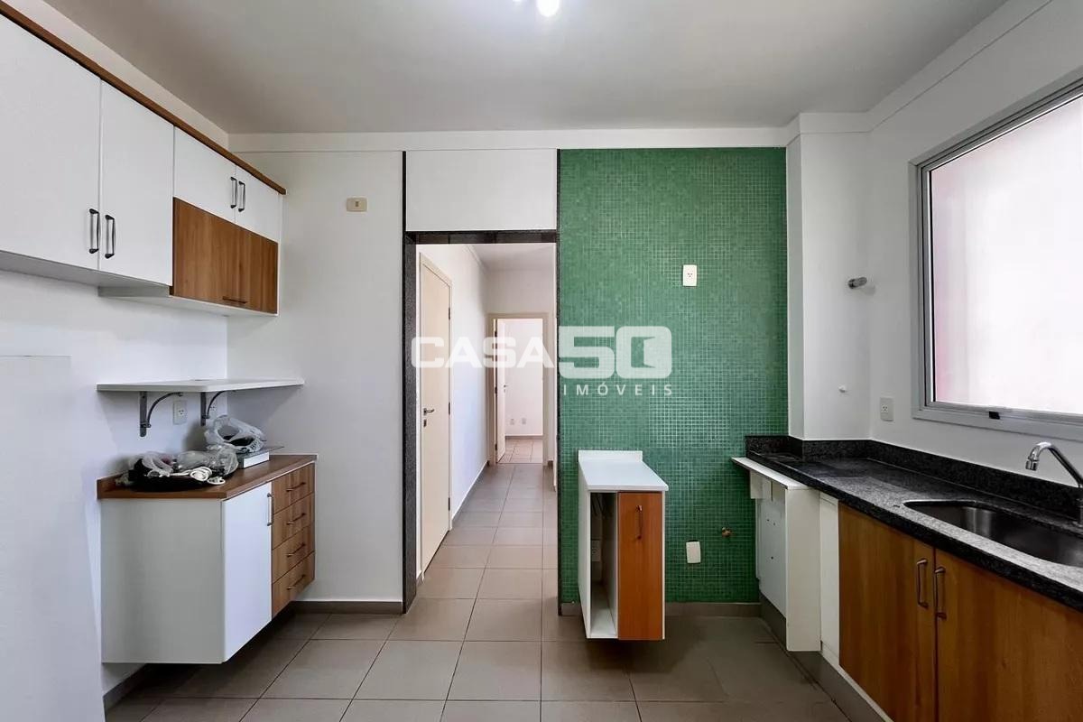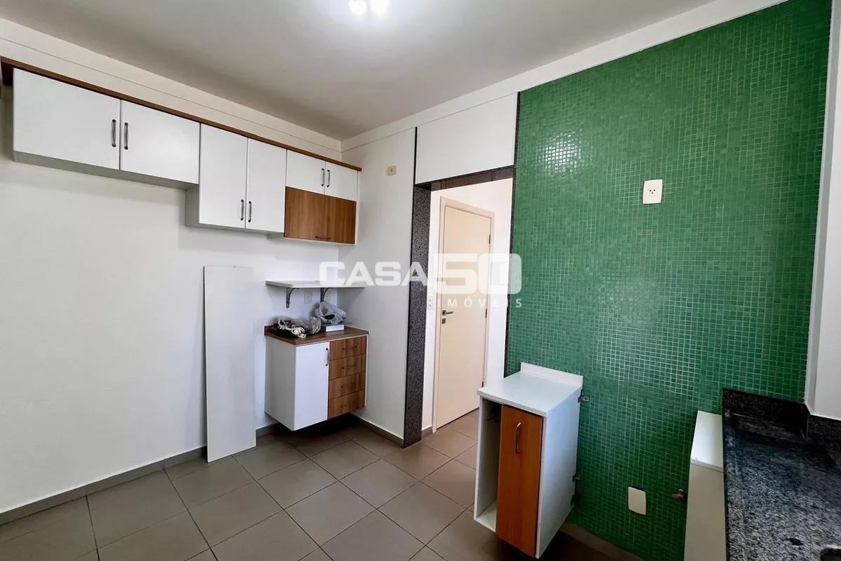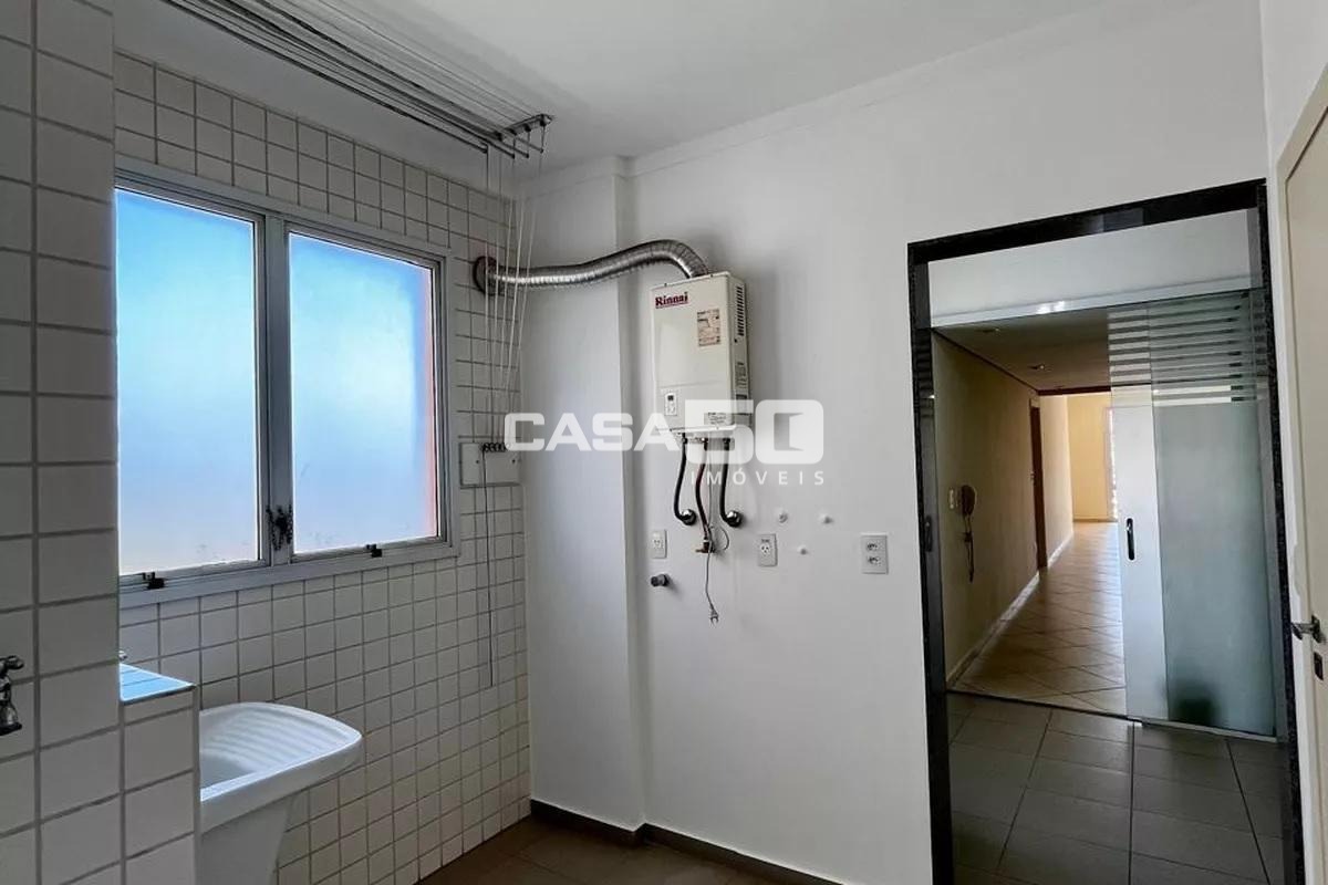 O apartamento dispõe de 3 quartos sendo todos suítes completas com armários, além de lavabo, roupeiro planejado e uma cozinha funcional com armários de excelente qualidade. A área de serviço, também equipada, conta com uma dependência que pode ser utilizada como dormitório de empregada ou escritório, trazendo ainda mais versatilidade ao layout. Os revestimentos em madeira e porcelanato reforçam a elegância dos ambientes.