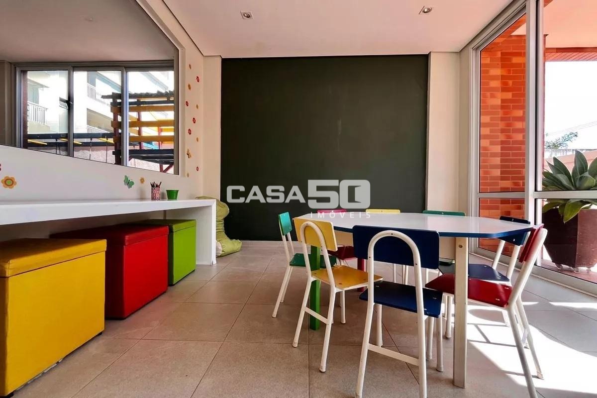 O condomínio apresenta um paisagismo agradável e oferece diversas opções de lazer, como salão gourmet, sauna, fitness, espaço kids e playground. Para maior comodidade, o apartamento dispõe de três vagas de garagem e o prédio conta com portaria virtual, garantindo segurança e praticidade ao dia a dia.