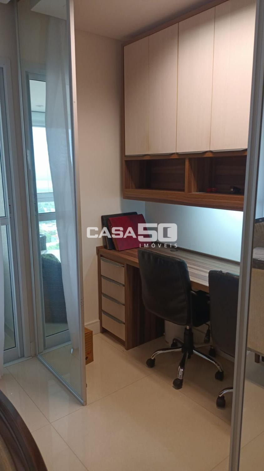 Apartamento alugado mobiliado, , Andar alto, linda vista, sol da manha , ampla sala para 2 ambientes , varanda gourmet, lavabo, cozinha planejada, área de serviço e banheiro, 3 suítes com armários e ar condicionado, escritório. 3 vagas cobertas com armário privativo.