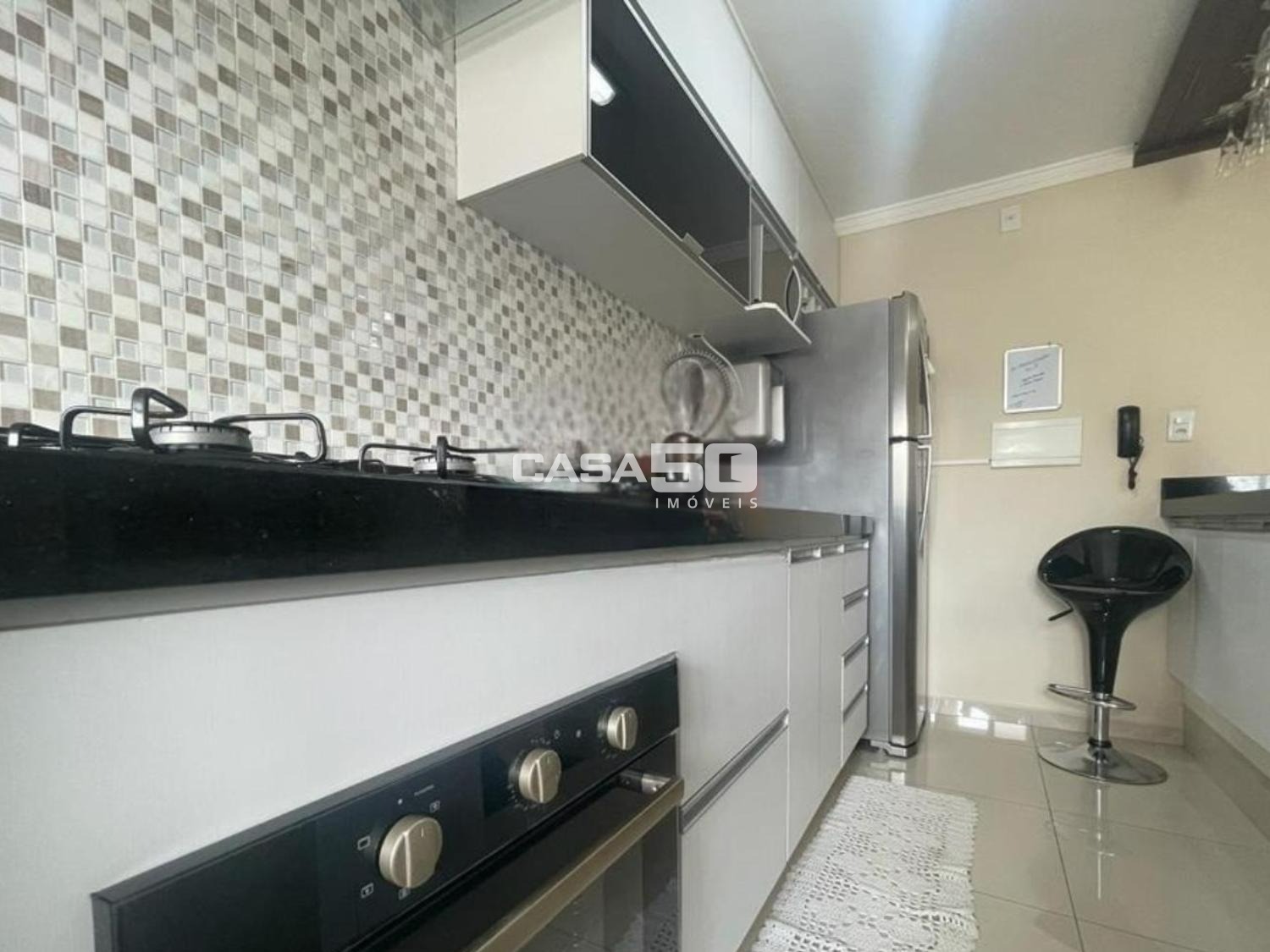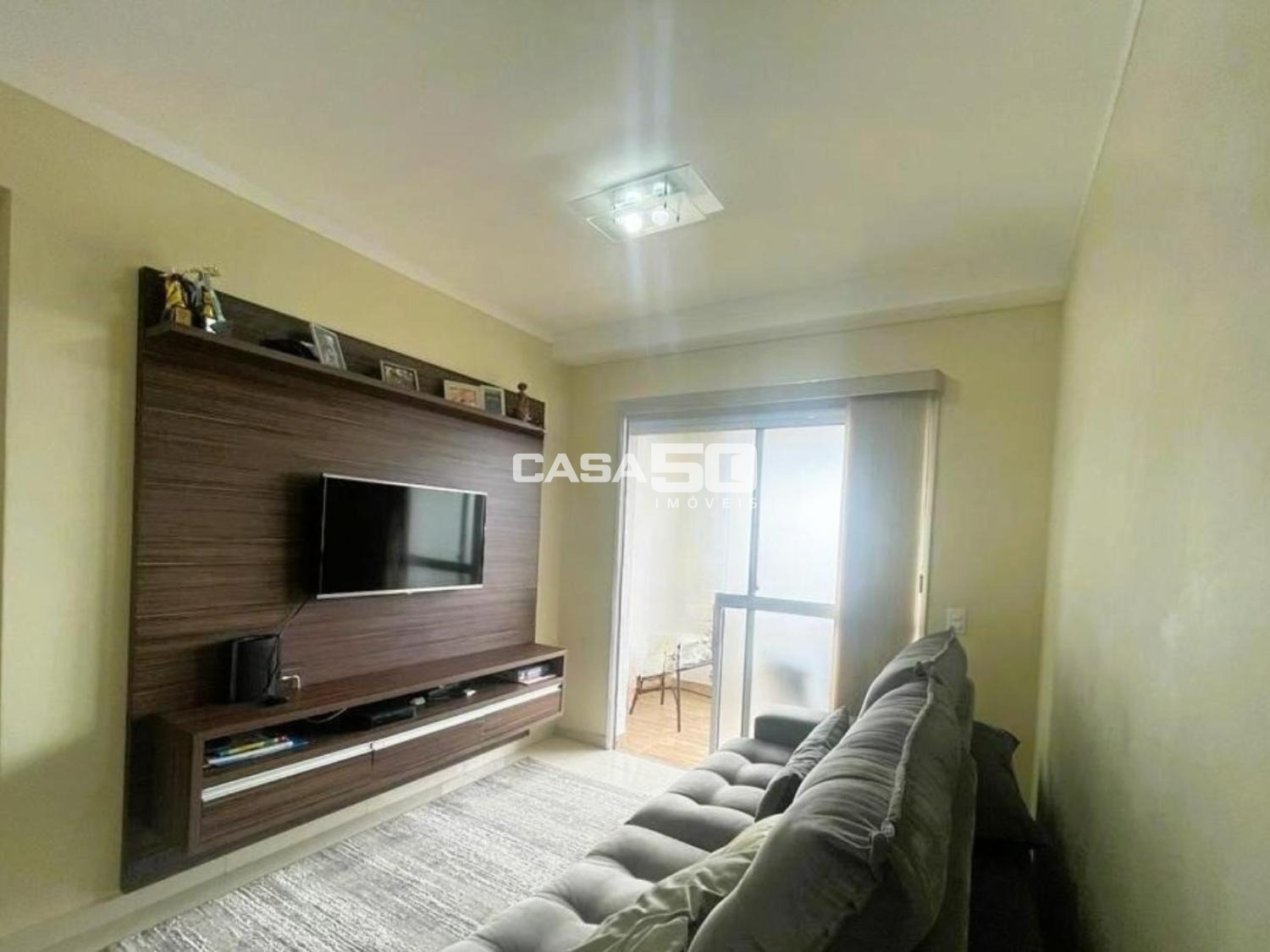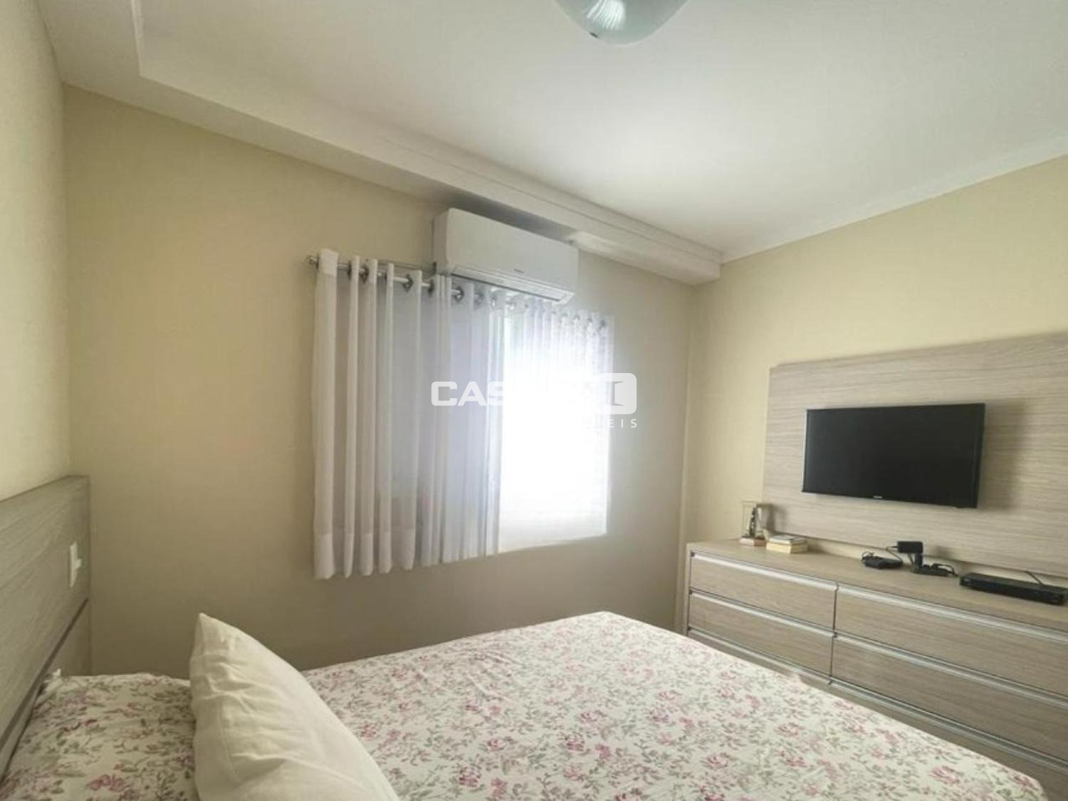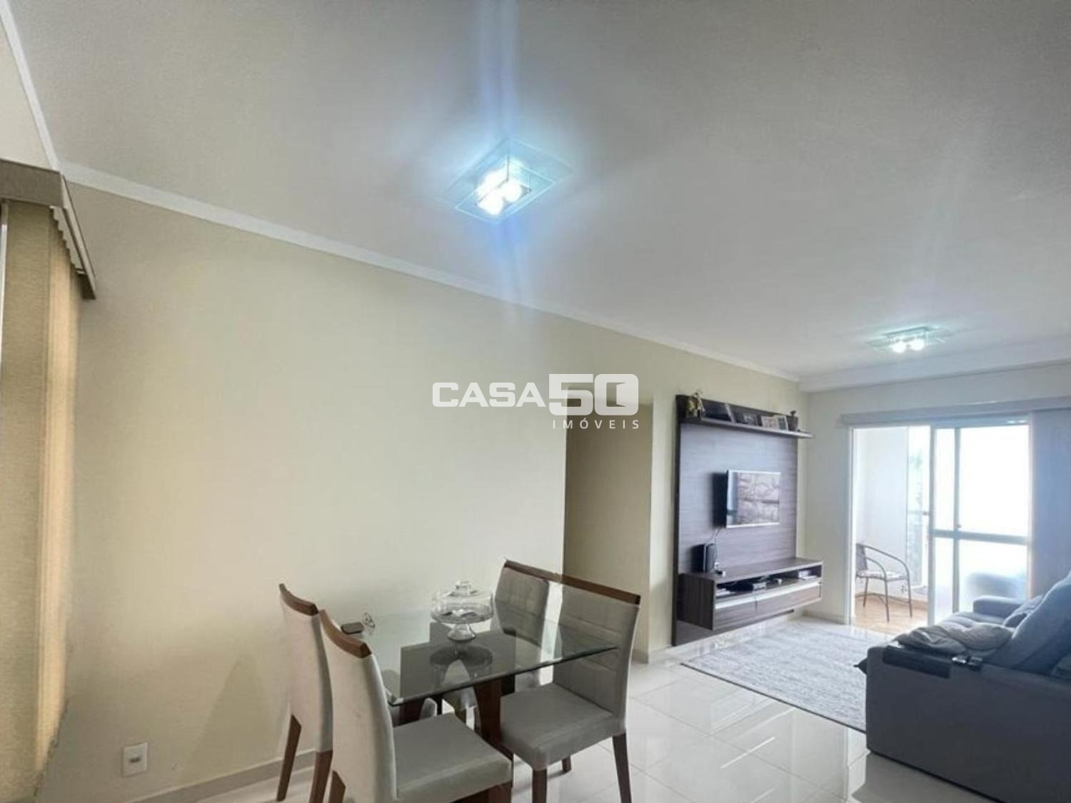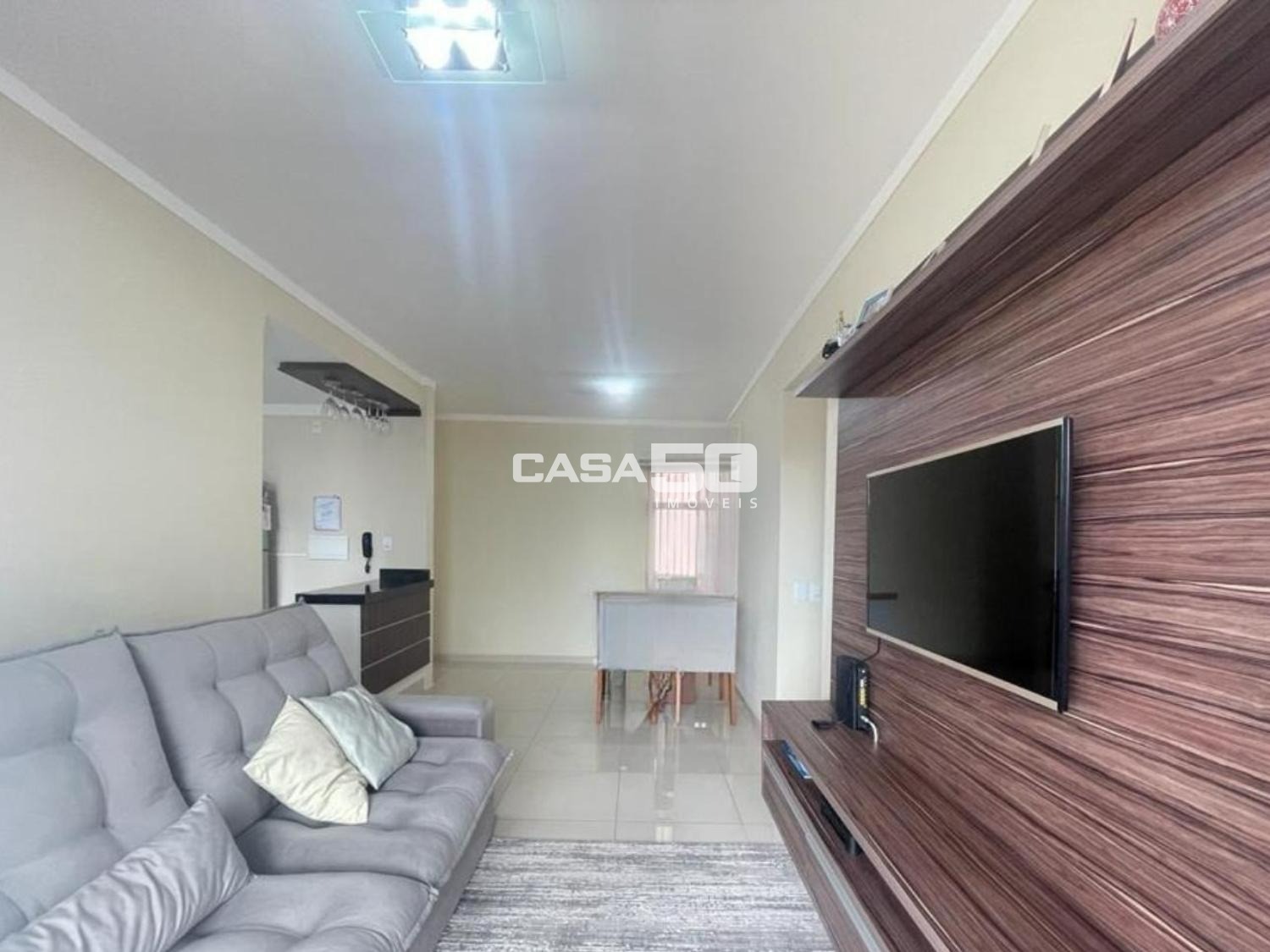 O apartamento conta com 3 dormitórios, sendo 1 suíte, sala de TV e jantar integradas, cozinha estilo americana com armários planejados, banheiro social e lavanderia, proporcionando funcionalidade e ótimo aproveitamento dos ambientes.