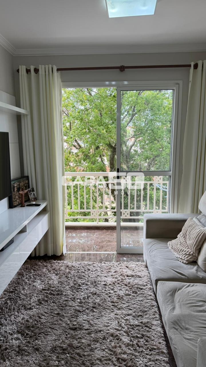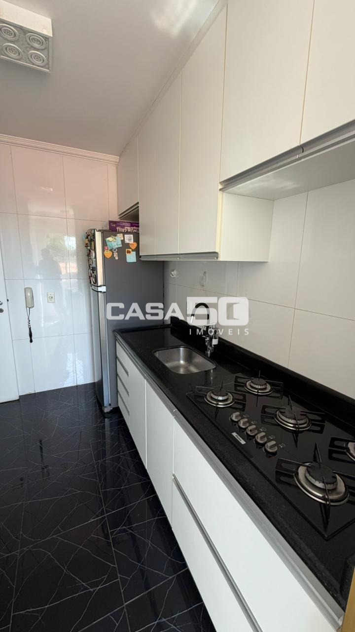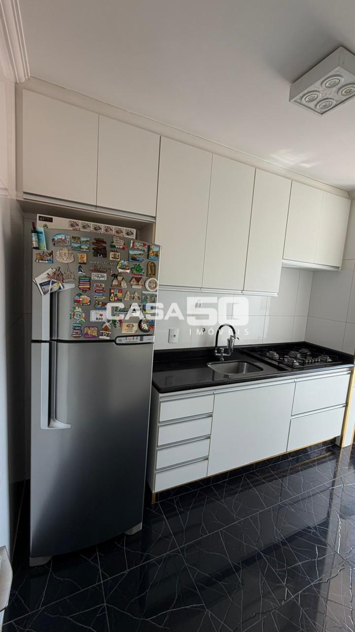Apartamento semi mobiliado com 2 quartos, sala ampla e bem iluminada, sacada com vista livre, duas vagas de garagem e cozinha com planejados.