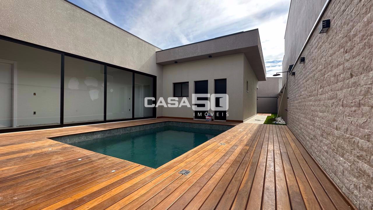 A casa será entregue com cozinha completa, lavabo, escritório, living para 3 ambientes, 4 suítes, área de Serviço, espaço Gourmet com churrasqueira, piscina, vestiário Externo, ar condicionado, 4 vagas sendo 2 cobertas.