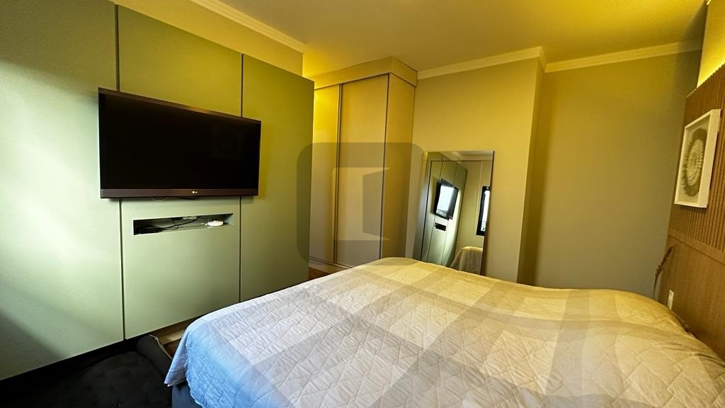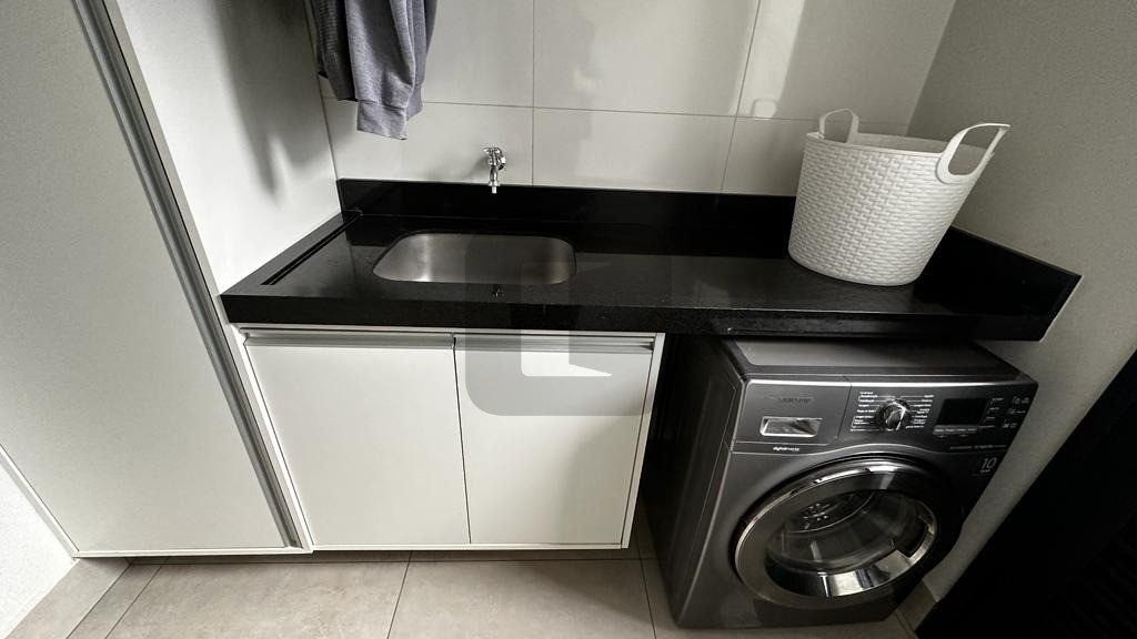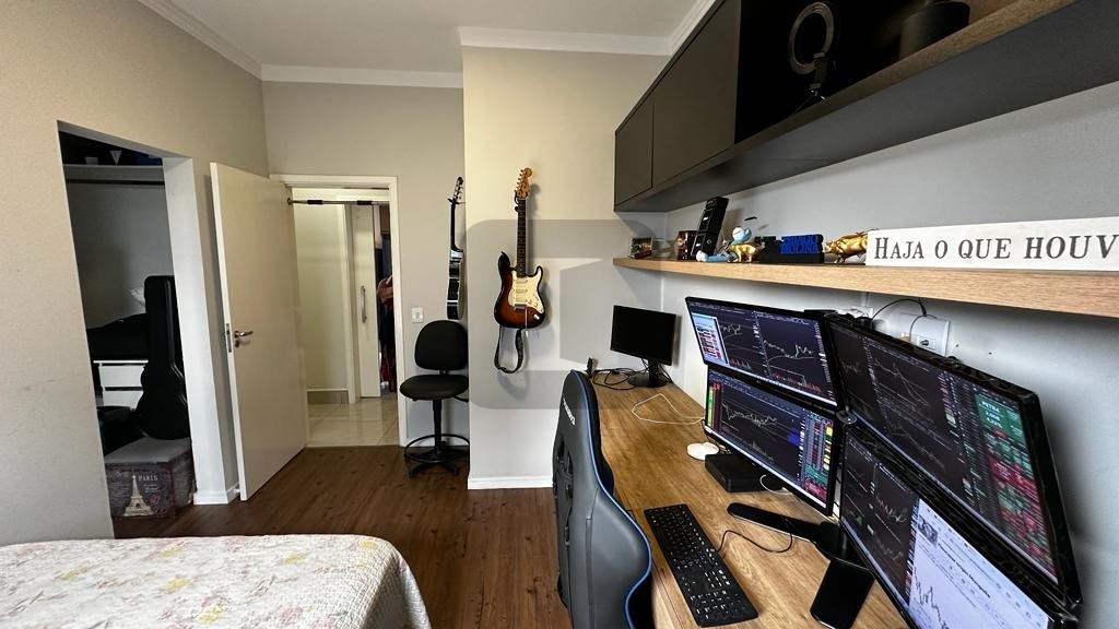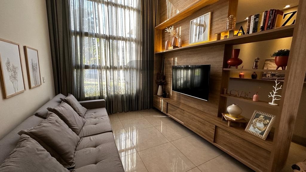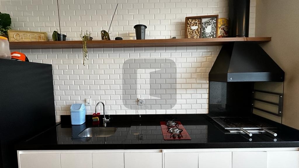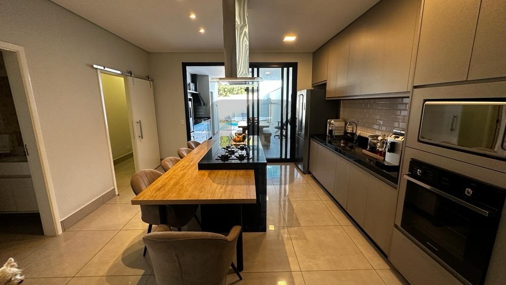 O living possui pé direito duplo, é integrado à ampla cozinha que possui uma belíssima ilha com eletrodomésticos de 1ª linha instalados.
