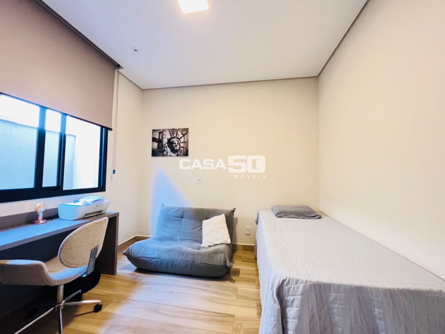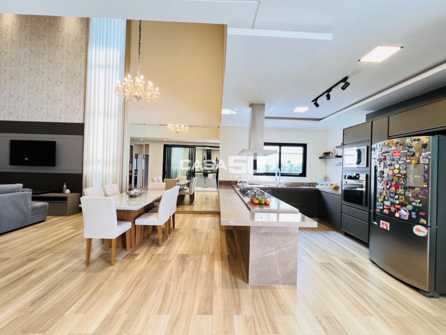 Possui 274m² de área construída, sala com pé direito duplo Área social integrada, sala com pé direito duplo, cozinha totalmente planejada, escritório reversível para suíte, lavabo é linda área gourmet com churrasqueira e piscina aquecida.