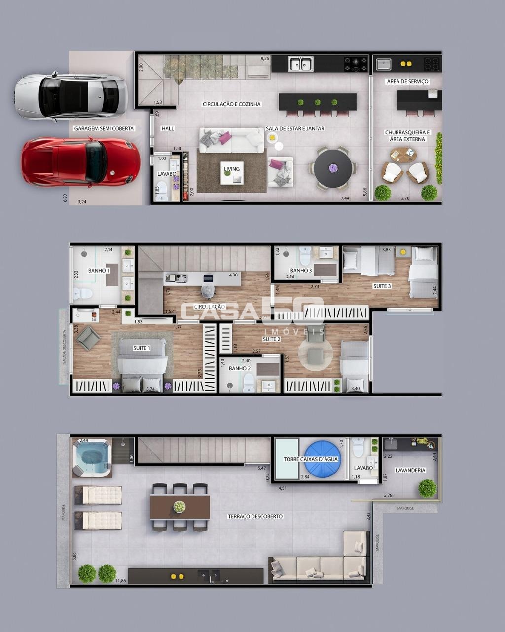 3 suítes, sendo 1 master com cuba dupla, 5 banheiros.