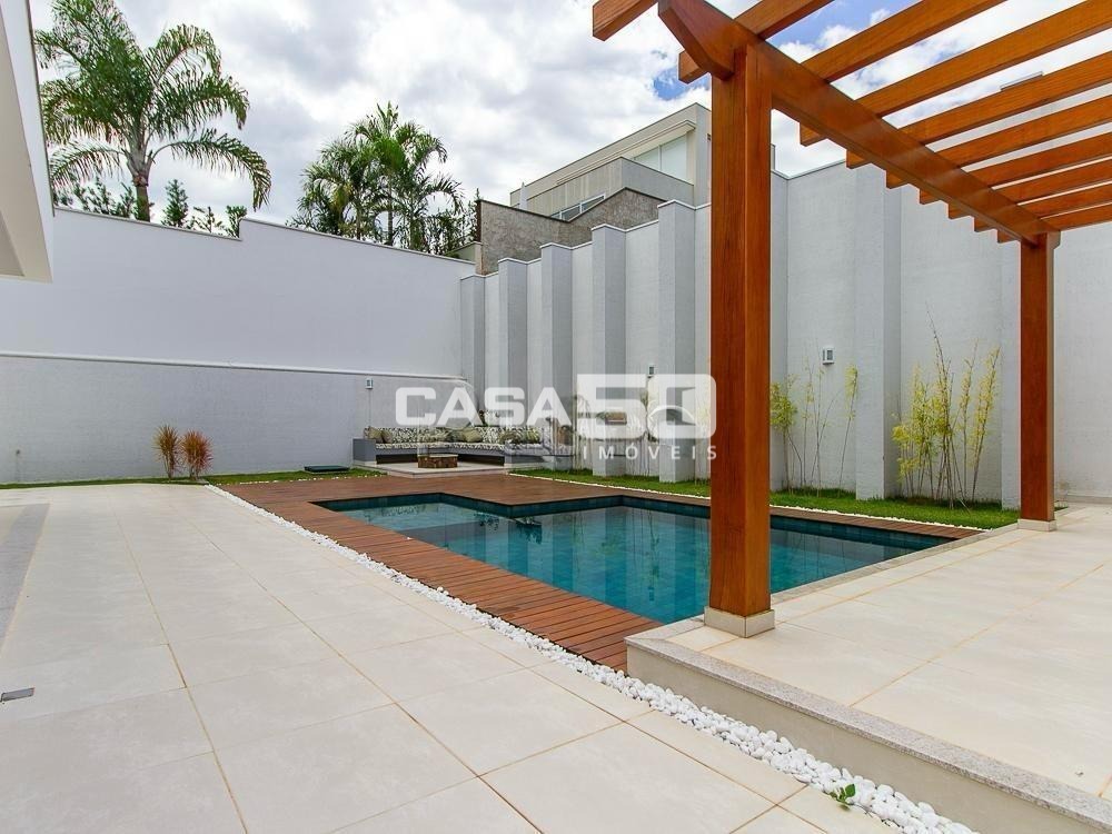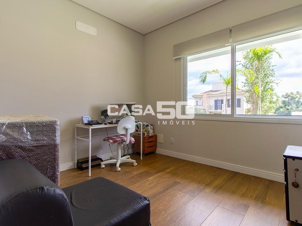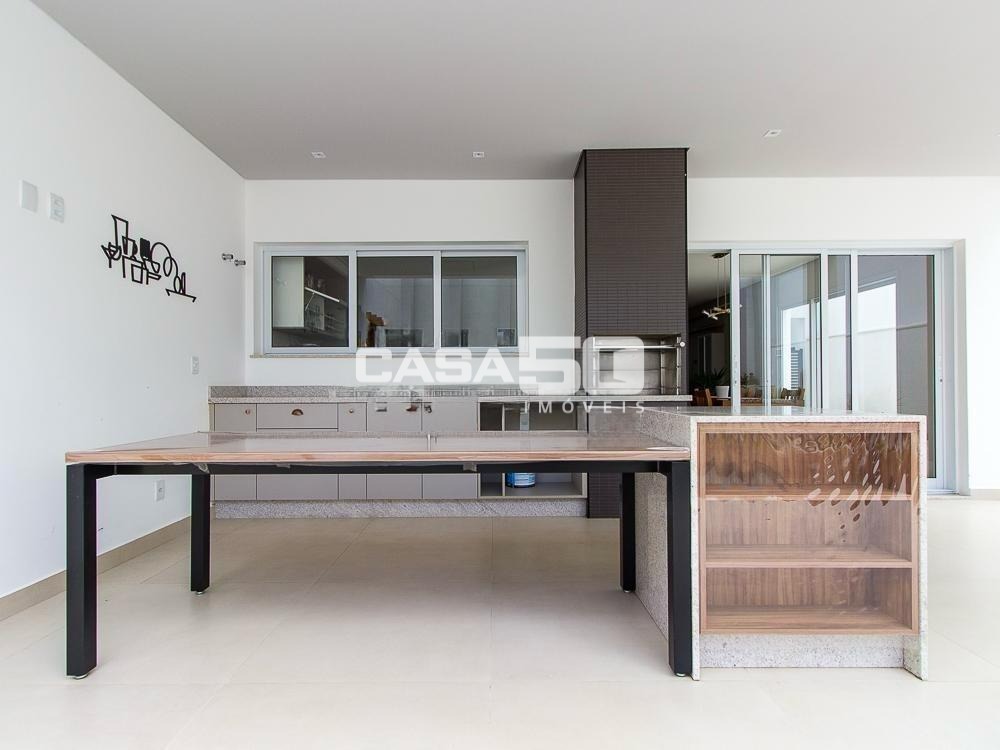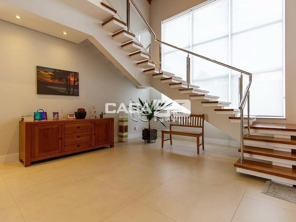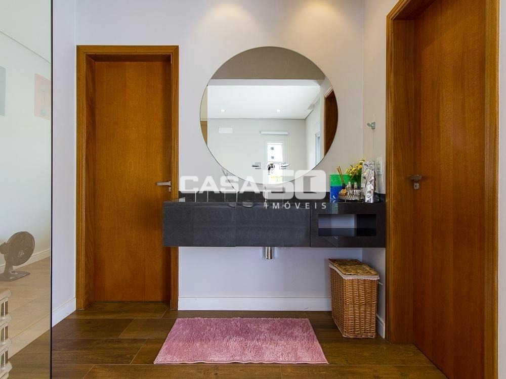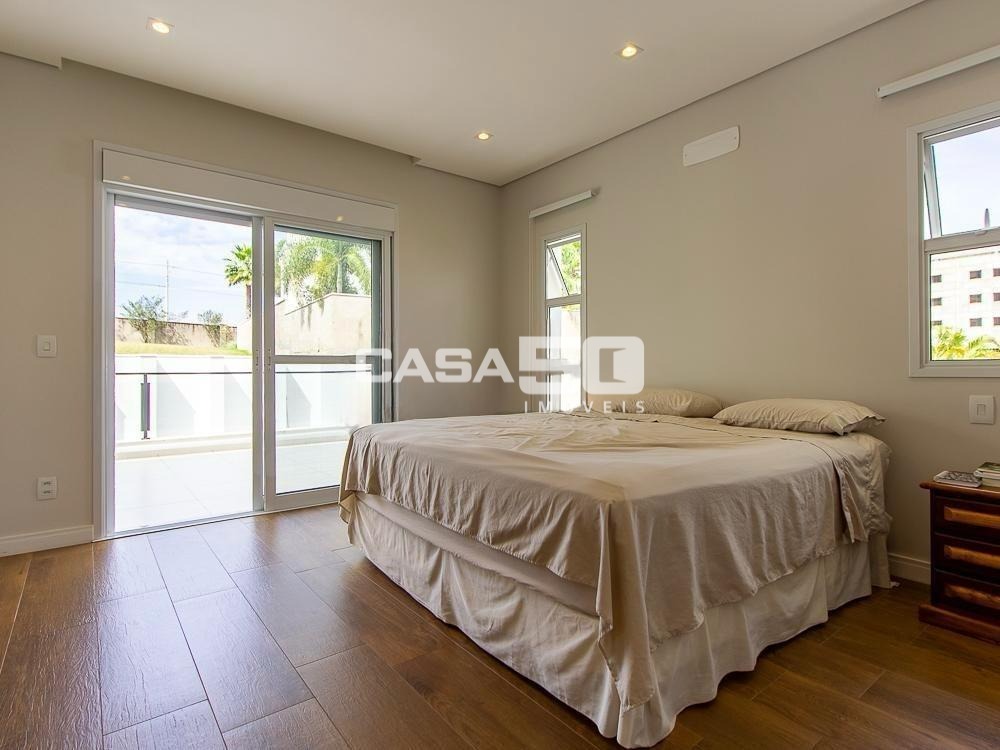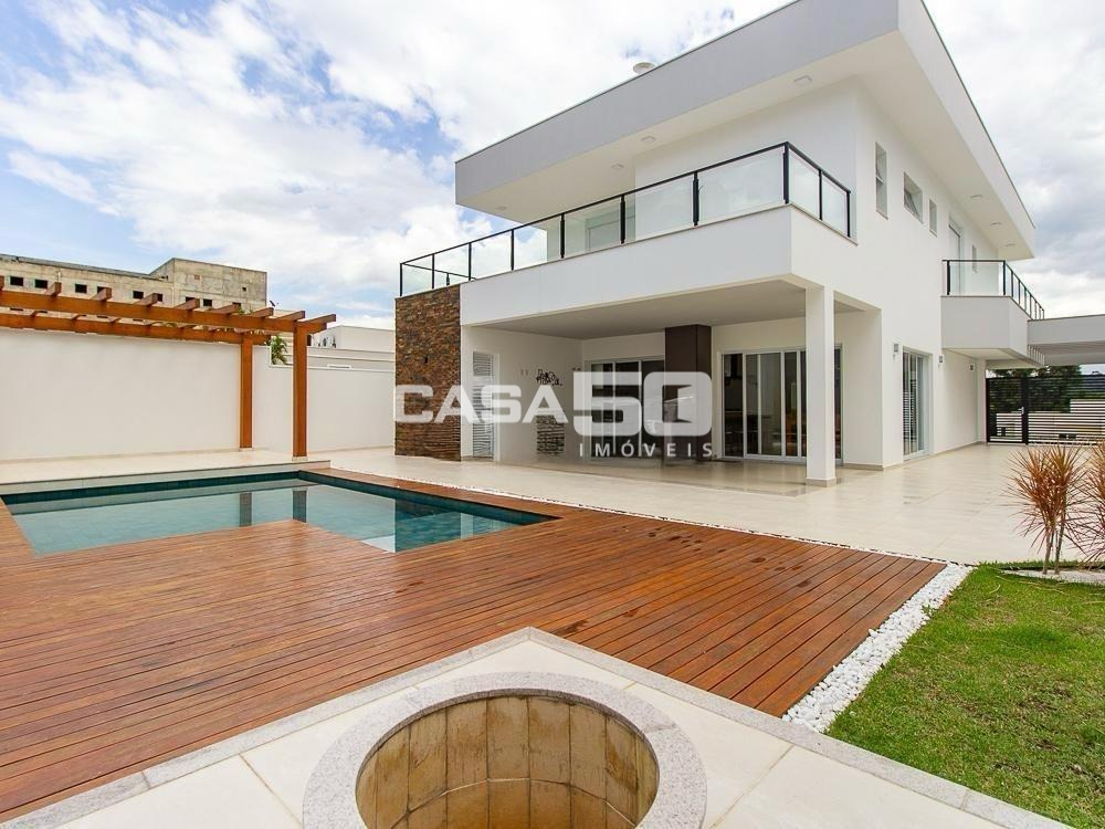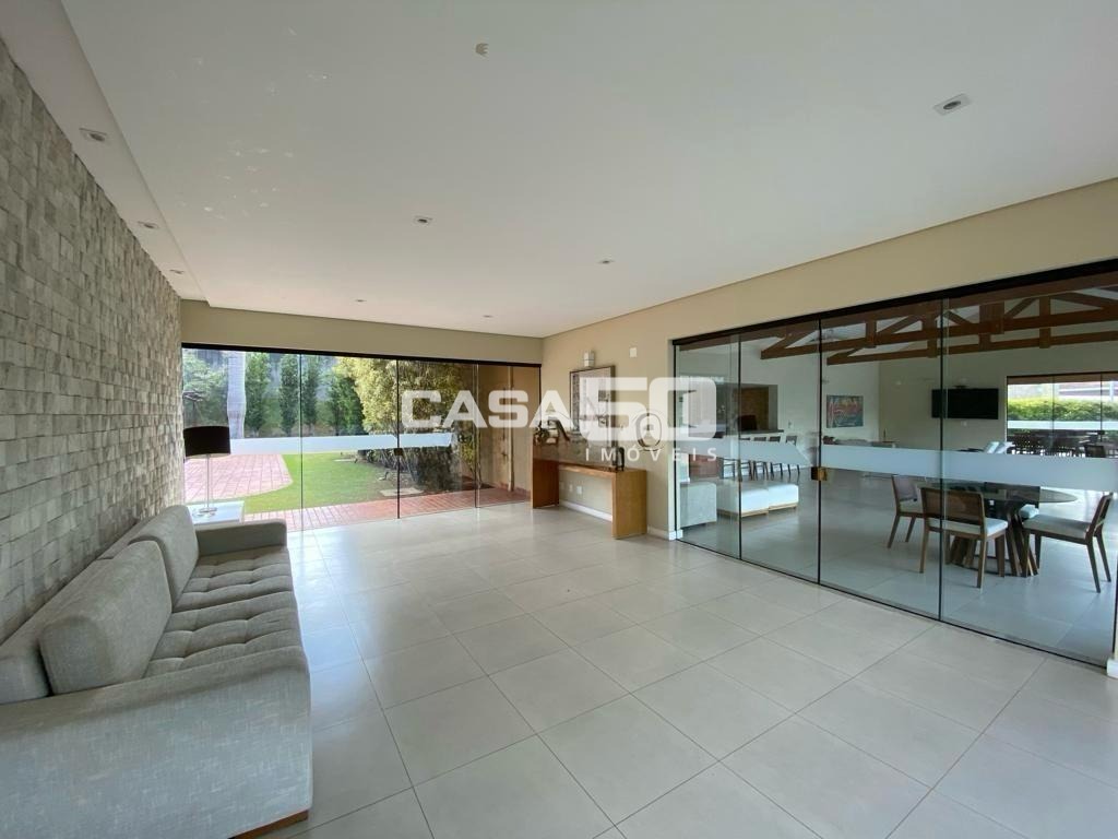 Já no piso superior temos 3 amplas suítes, mezanino e home theater. Excelente projeto e acabamento! Área comum do condomínio: bosque com lago, pista para caminhada, quadra de tênis e poliesportiva, salão de festas, piscina, academia, espaço gourmet com churrasqueira. Segurança e monitoramento 24 horas.