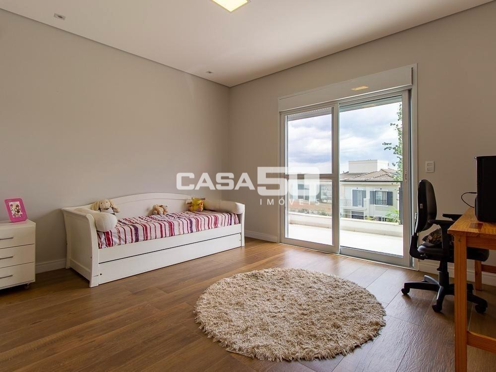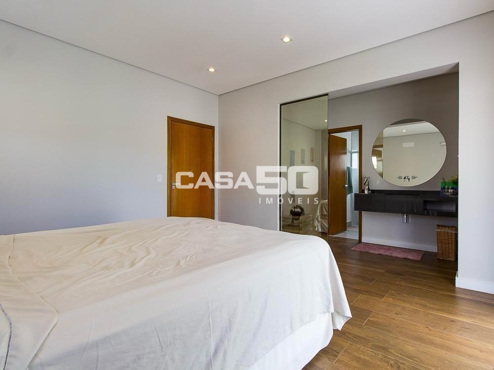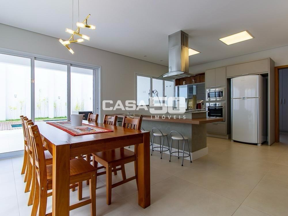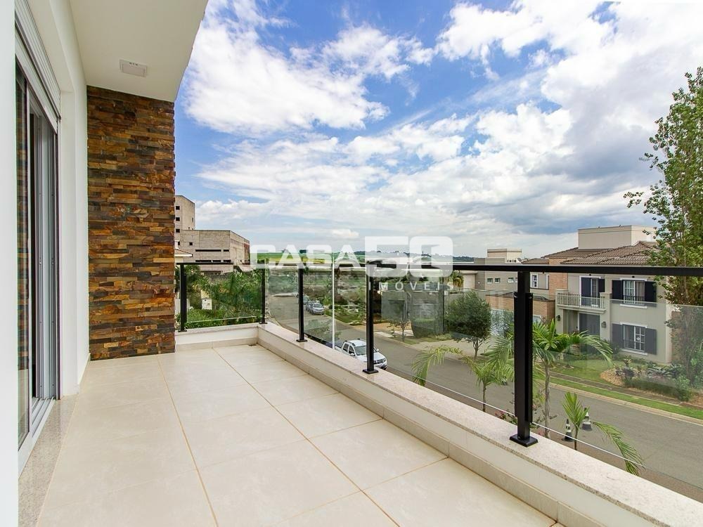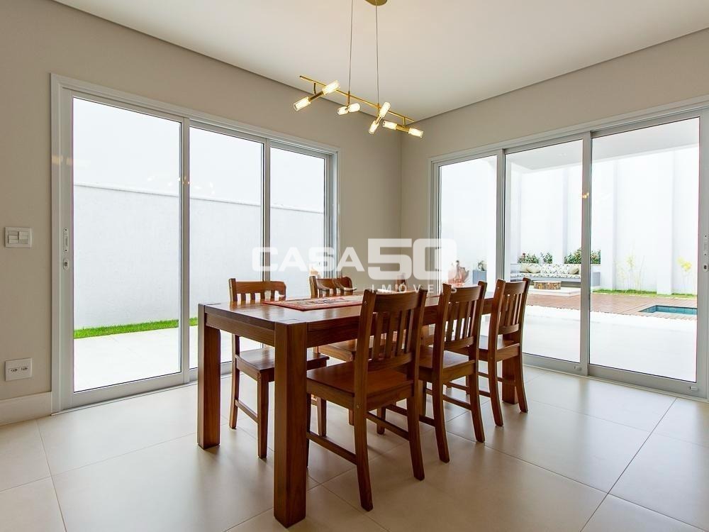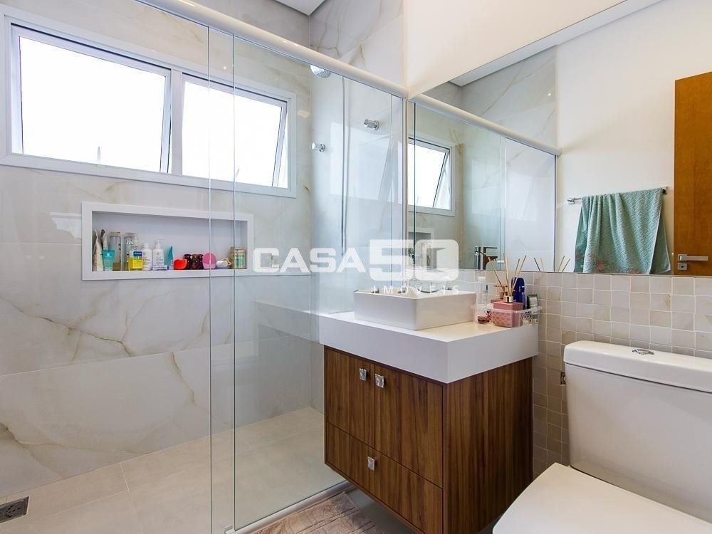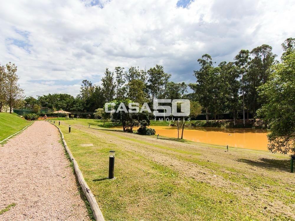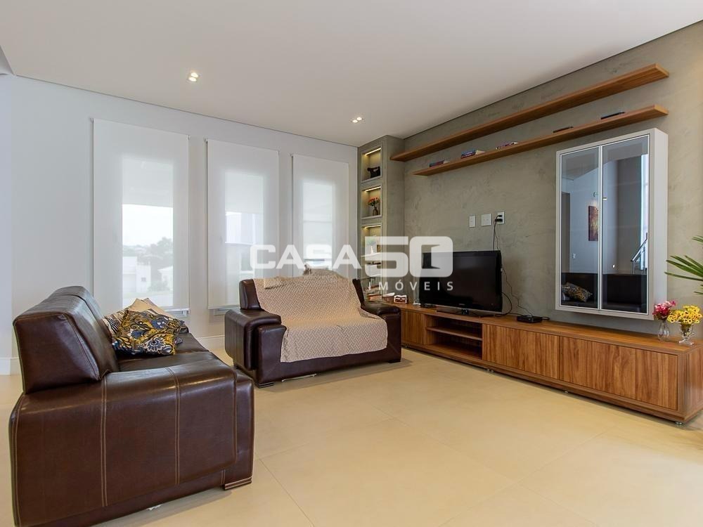 Já no piso superior temos 3 amplas suítes, mezanino e home theater. Excelente projeto e acabamento! Área comum do condomínio: bosque com lago, pista para caminhada, quadra de tênis e poliesportiva, salão de festas, piscina, academia, espaço gourmet com churrasqueira. Segurança e monitoramento 24 horas.