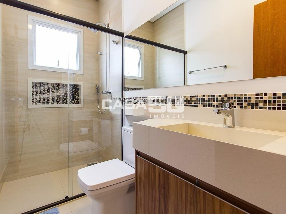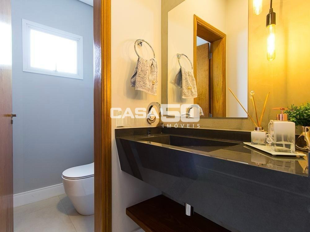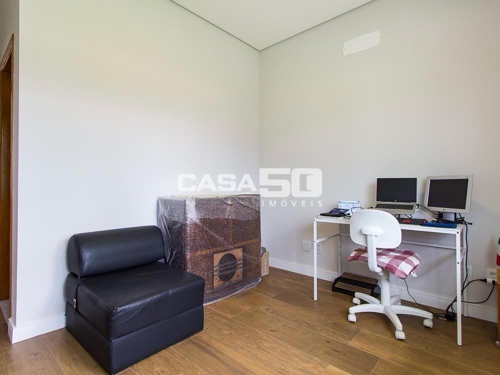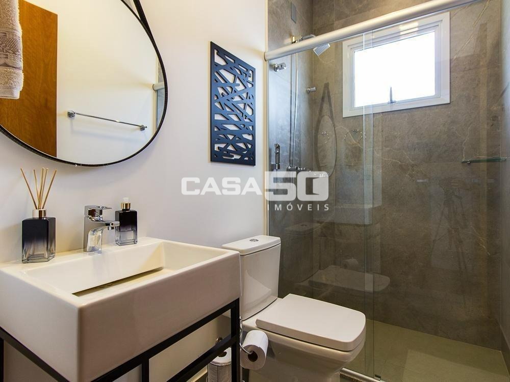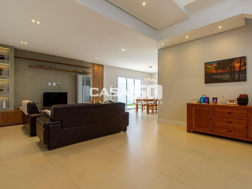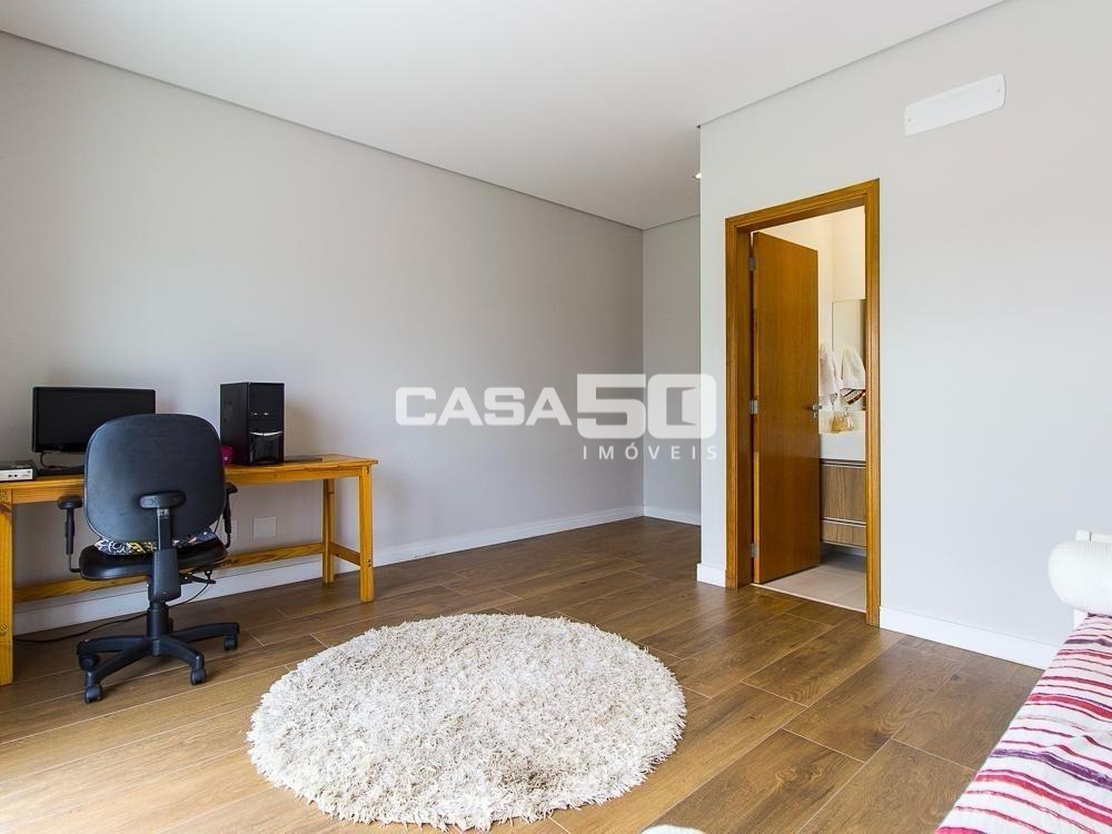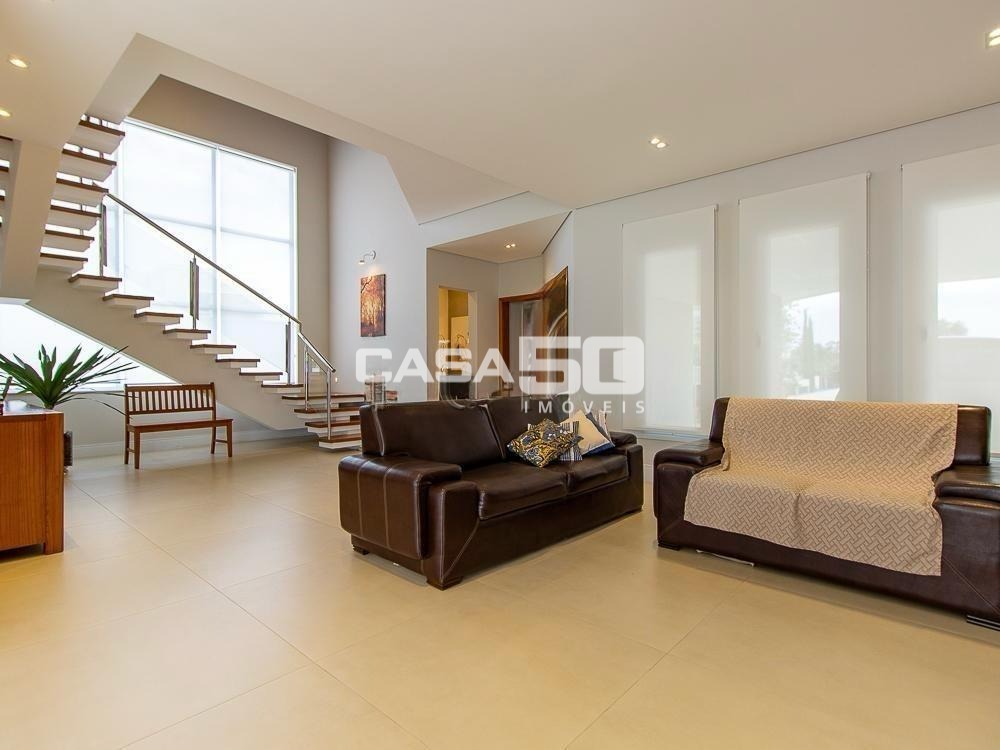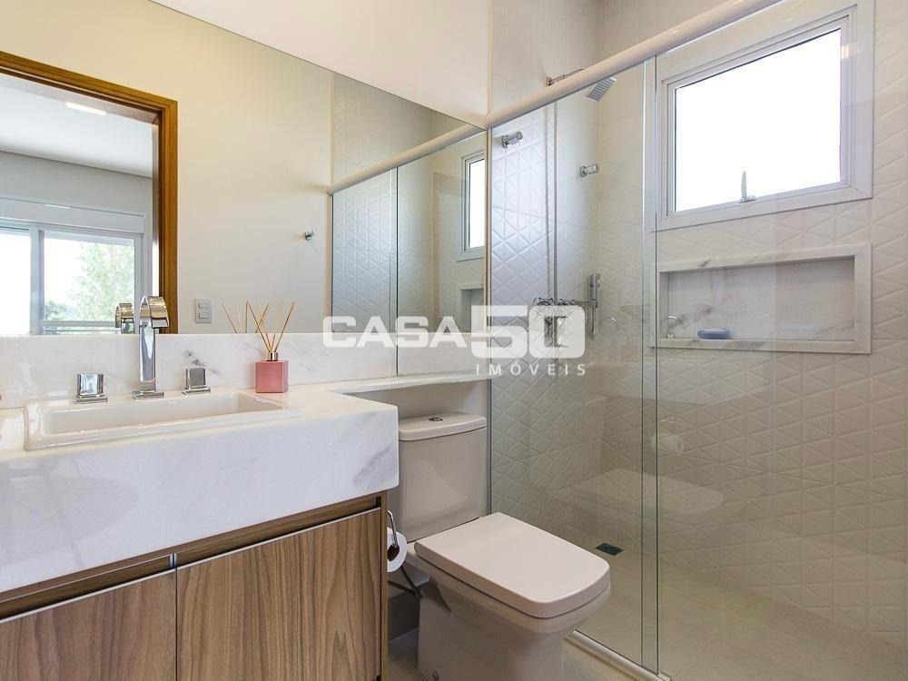 Já no piso superior temos 3 amplas suítes, mezanino e home theater. Excelente projeto e acabamento! Área comum do condomínio: bosque com lago, pista para caminhada, quadra de tênis e poliesportiva, salão de festas, piscina, academia, espaço gourmet com churrasqueira. Segurança e monitoramento 24 horas.