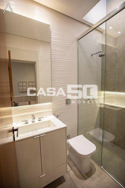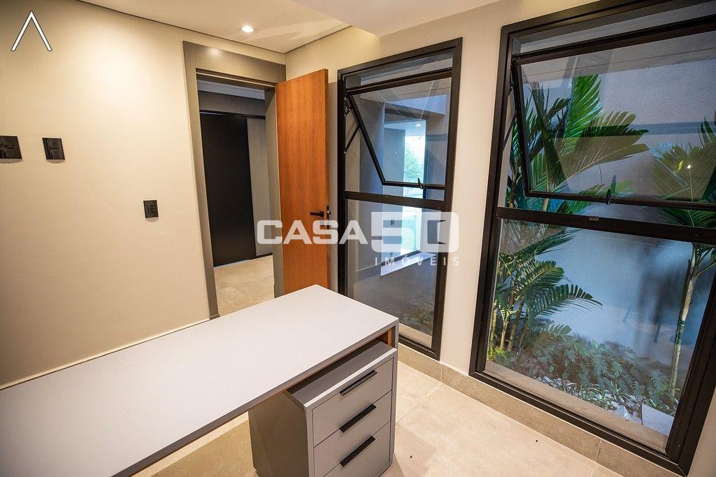 No piso inferior, que pode ser acessado pelo elevador, estão a ampla área gourmet com piscina, spa, sauna úmida, lavabo, home theater e home office.