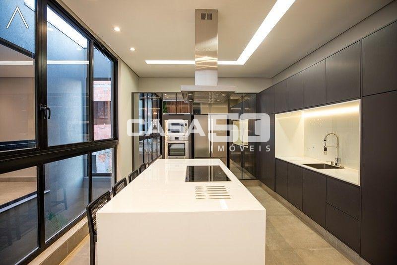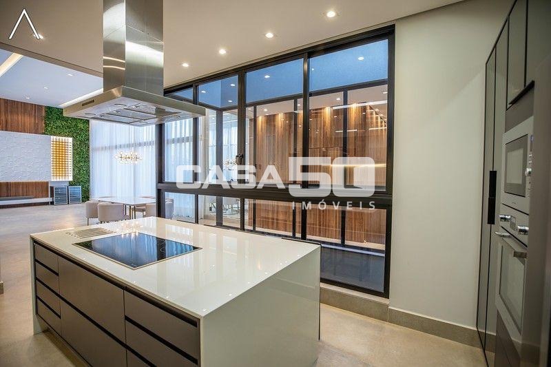 No piso térreo estão as salas de estar, jantar, cozinha planejada, lavabo, lavanderia padrão e as 4 suítes.