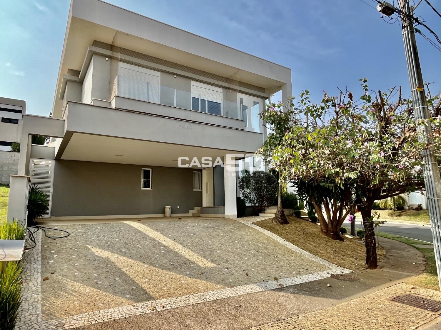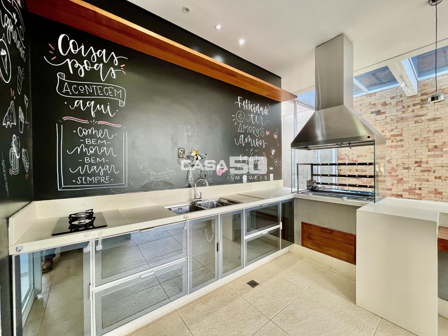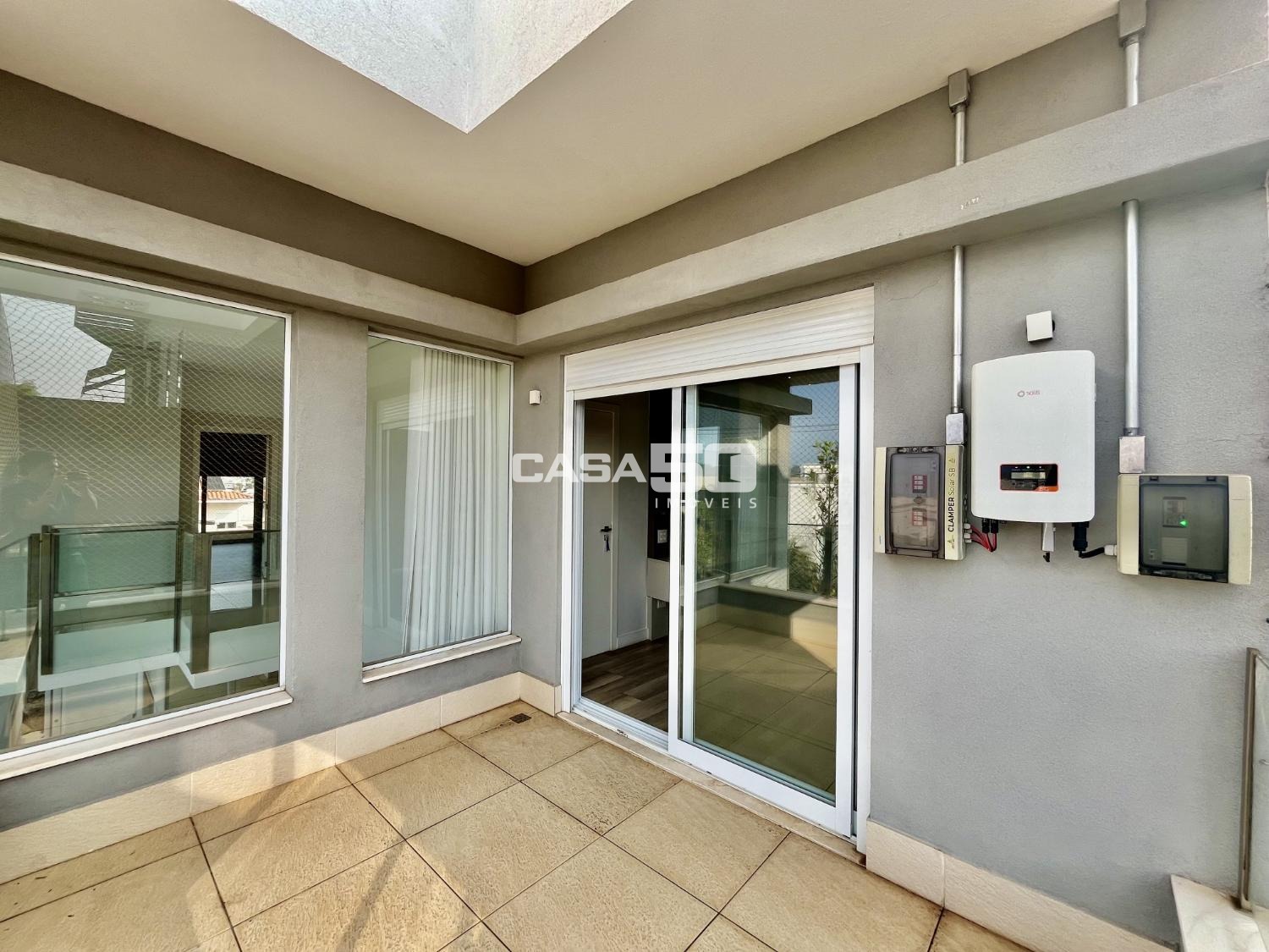 O piso superior contempla 3 suítes, sendo a suíte máster a peça central, com um espaçoso closet e uma banheira para momentos de relaxamento. Os acabamentos são de alta qualidade e apresentam detalhes em marcenaria, proporcionando um toque de elegância. O sobrado está equipado com ar condicionado, garantindo conforto térmico durante todo o ano. Utiliza aquecimento solar e energia fotovoltaica, o que é uma escolha sustentável e econômica. Possui uma infraestrutura preparada para automação, permitindo controle e conveniência adicionais. O paisagismo cuidadosamente planejado contribui para um ambiente agradável e estético. A garagem acomoda até 4 carros, fornecendo espaço suficiente para a família e visitantes.