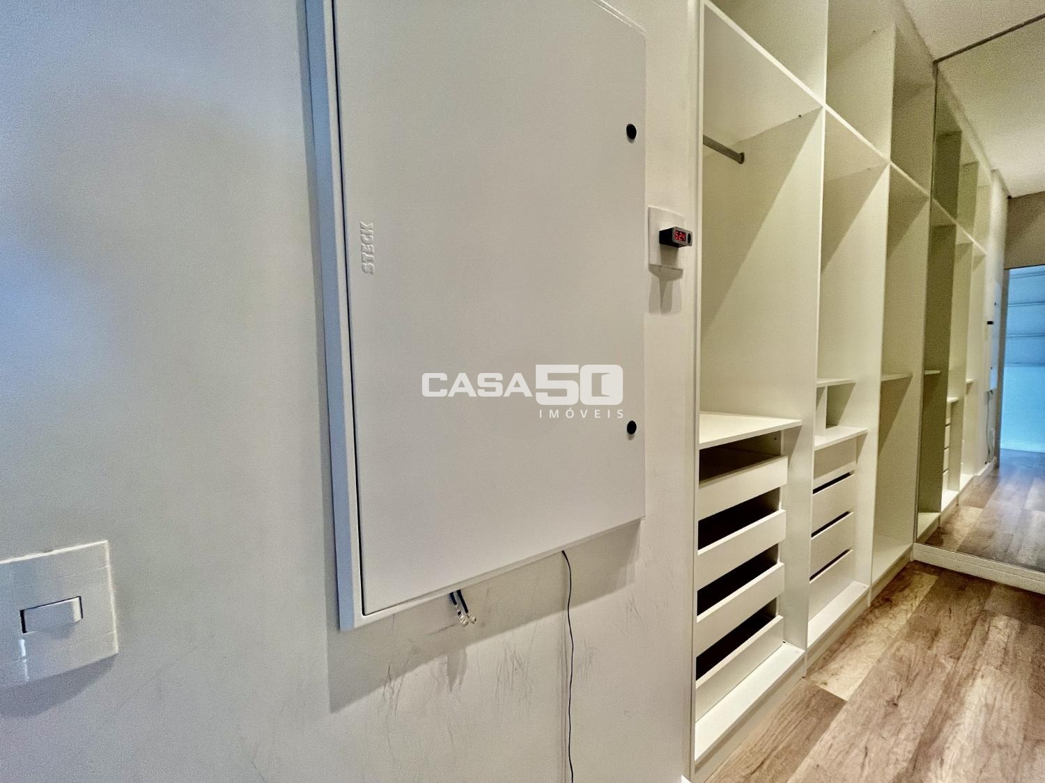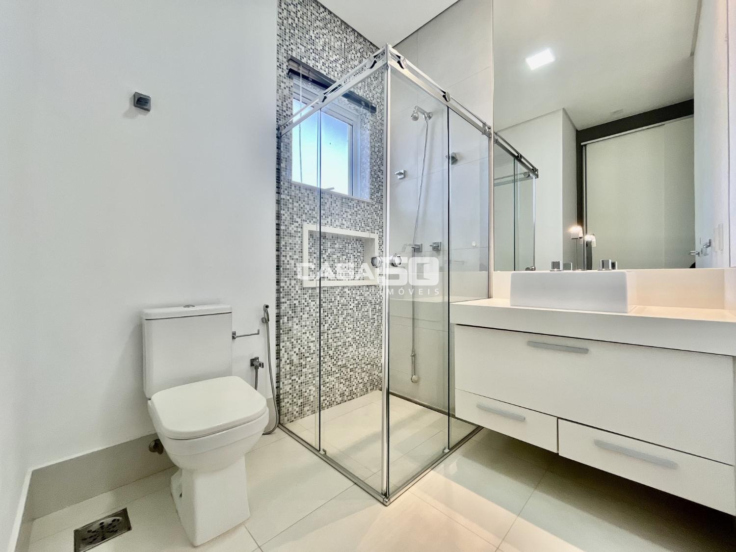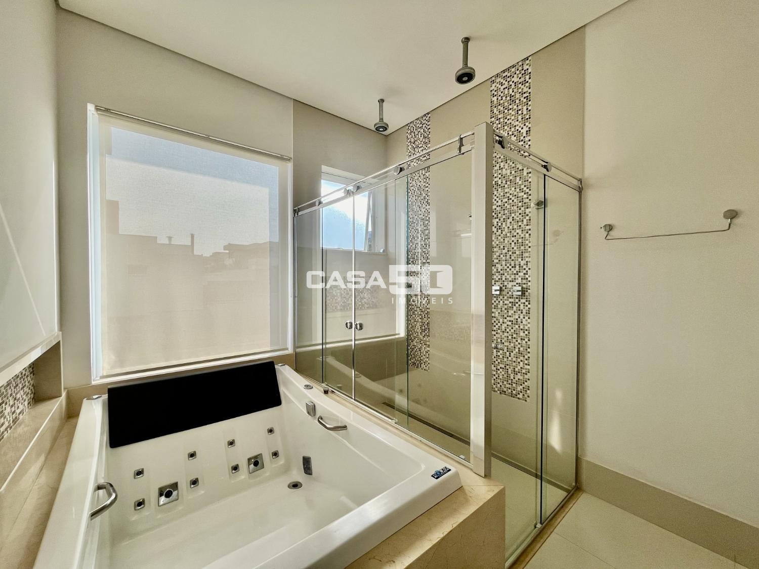 O piso superior contempla 3 suítes, sendo a suíte máster a peça central, com um espaçoso closet e uma banheira para momentos de relaxamento. Os acabamentos são de alta qualidade e apresentam detalhes em marcenaria, proporcionando um toque de elegância. O sobrado está equipado com ar condicionado, garantindo conforto térmico durante todo o ano. Utiliza aquecimento solar e energia fotovoltaica, o que é uma escolha sustentável e econômica. Possui uma infraestrutura preparada para automação, permitindo controle e conveniência adicionais. O paisagismo cuidadosamente planejado contribui para um ambiente agradável e estético. A garagem acomoda até 4 carros, fornecendo espaço suficiente para a família e visitantes.