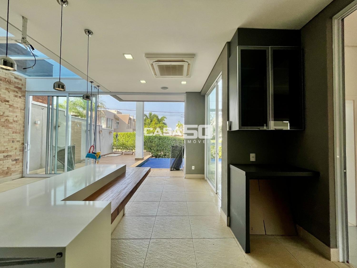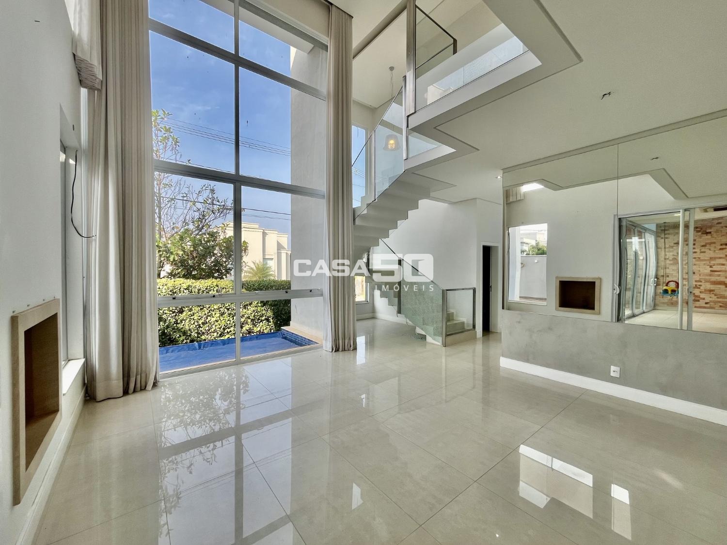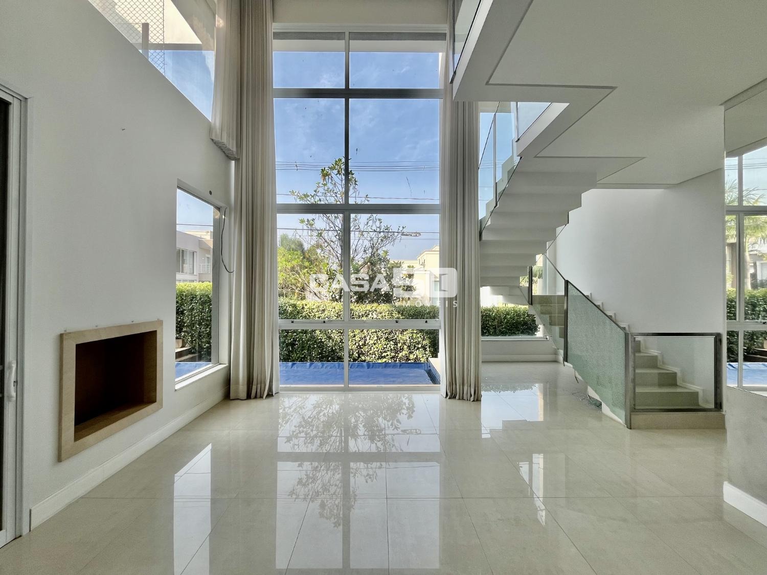 No piso térreo encontramos um Living espaçoso com 2 ambientes e pé direito duplo, proporcionando uma sensação de amplitude e luminosidade. Uma área gourmet que se integra harmoniosamente à cozinha e às salas, tornando-o ideal para receber amigos e familiares. Home theater para entretenimento e um lavabo para comodidade dos visitantes. O quintal com uma piscina aquecida e borda infinita, criando um espaço relaxante e elegante para aproveitar ao ar livre.