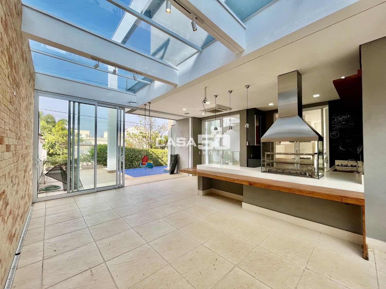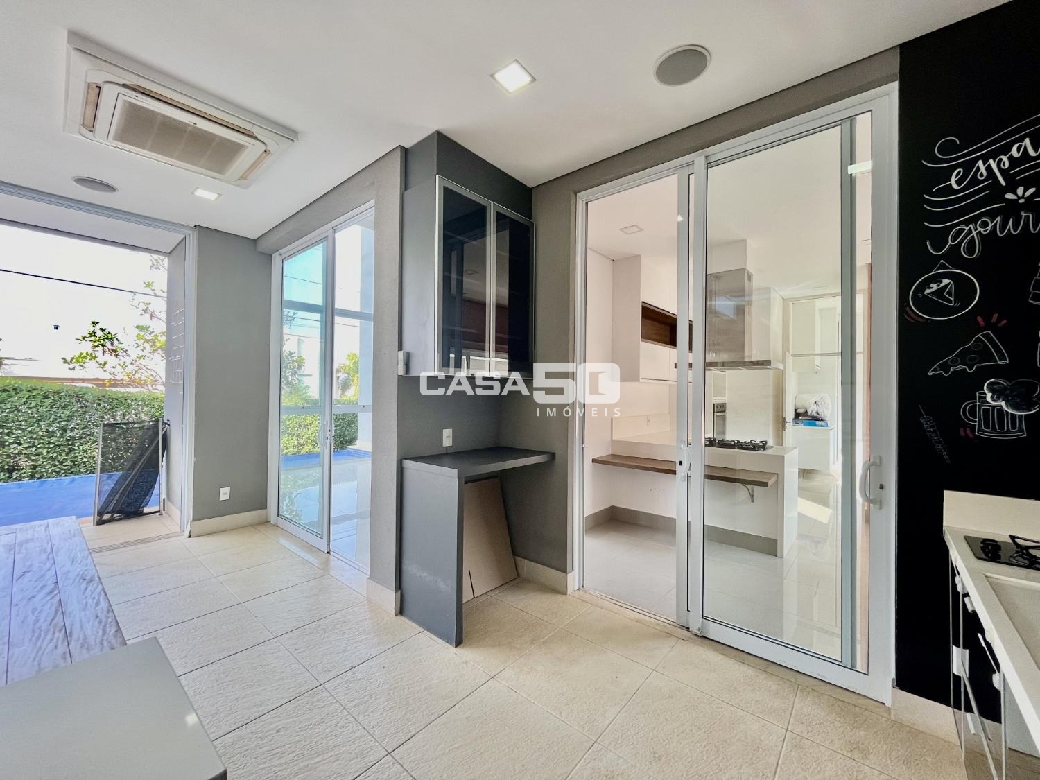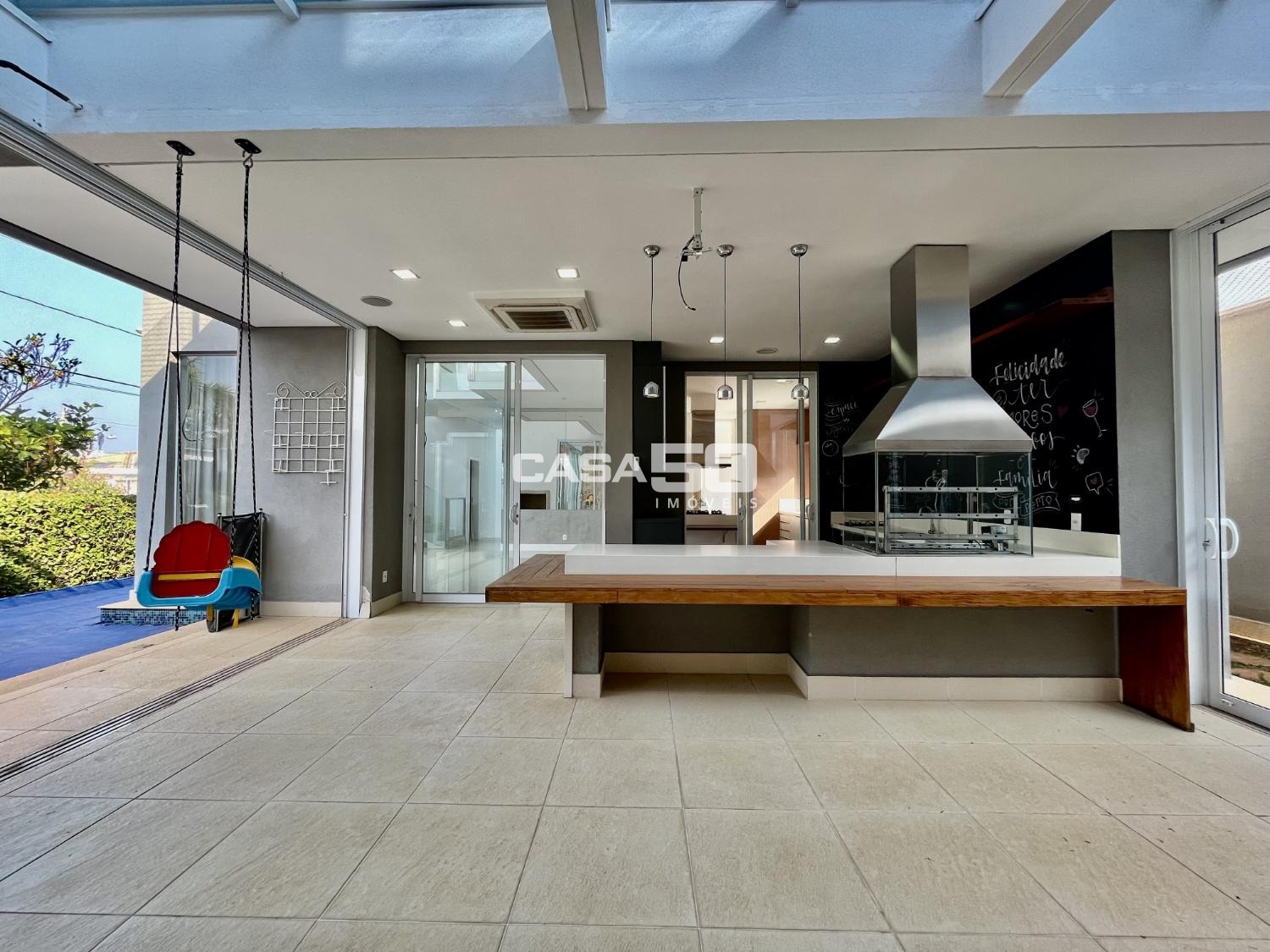 No piso térreo encontramos um Living espaçoso com 2 ambientes e pé direito duplo, proporcionando uma sensação de amplitude e luminosidade. Uma área gourmet que se integra harmoniosamente à cozinha e às salas, tornando-o ideal para receber amigos e familiares. Home theater para entretenimento e um lavabo para comodidade dos visitantes. O quintal com uma piscina aquecida e borda infinita, criando um espaço relaxante e elegante para aproveitar ao ar livre.