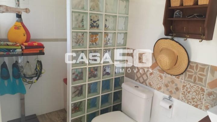 sacada). Todos com ar condicionado, ventilador de teto e tela nas janelas. Possui também escritório, sala de TV, lavabo, um lindo hall de entrada,sala de estar e jantar num só ambiente com pé direito de 7m - espaço para mini adega, varanda/deck, cozinha com armário e lava-louça, dispensa e copa ampla, lavanderia espaçosa, área de varal, área gourmet com churrasqueira à carvão e churrasqueira à gás, play ground,