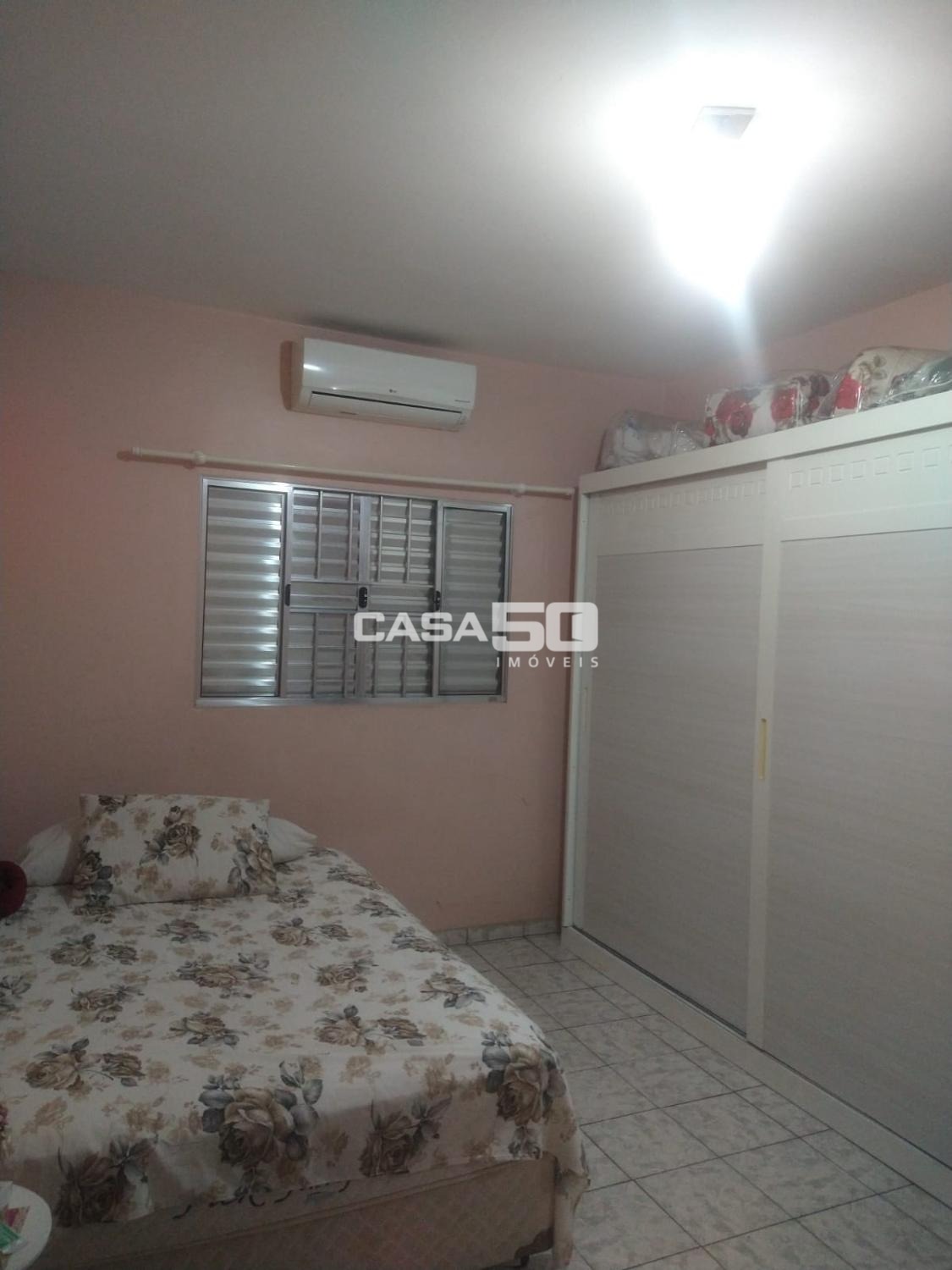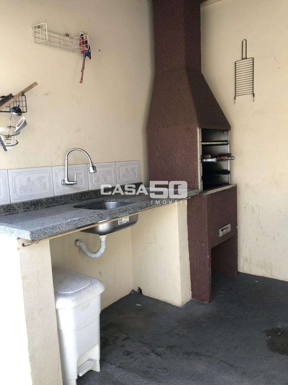 Casa preparada para construir sobrado. Possui 132m² de construção, com 2 quartos, 2 banheiros, 3 vagas de garagem, churrasqueira e quintal.