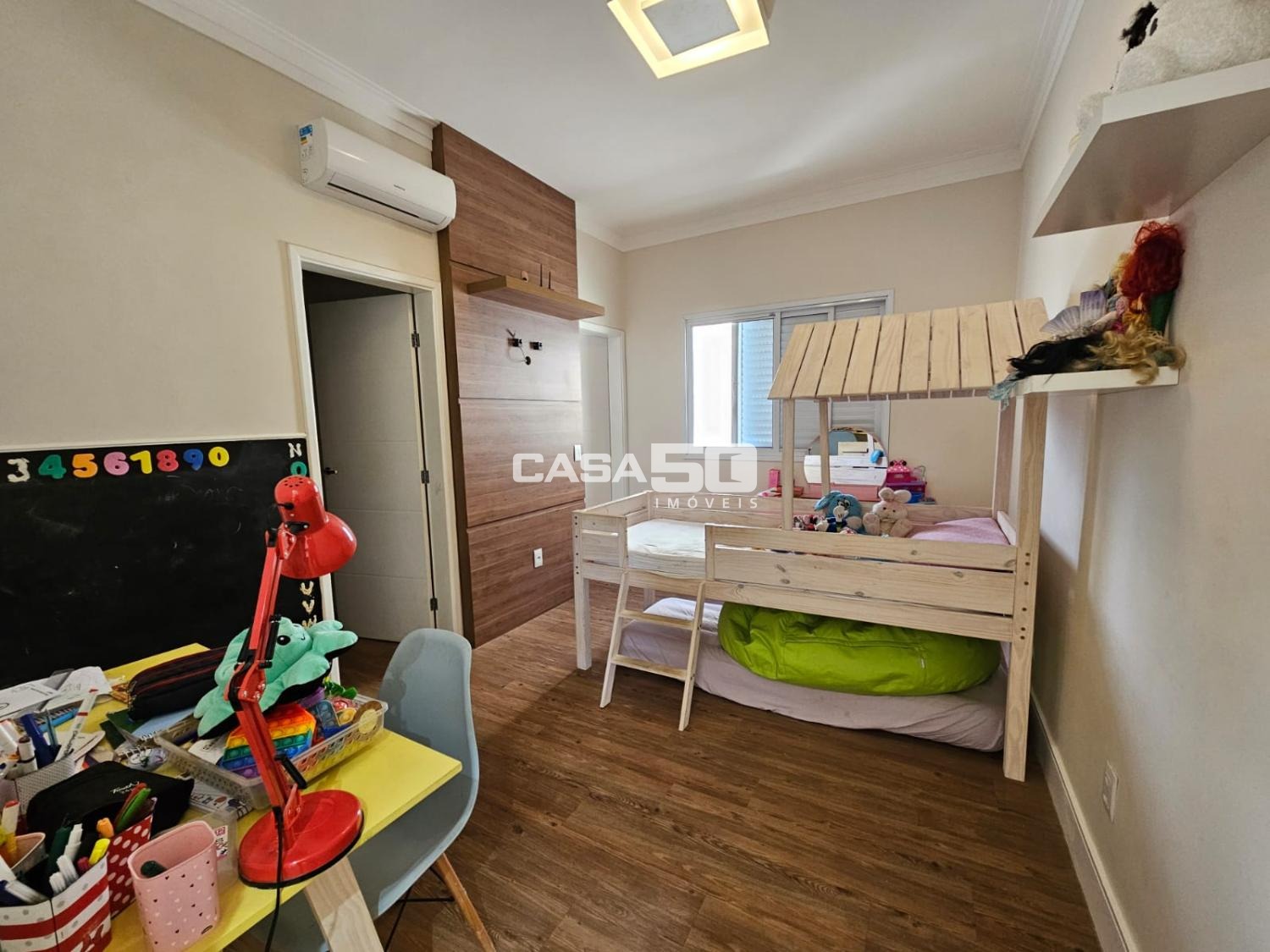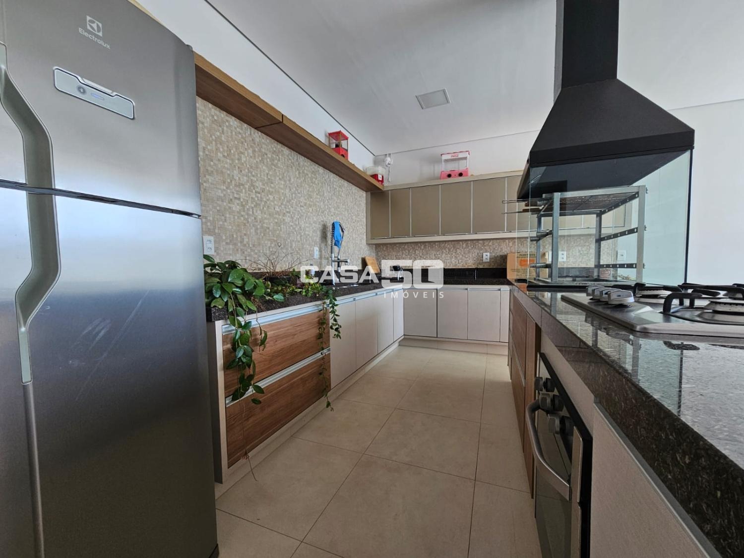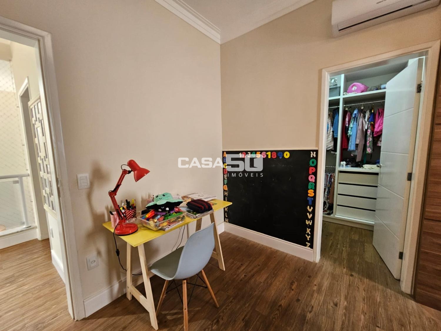 A casa contém ar condicionado em todos os ambientes, exceto na área gourmet.