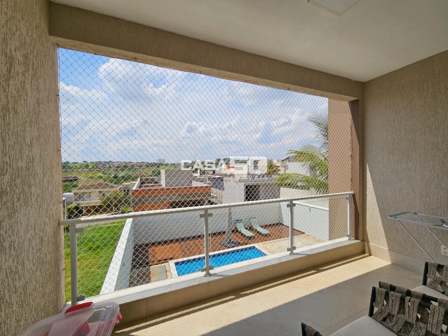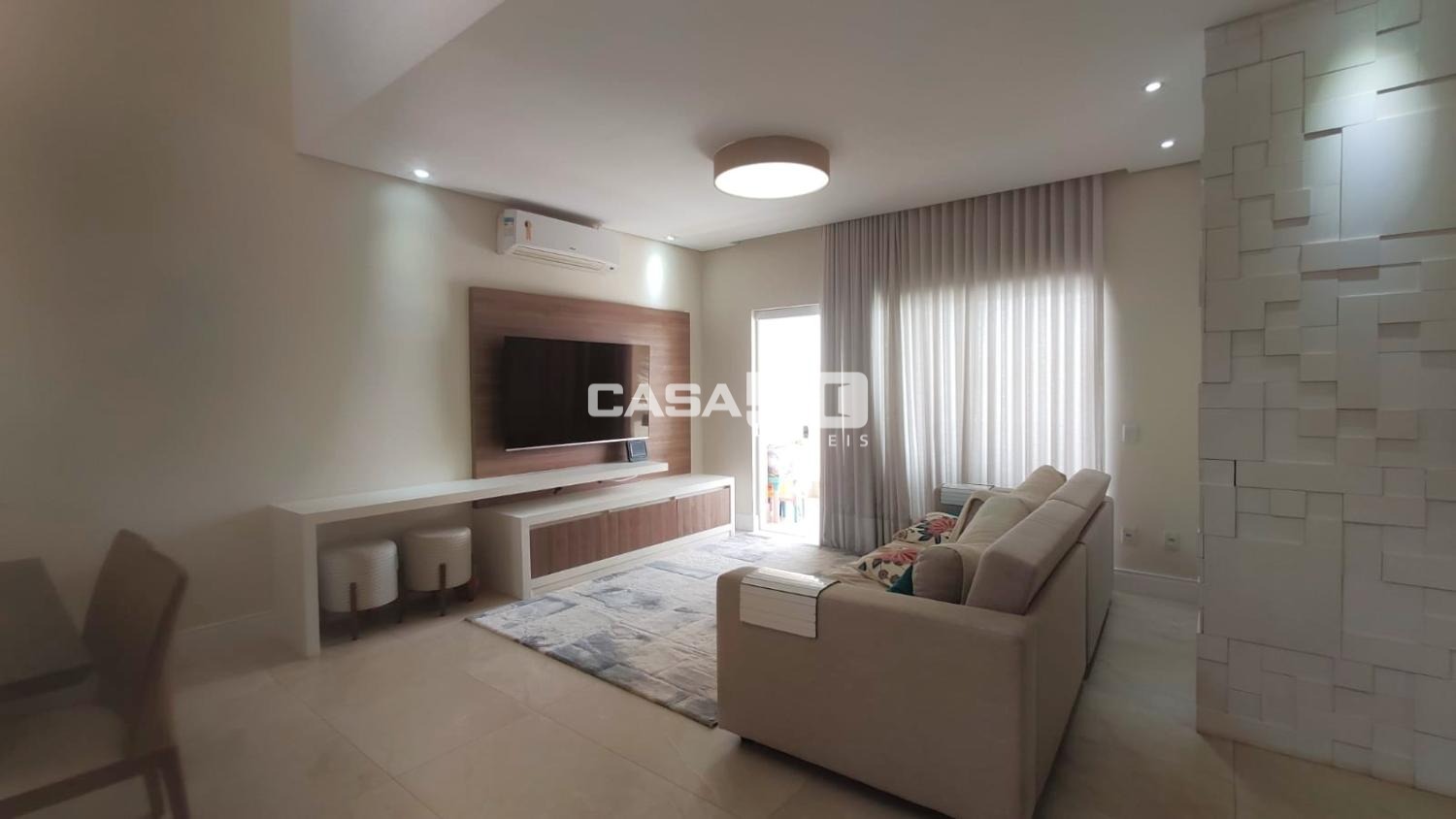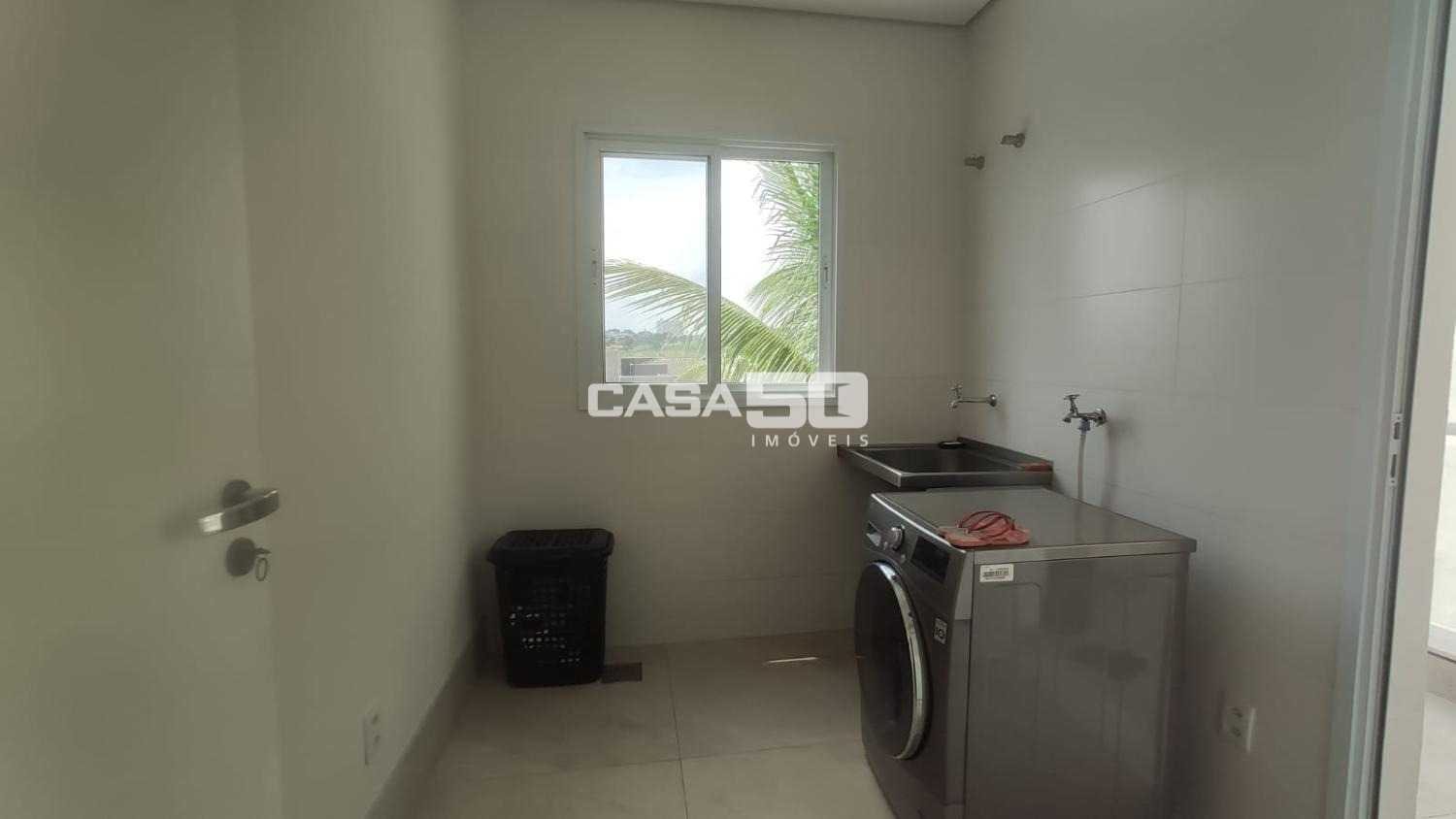 A casa contém ar condicionado em todos os ambientes, exceto na área gourmet.