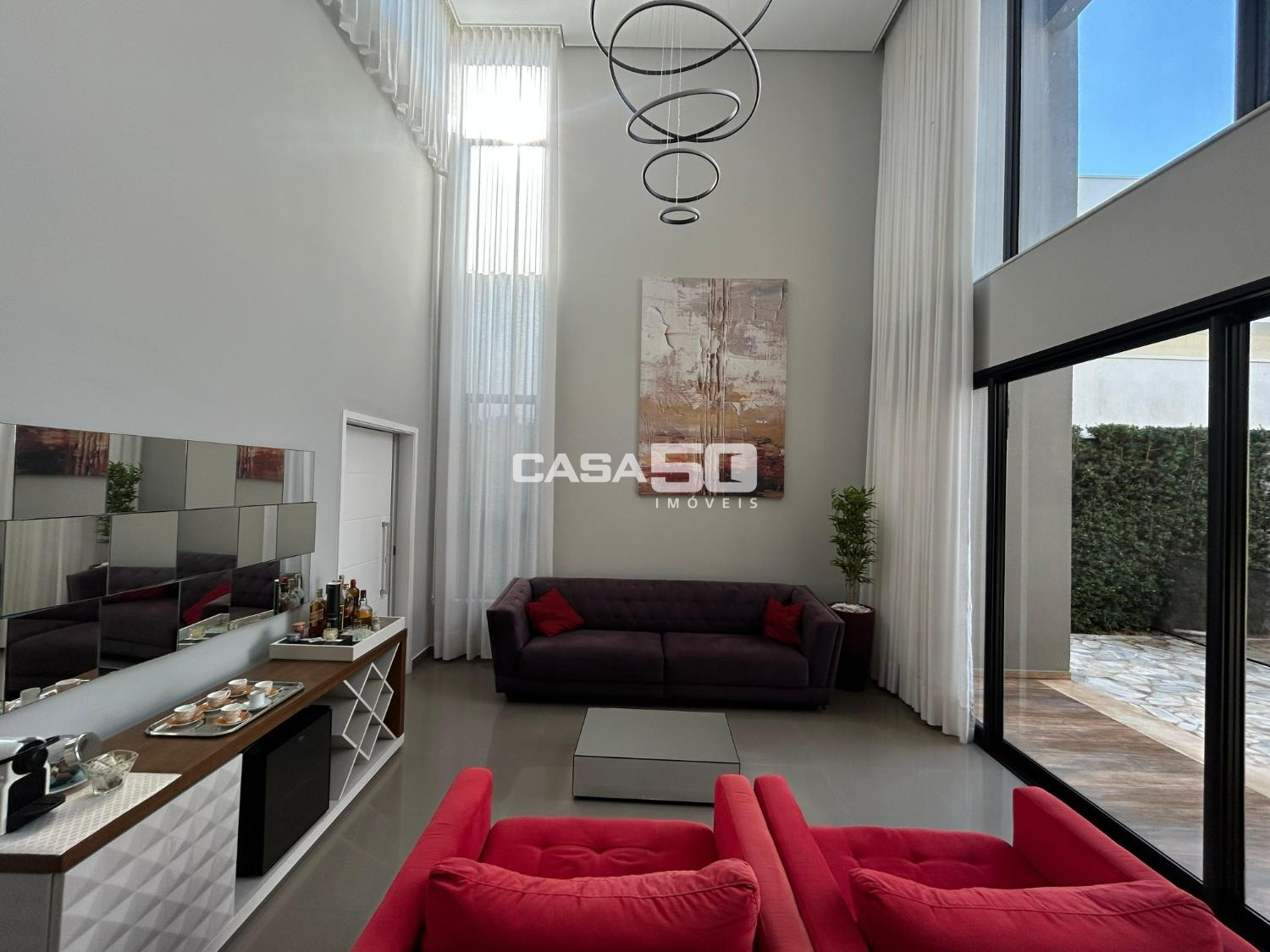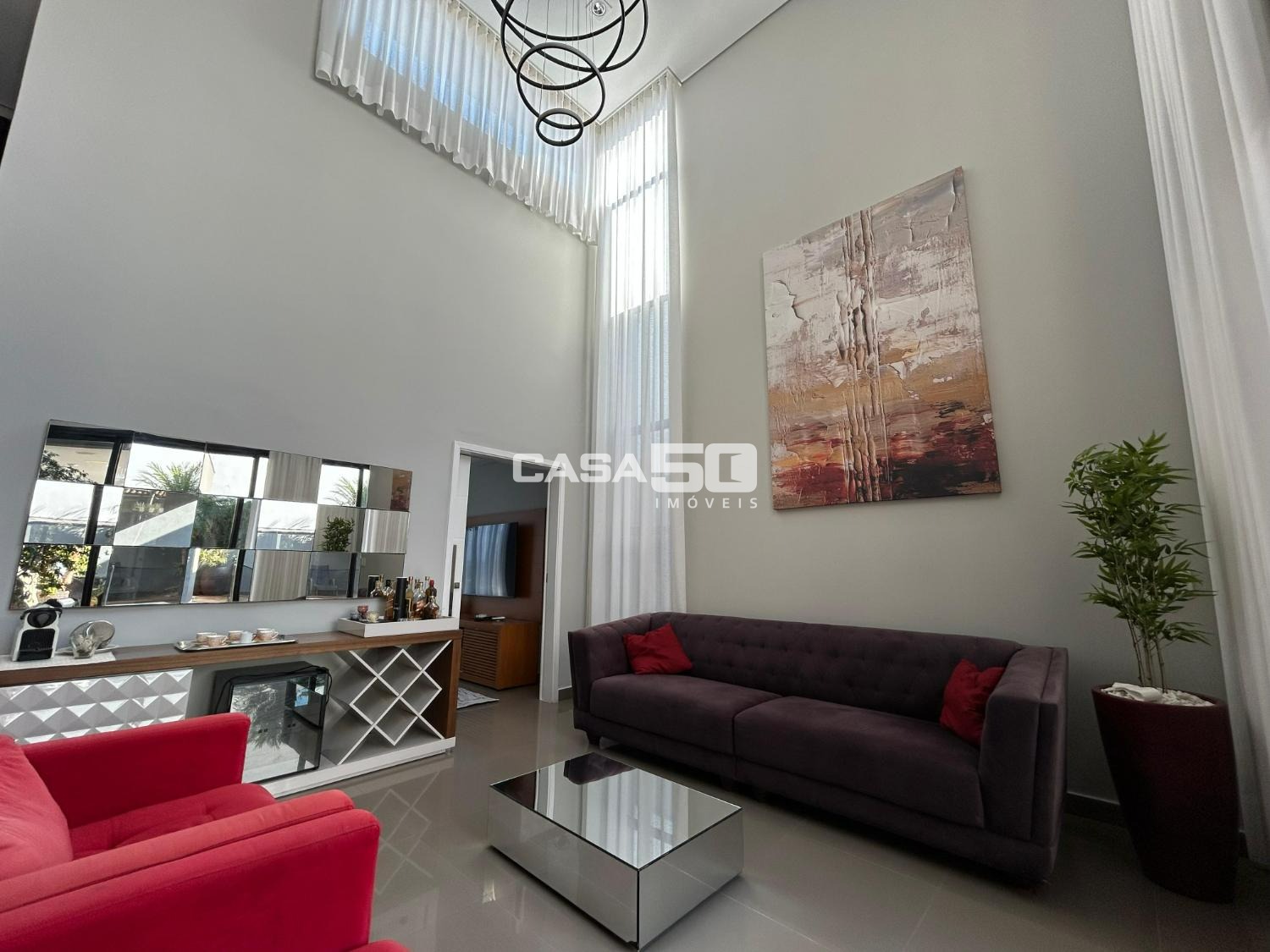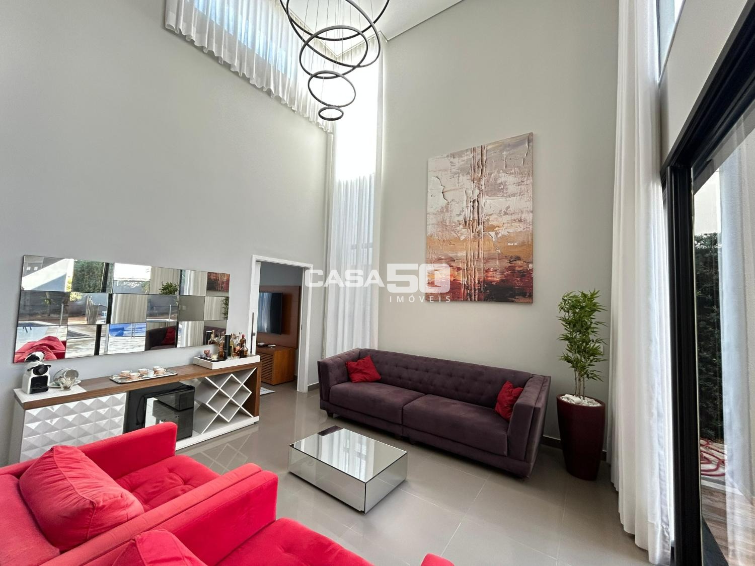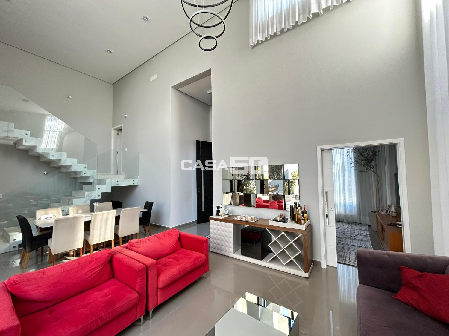 Belíssima casa com 320 m² de área construída, projeto moderno e ambientes amplos, com pé-direito duplo que valoriza ainda mais a iluminação natural e a sensação de conforto.