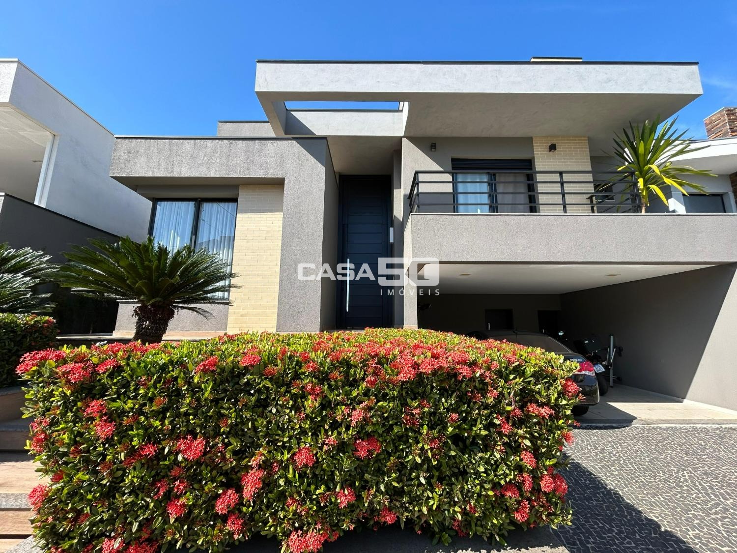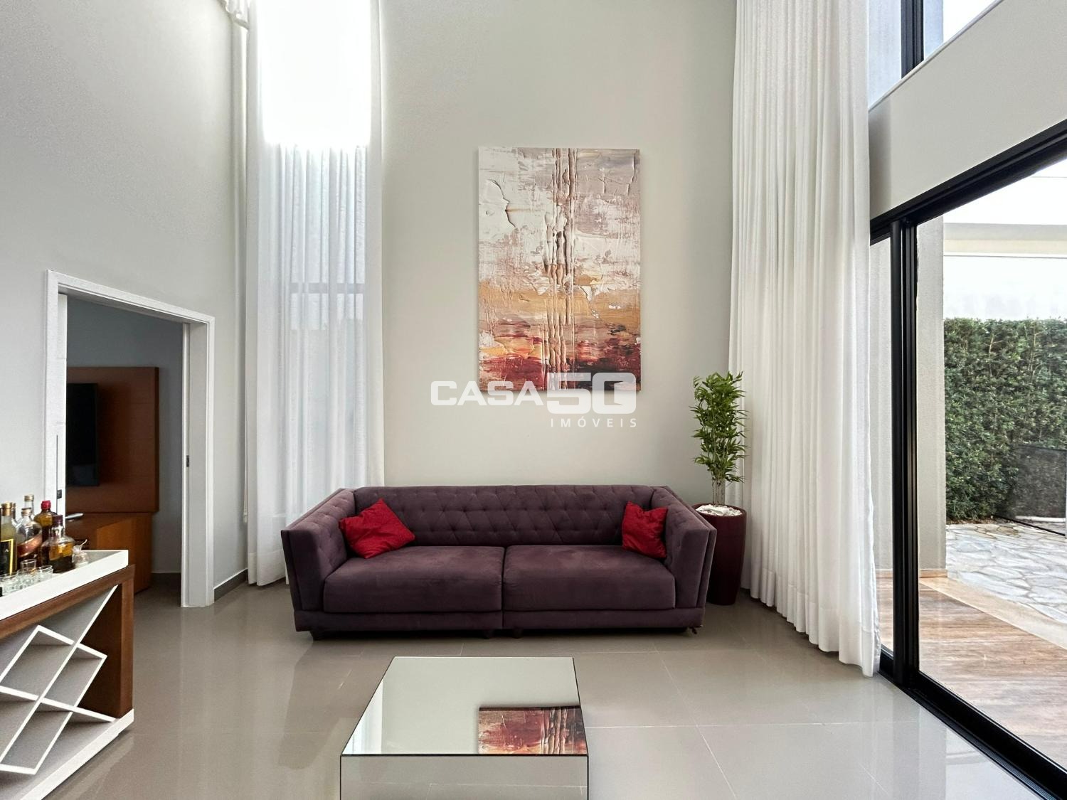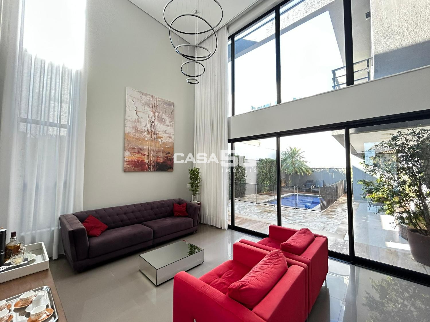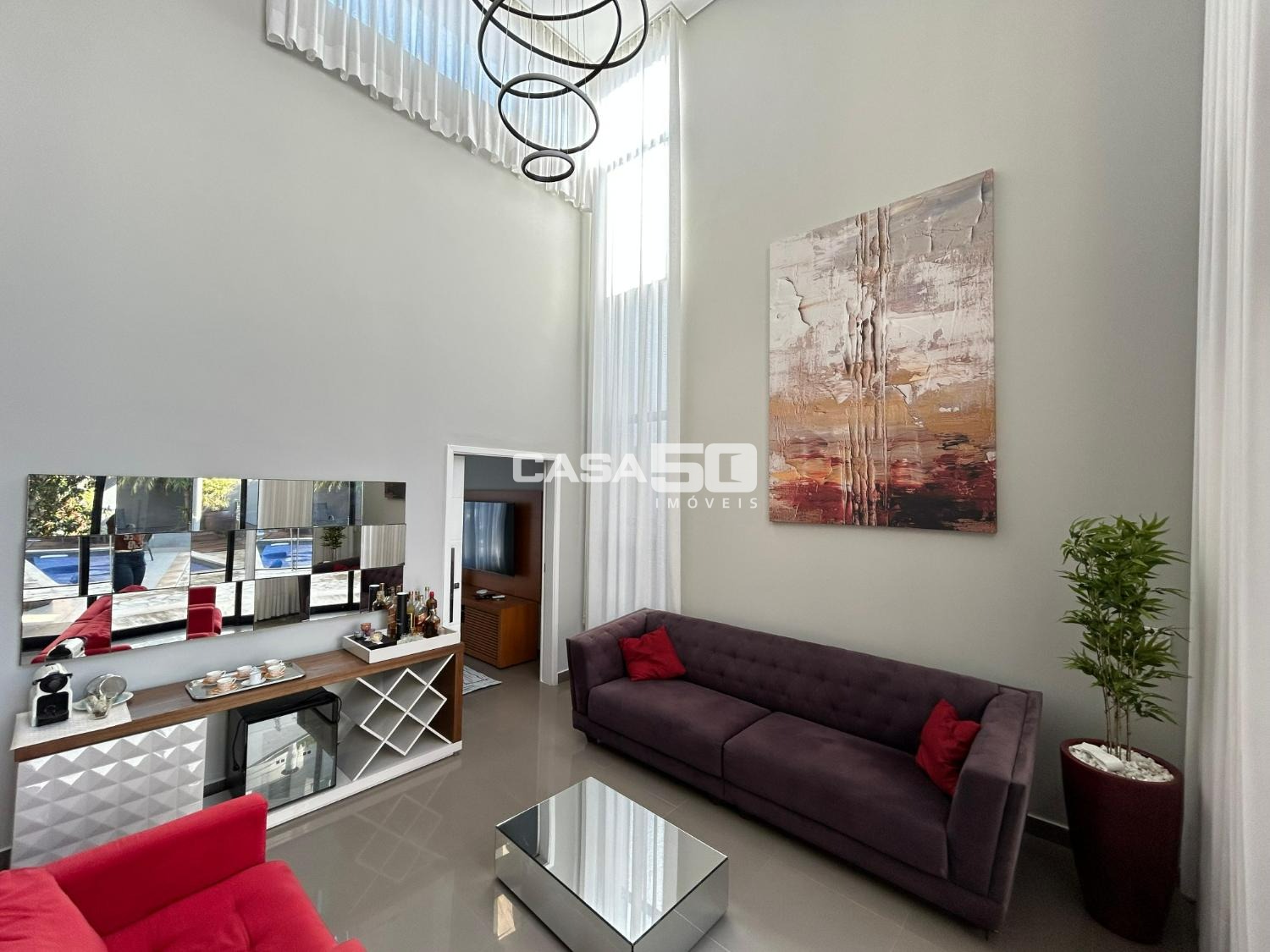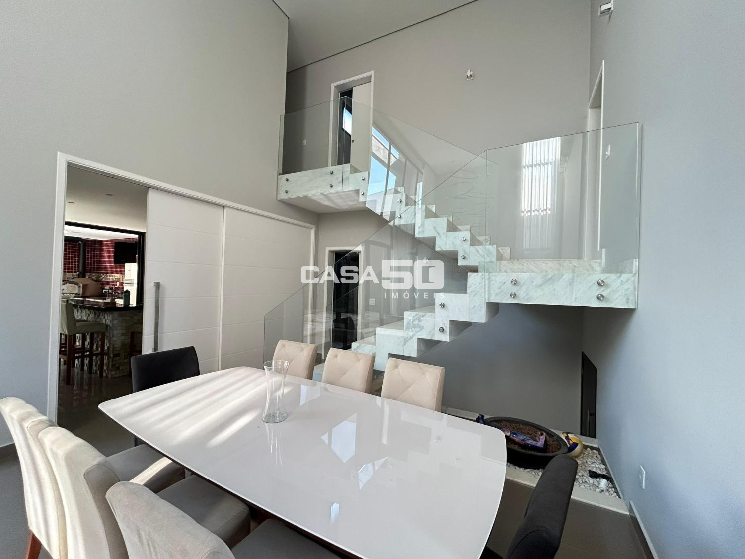 Belíssima casa com 320 m² de área construída, projeto moderno e ambientes amplos, com pé-direito duplo que valoriza ainda mais a iluminação natural e a sensação de conforto.
