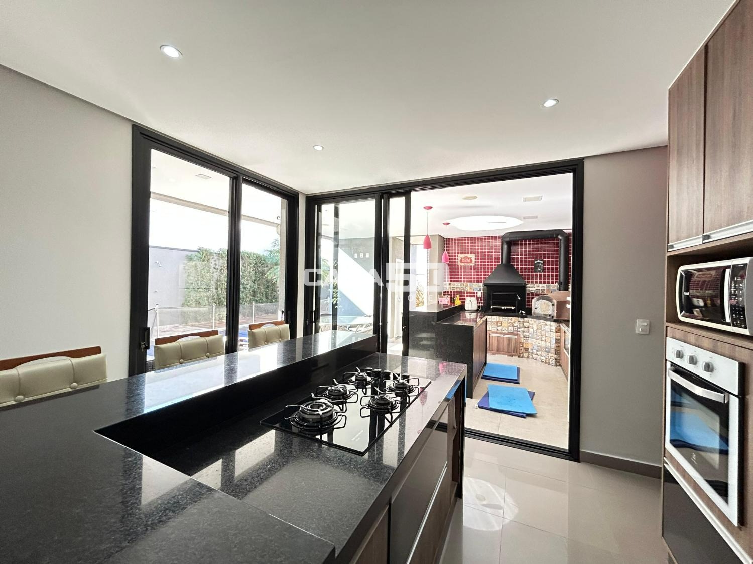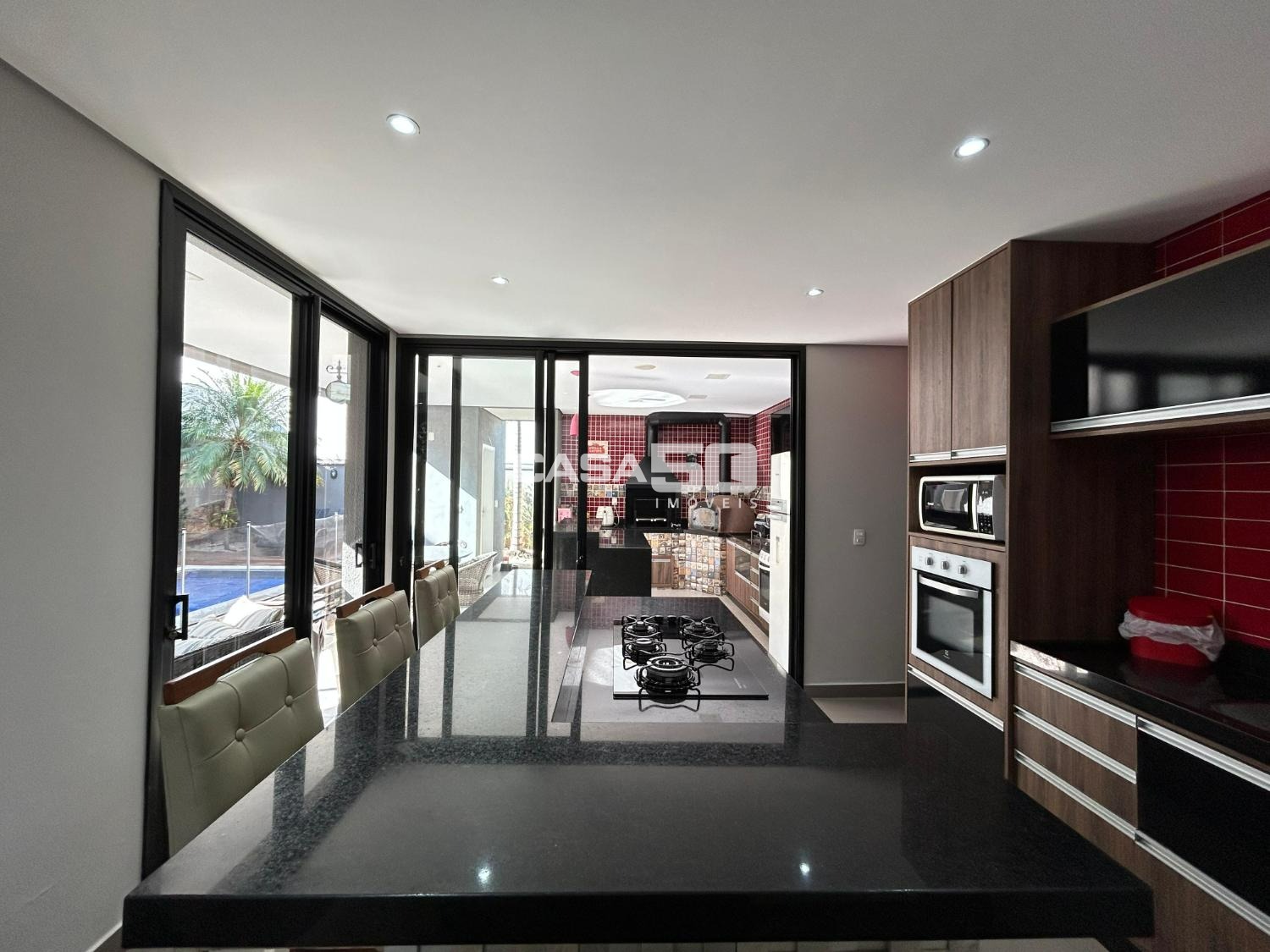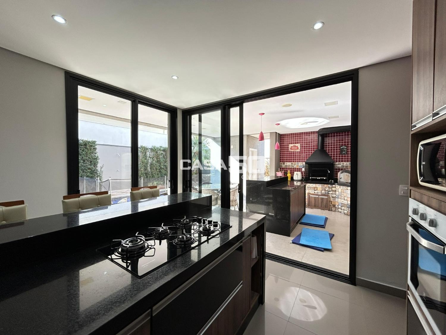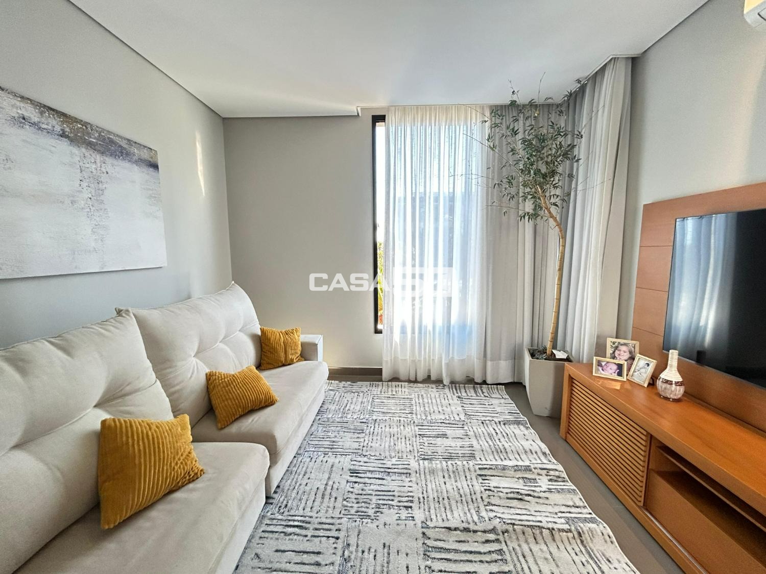 Belíssima casa com 320 m² de área construída, projeto moderno e ambientes amplos, com pé-direito duplo que valoriza ainda mais a iluminação natural e a sensação de conforto.