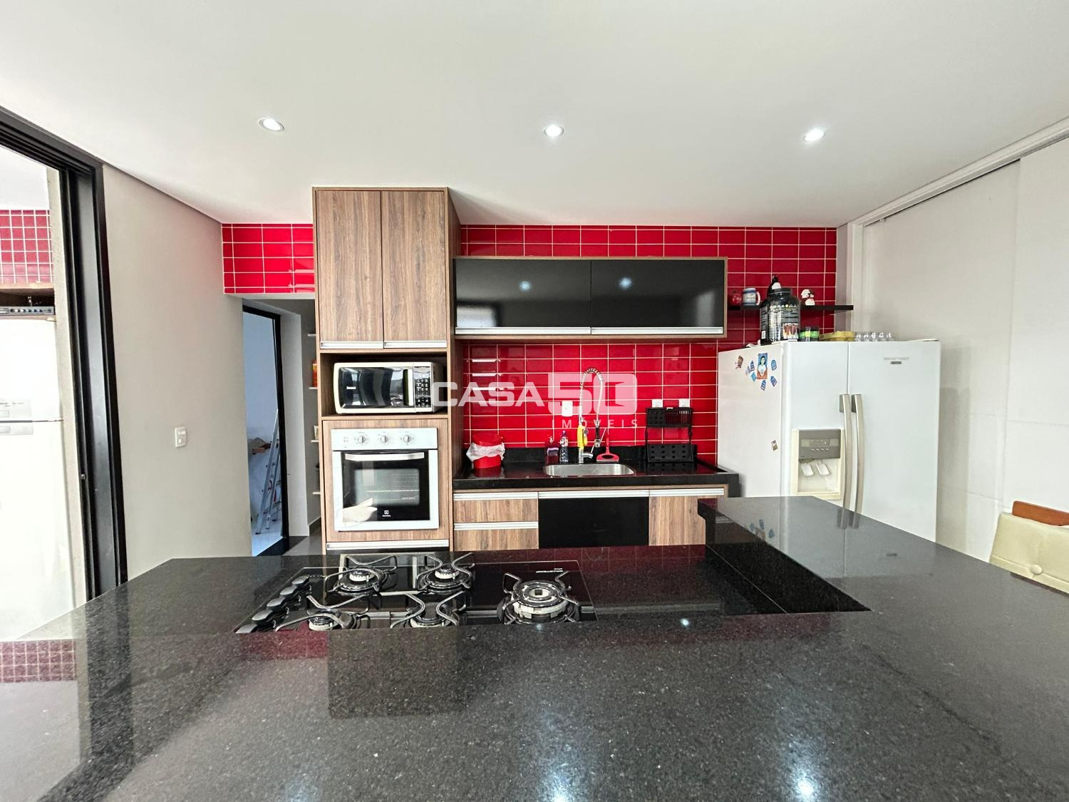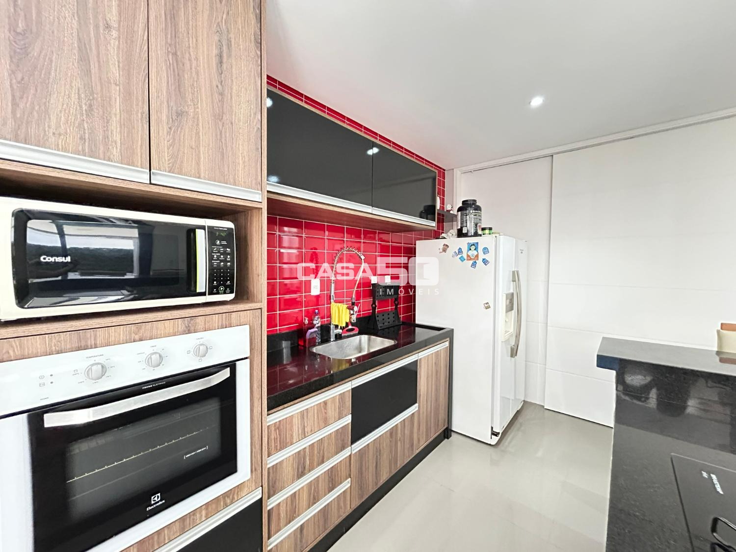 A cozinha é isolada, totalmente planejada, oferecendo funcionalidade e excelente aproveitamento dos espaços.