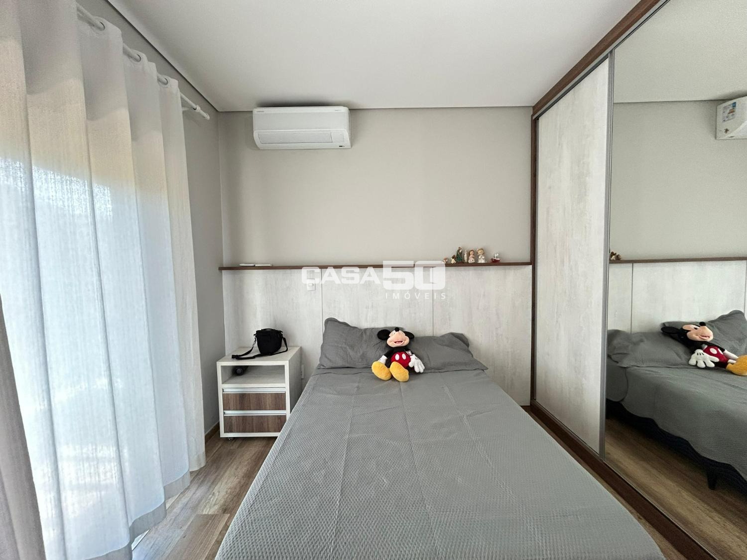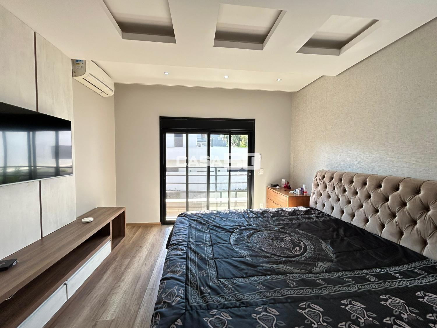 O imóvel conta com 3 suítes, todas ricas em armários planejados, sendo a suíte master com closet amplo. Living espaçoso para dois ambientes, integrado ao home, além de lavabo elegante.