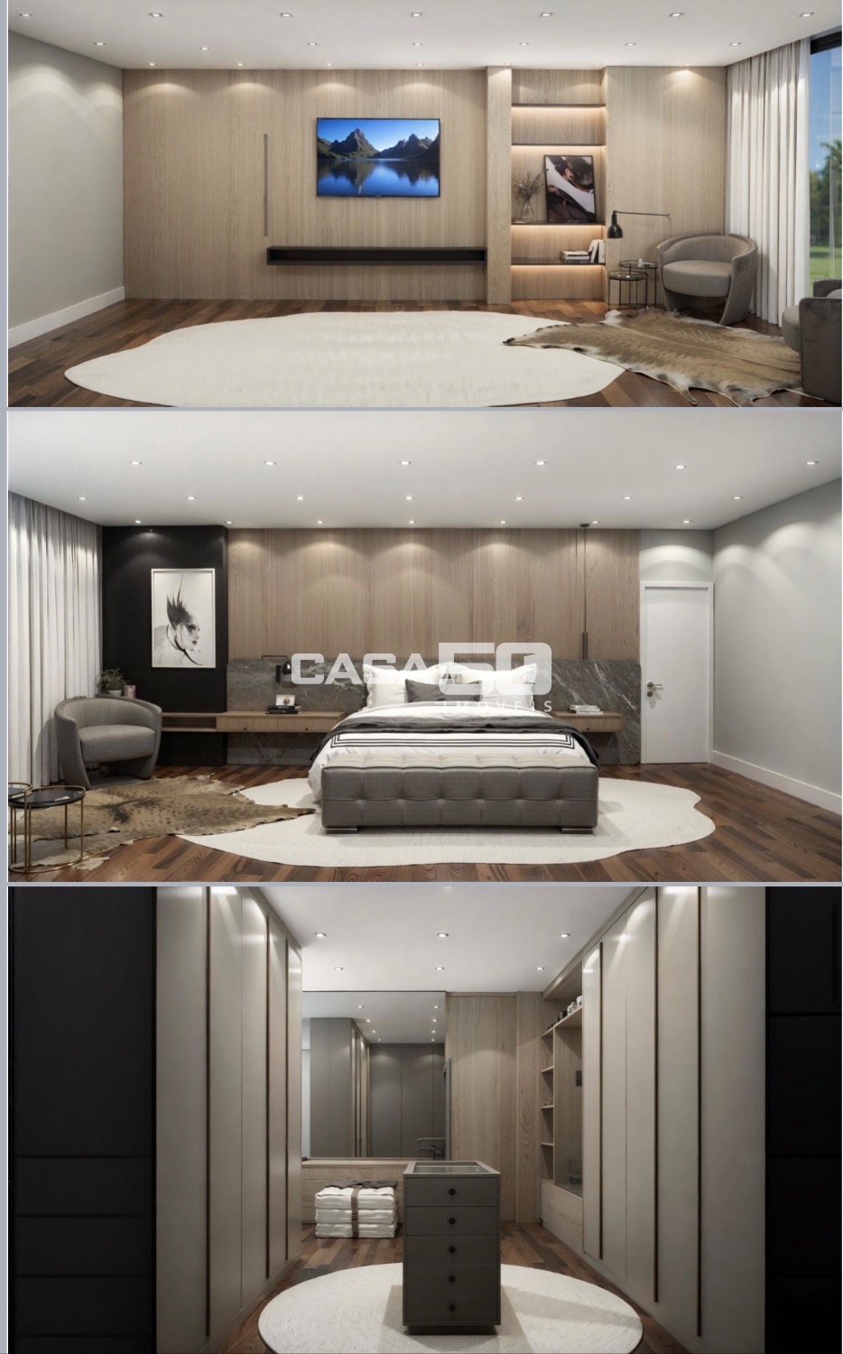 1 Suíte Master 3 Suítes; Sala de estar; Sala de cinema; Sala de jantar; Cozinha planejada; Lavabo; Escritório; Estrutura para Elevador (Acsso Garagem ); Garagem para 4 carros; Sistema de aquecimento solar; Área de serviço; Despensa; ➢ Área Externa: Piscina; Spa; Área Gourmet: Jardins; Lounges.