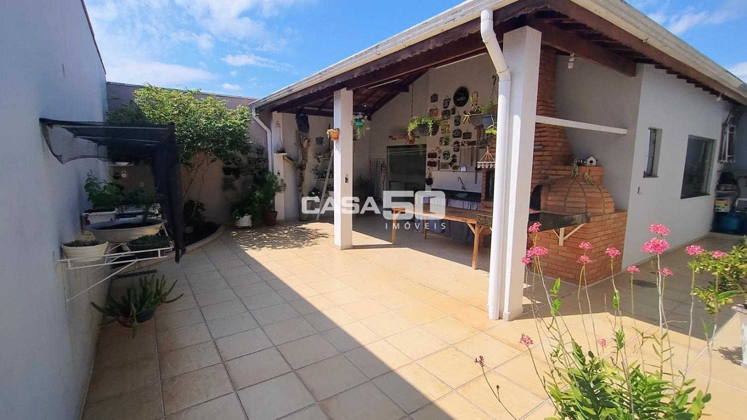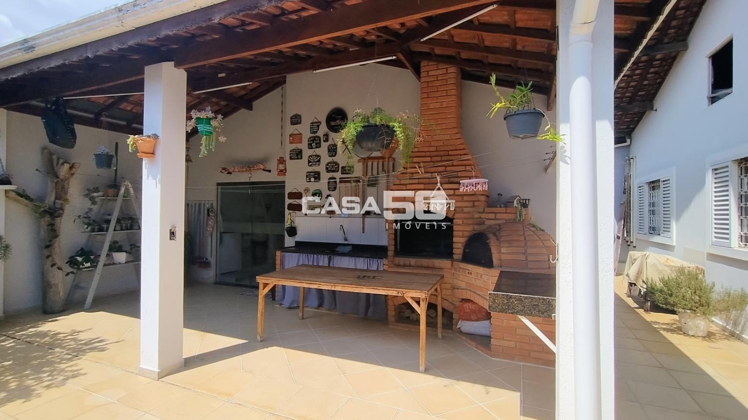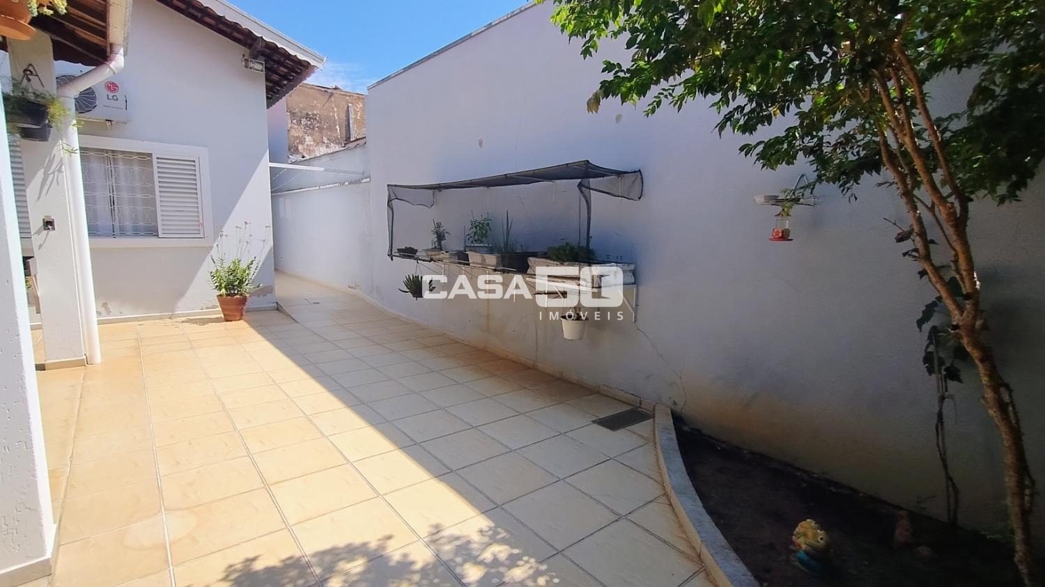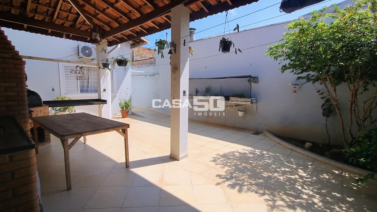 O quintal possui uma edícula completa com cozinha, banheiro e quarto, além de uma área gourmet para receber a família em momentos de lazer.