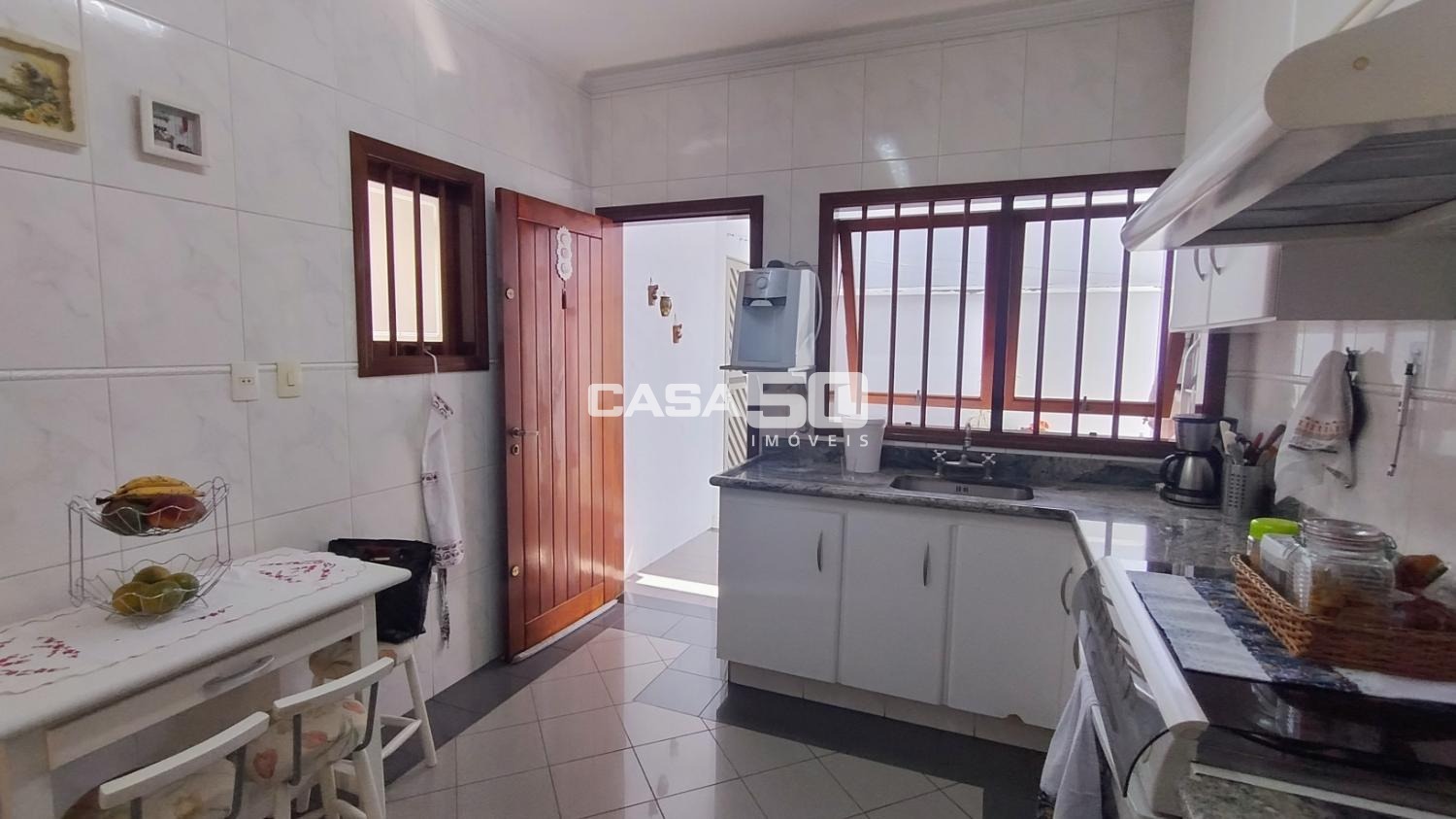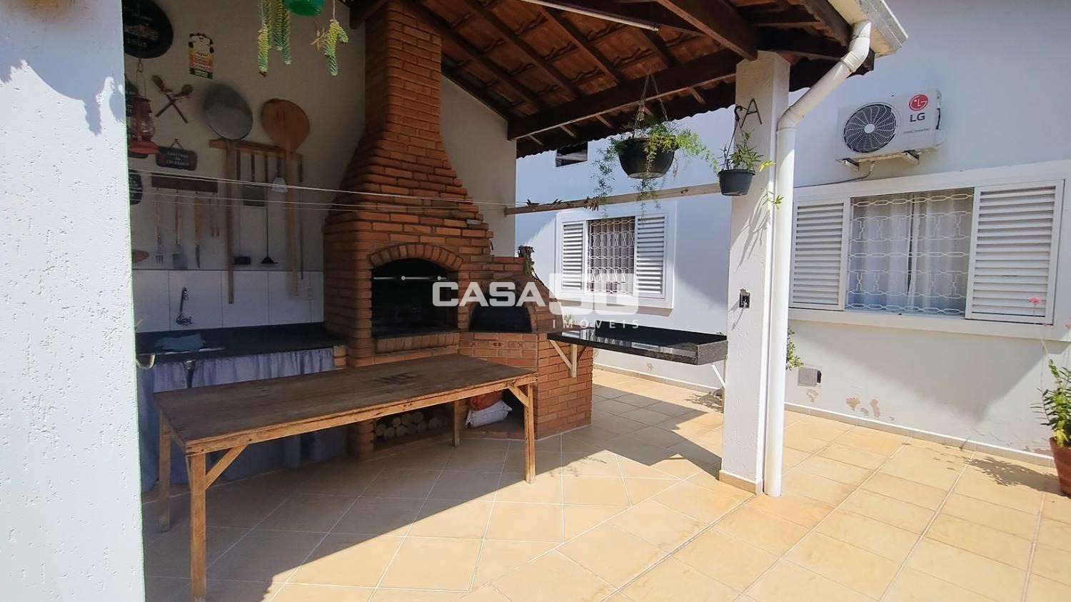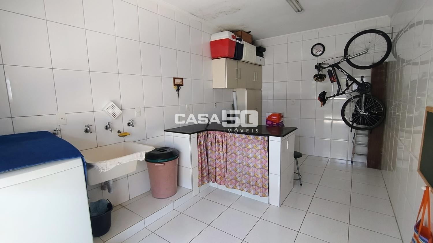 O quintal possui uma edícula completa com cozinha, banheiro e quarto, além de uma área gourmet para receber a família em momentos de lazer.