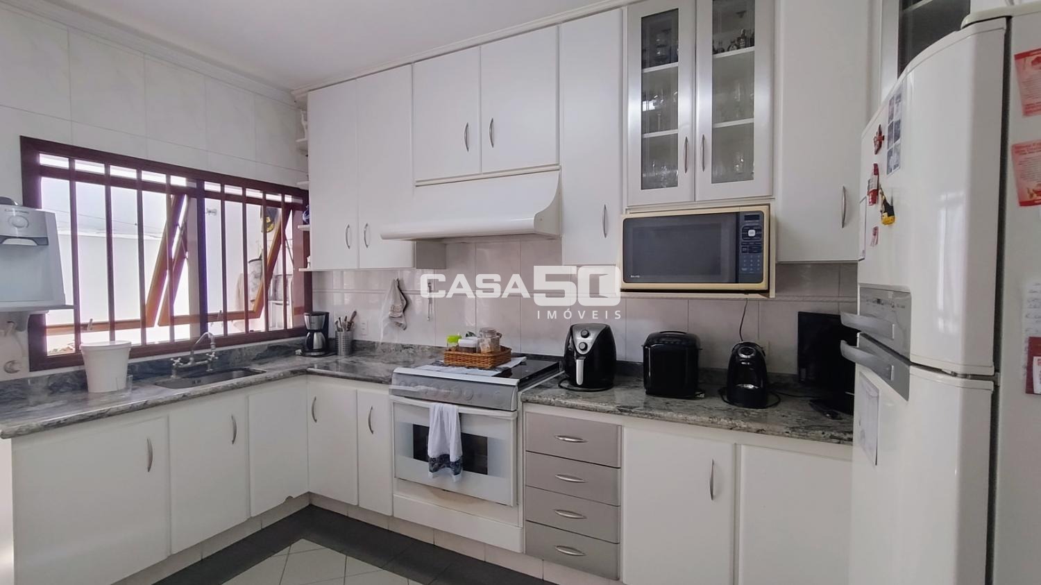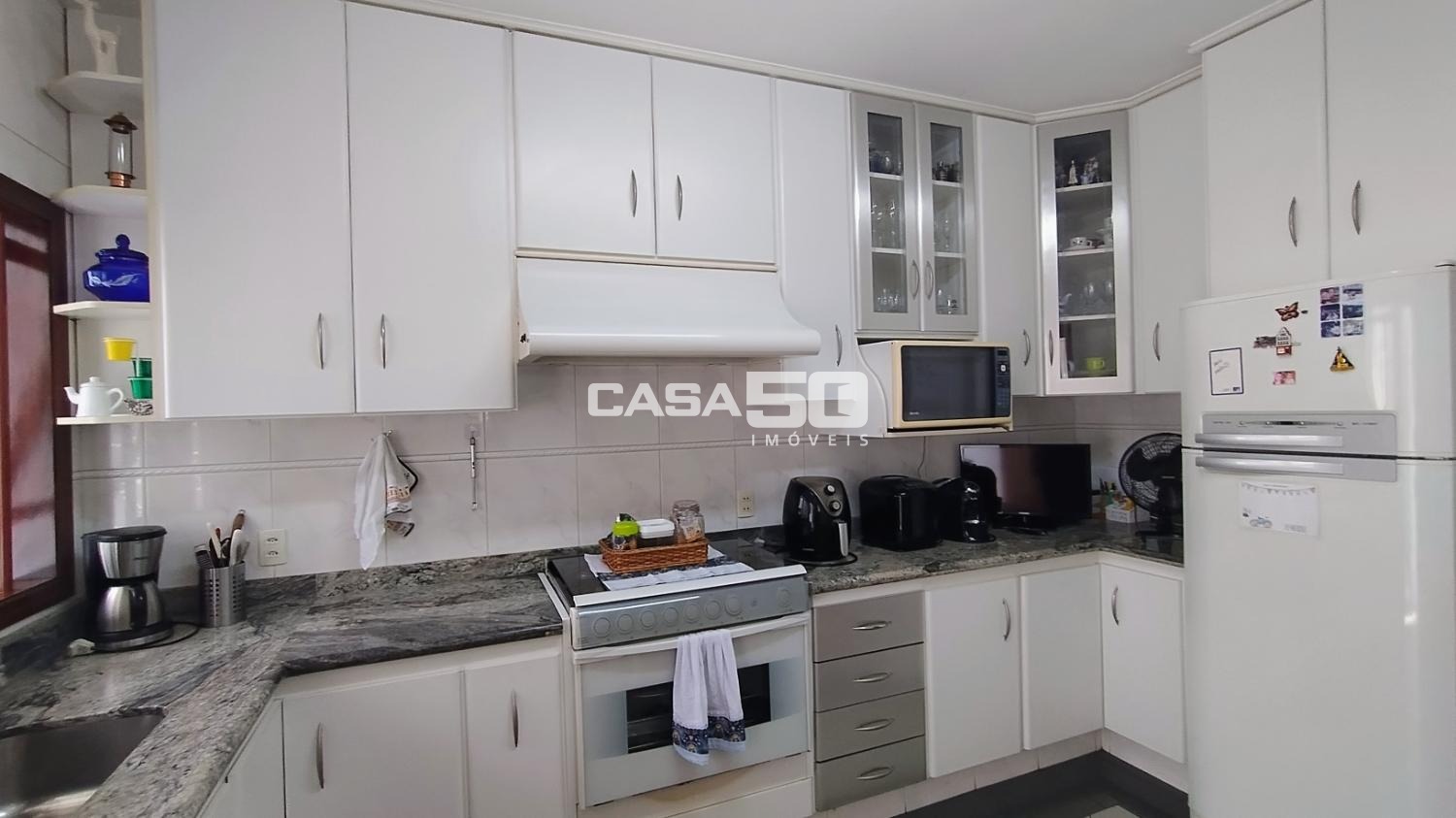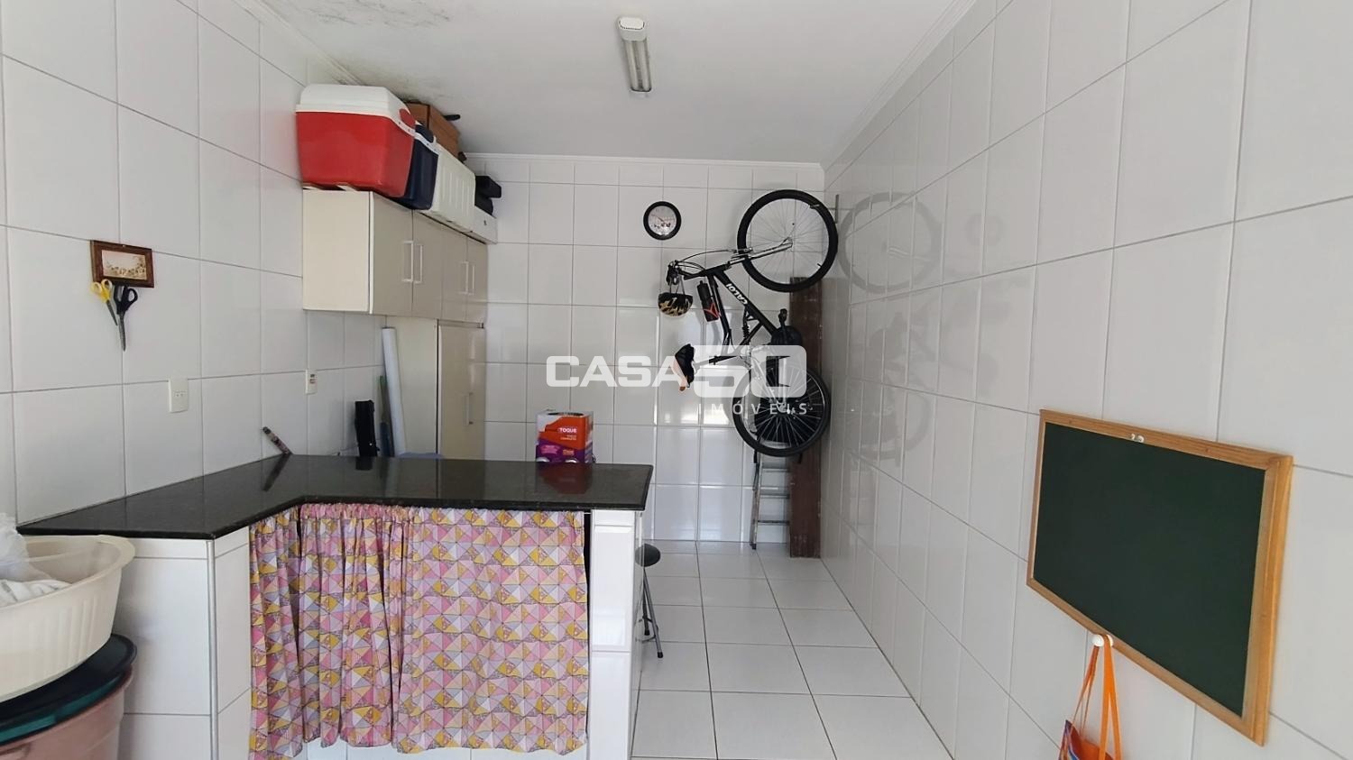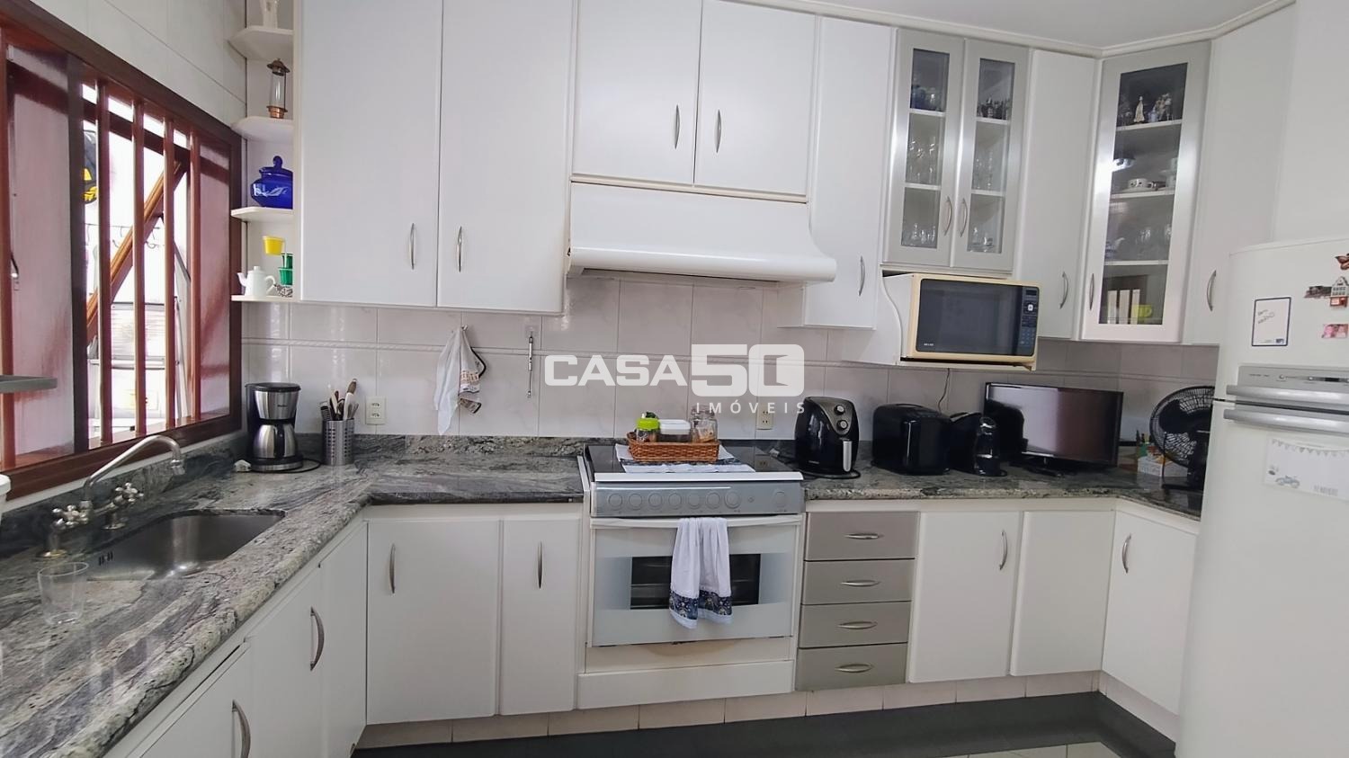 O quintal possui uma edícula completa com cozinha, banheiro e quarto, além de uma área gourmet para receber a família em momentos de lazer.