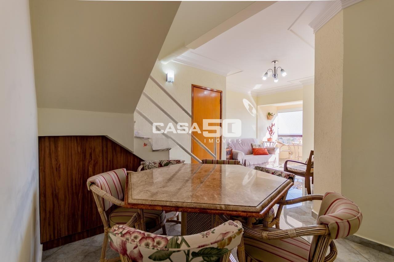 Cobertura com 3 quartos sendo 1 suíte, armários, sala para 3 ambientes , banheiro social, lavabo, cozinha com armários, área de serviço, piscina, área gourmet, 2 vagas de garagem cobertas. Próximo as principais rodovias, shopping e comércios.